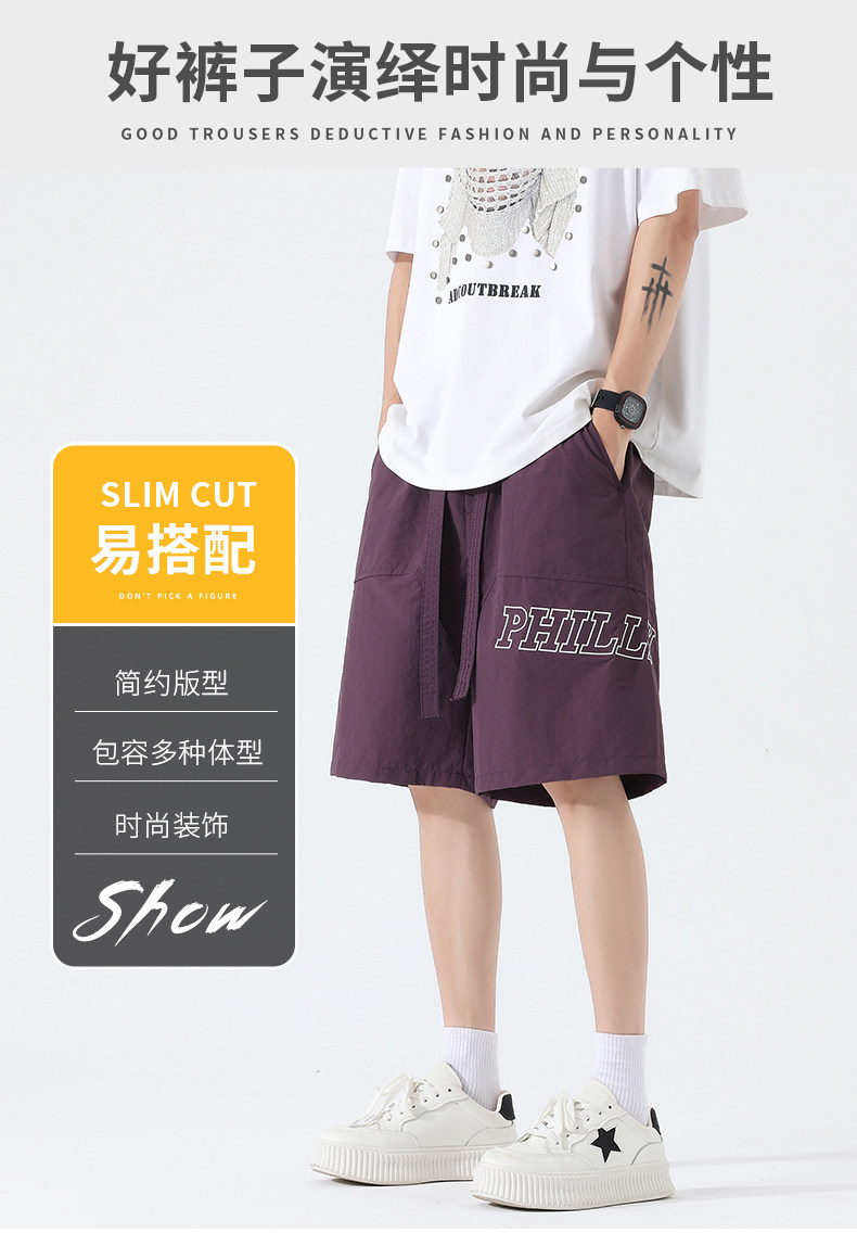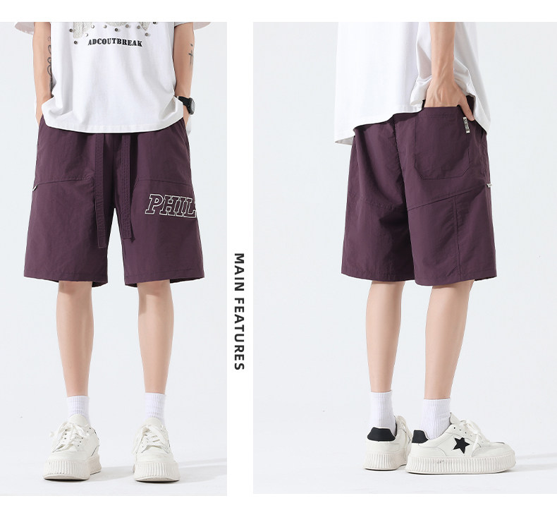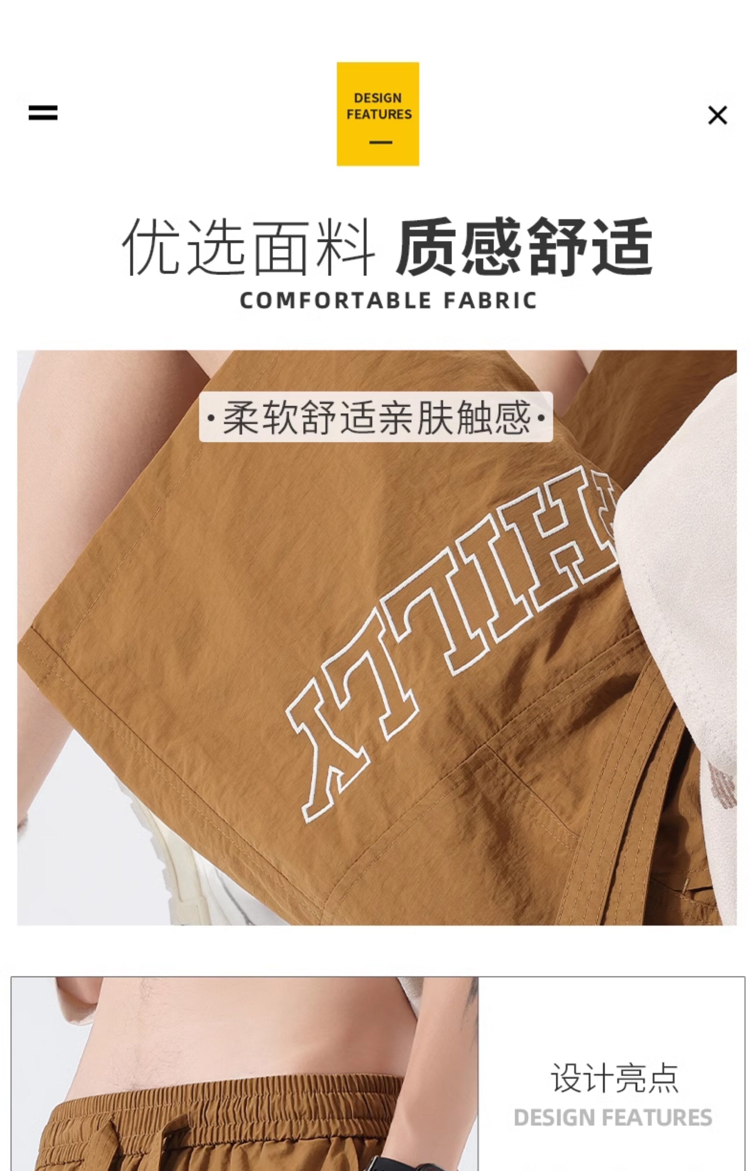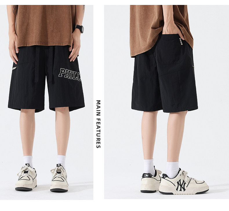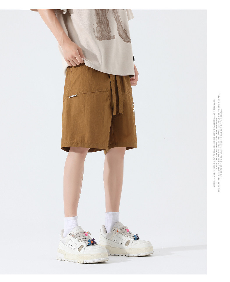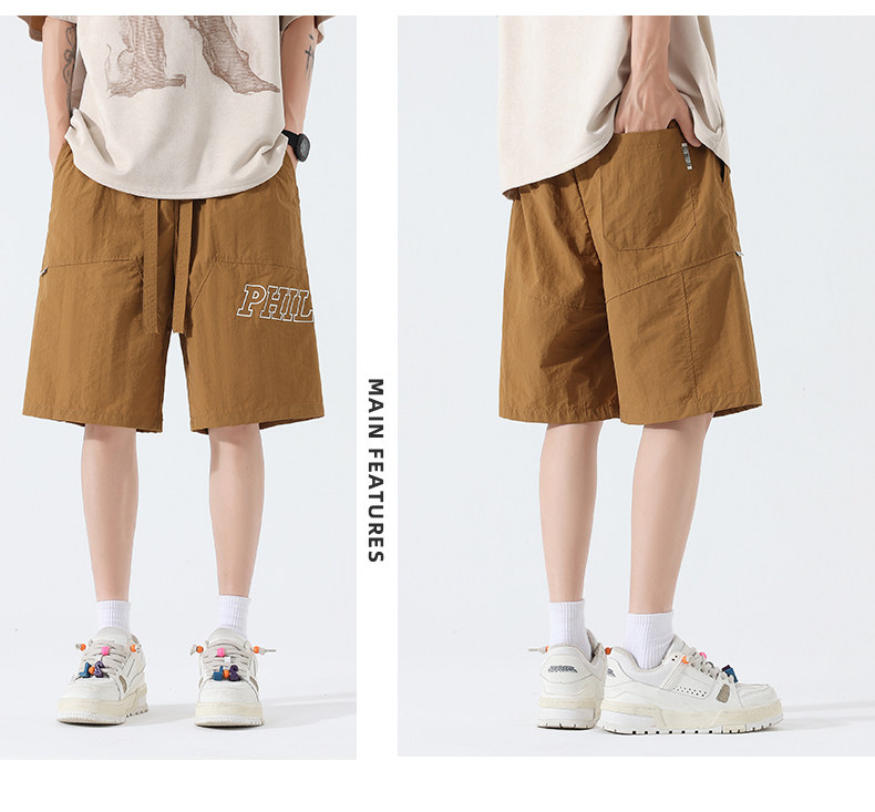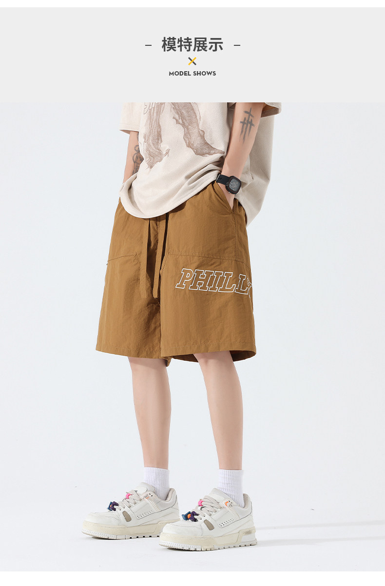 American-Style Work Shorts for Men, Summer Ice Silk Cool-Feel Five-Point Shorts, Loose Fit, Quick-Drying, Casual, Fashionable Sports Pants for Teenagers