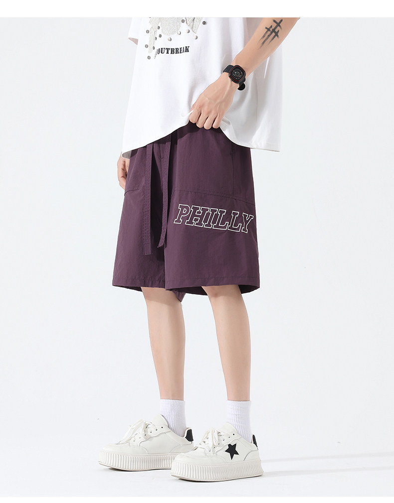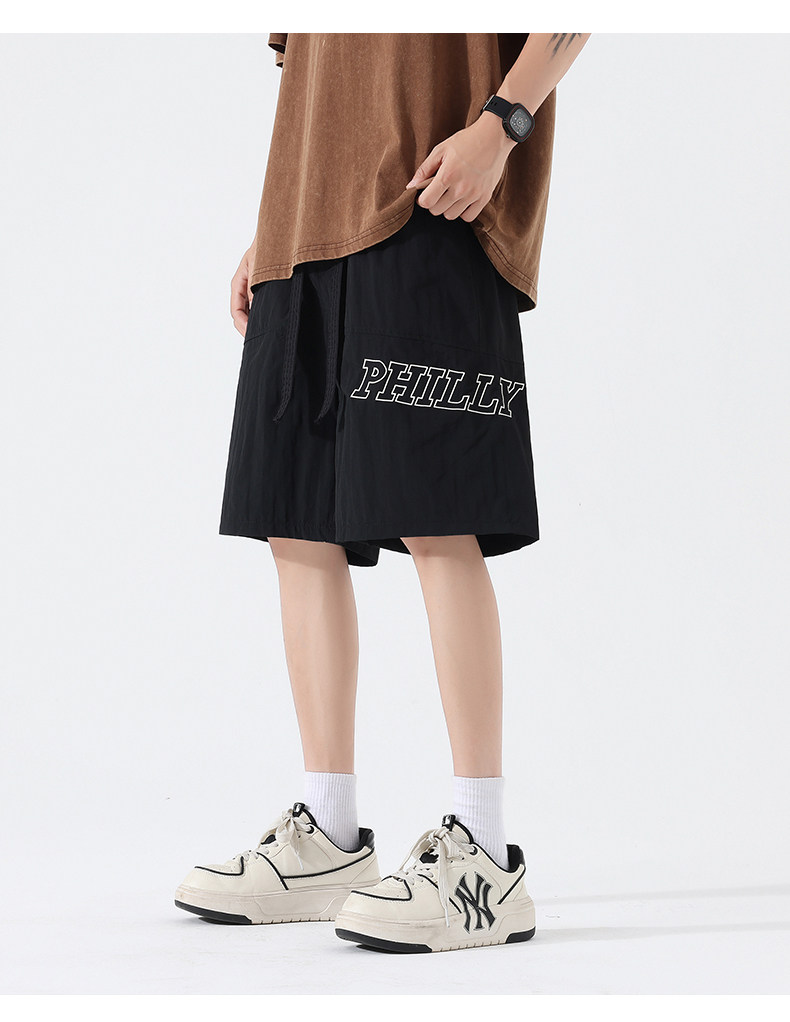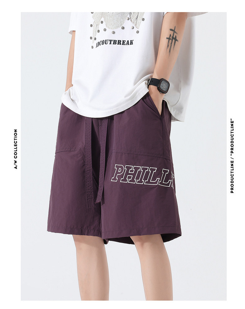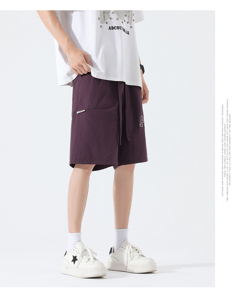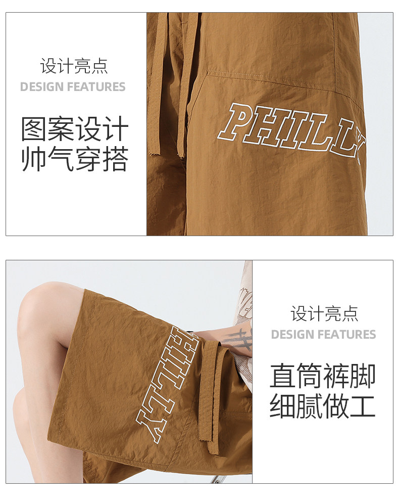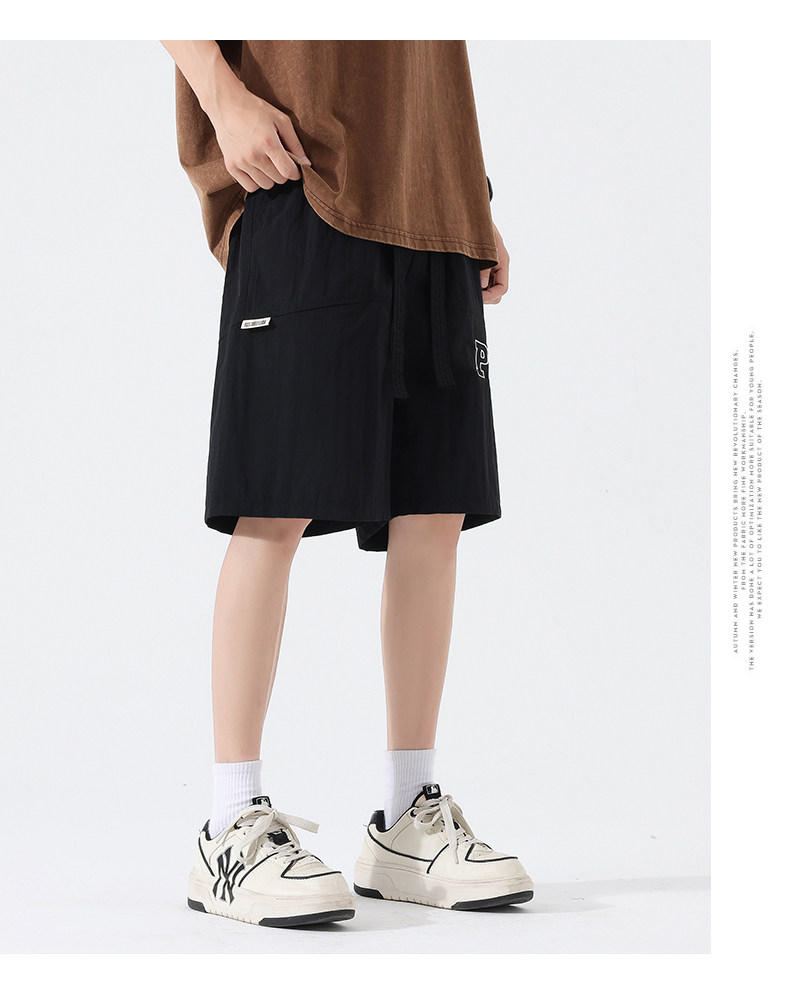 American-Style Work Shorts for Men, Summer Ice Silk Cool-Feel Five-Point Shorts, Loose Fit, Quick-Drying, Casual, Fashionable Sports Pants for Teenagers