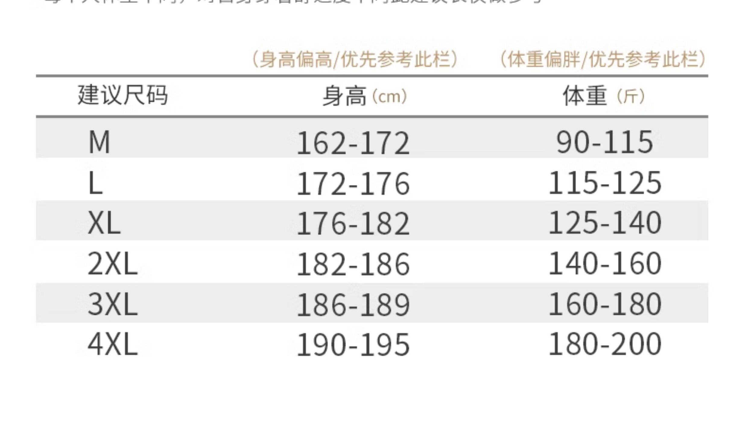 China (cm) 160-165/84-86 165-170 / 88-90 167-172 / 92-96 168-173 / 98-102 170-176 / 106-110