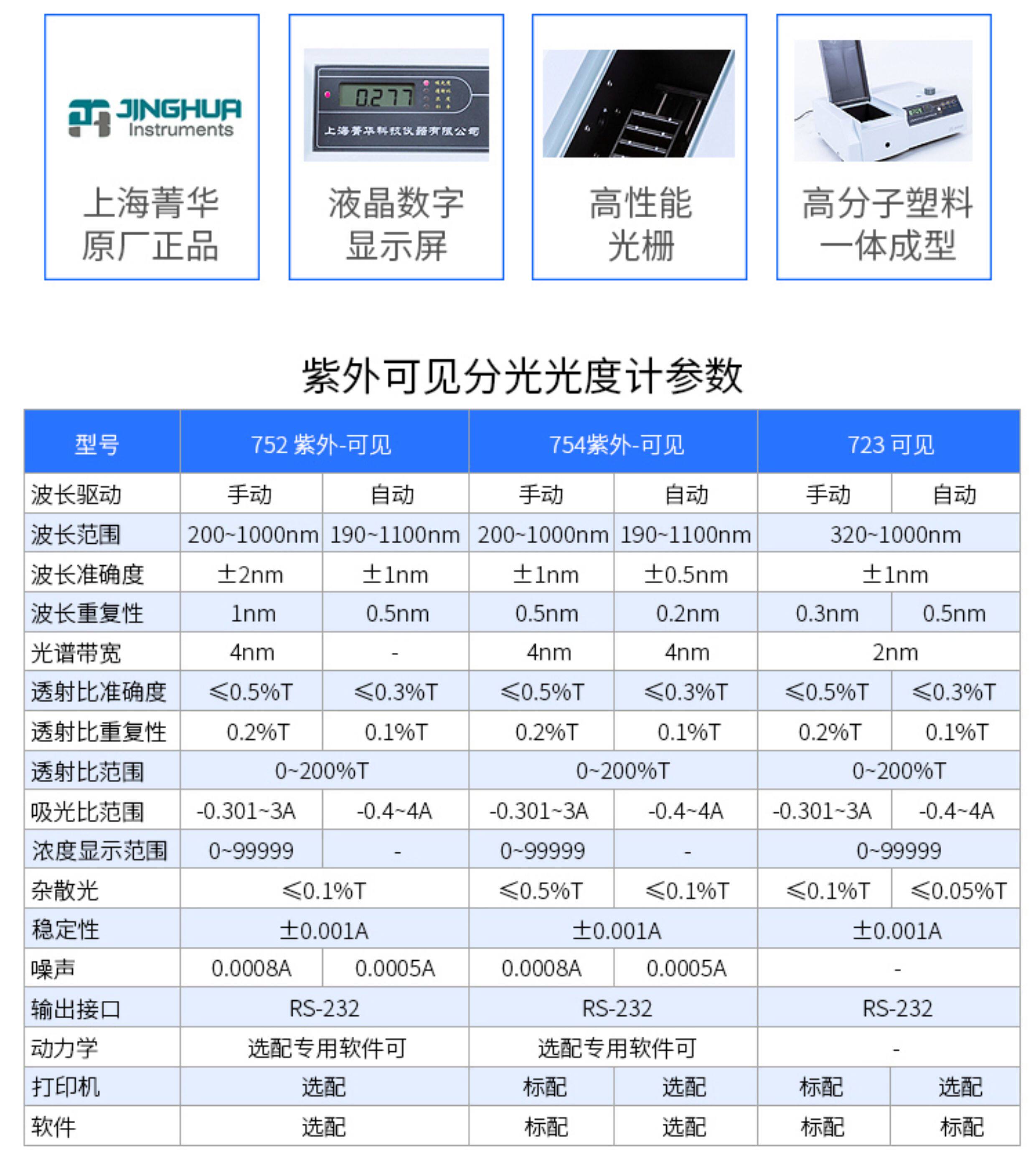 Shanghai Jinghua 721/722 Visible Spectrophotometer 754/752 Laboratory Ultraviolet Spectrophotometer