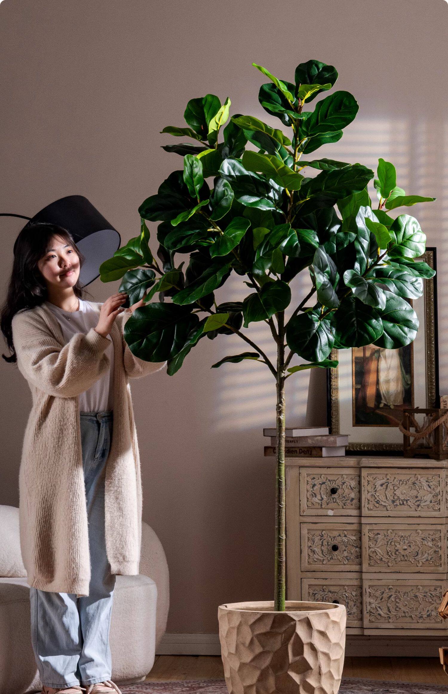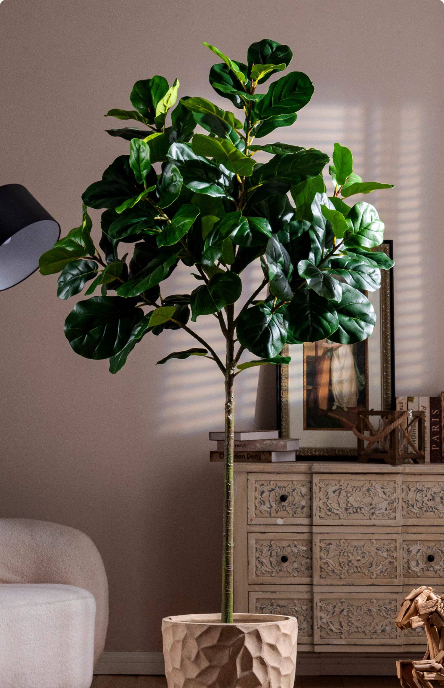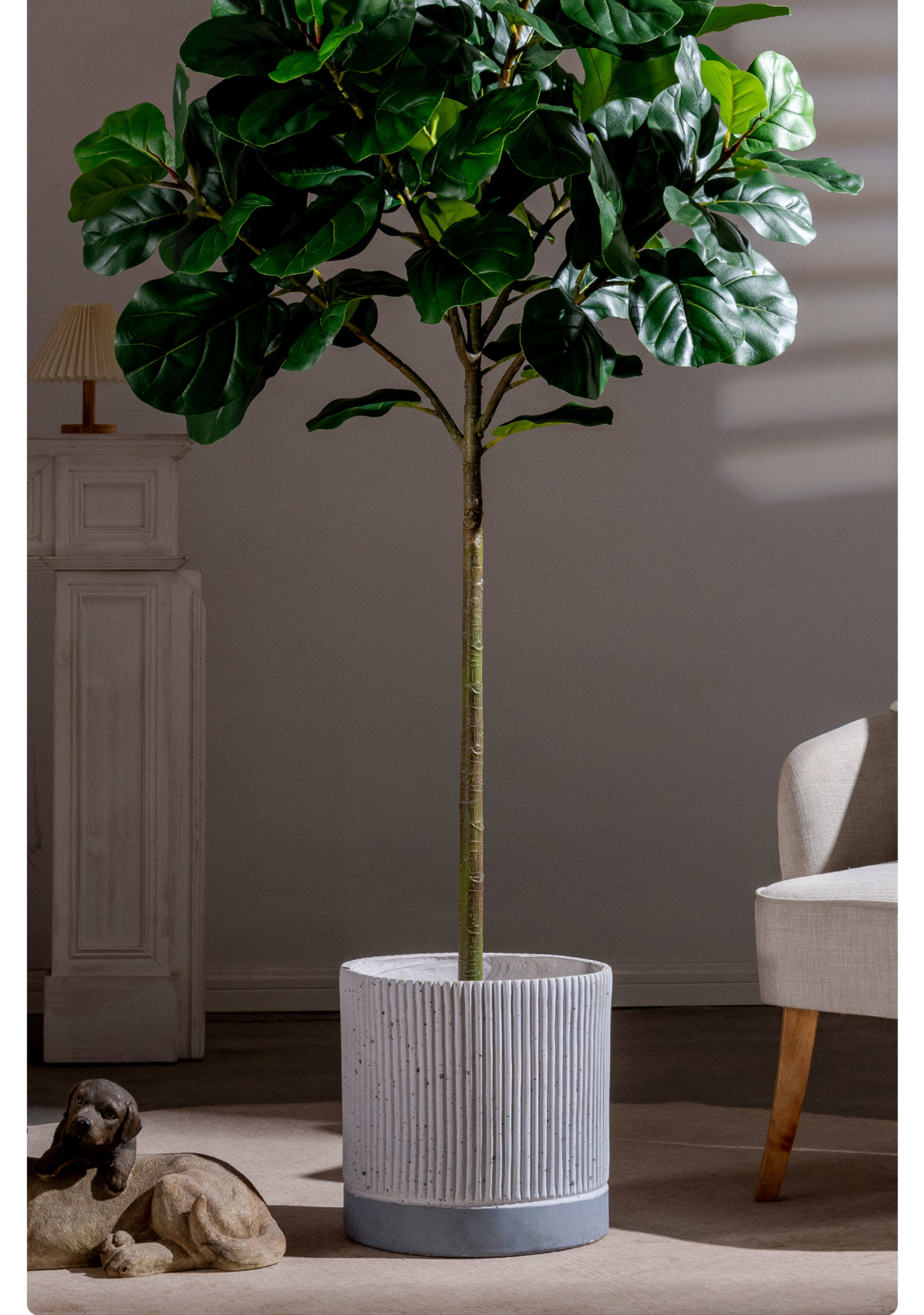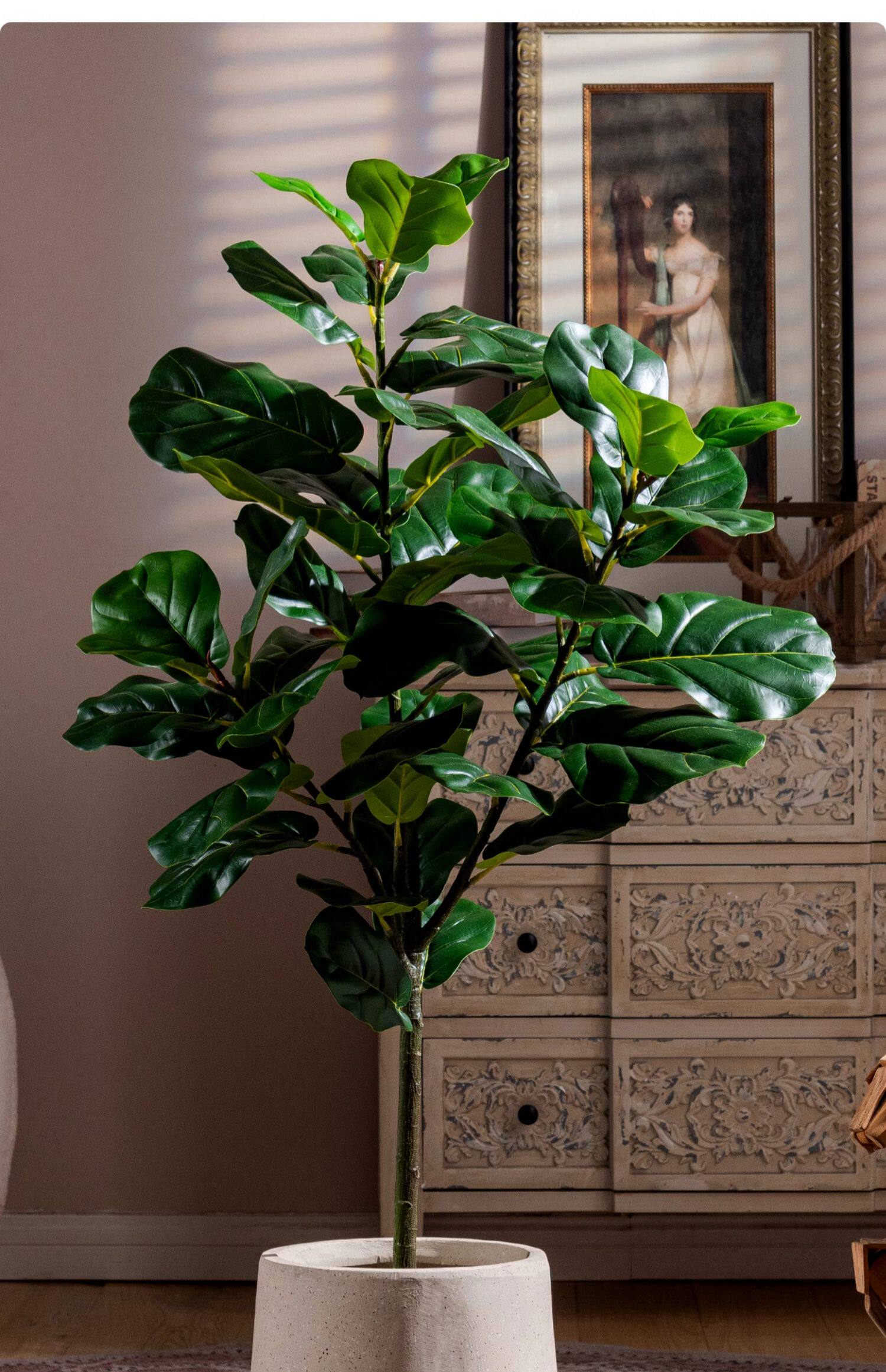 Ficus Lyrata Artificial Green Plant, High-End Light Luxury Fake Tree, Bionic Green Plant for Indoor Living Room, Shop Landscaping, Floor-Standing Decoration