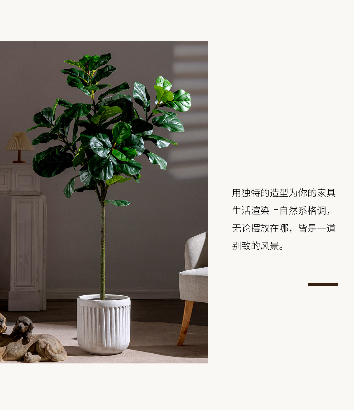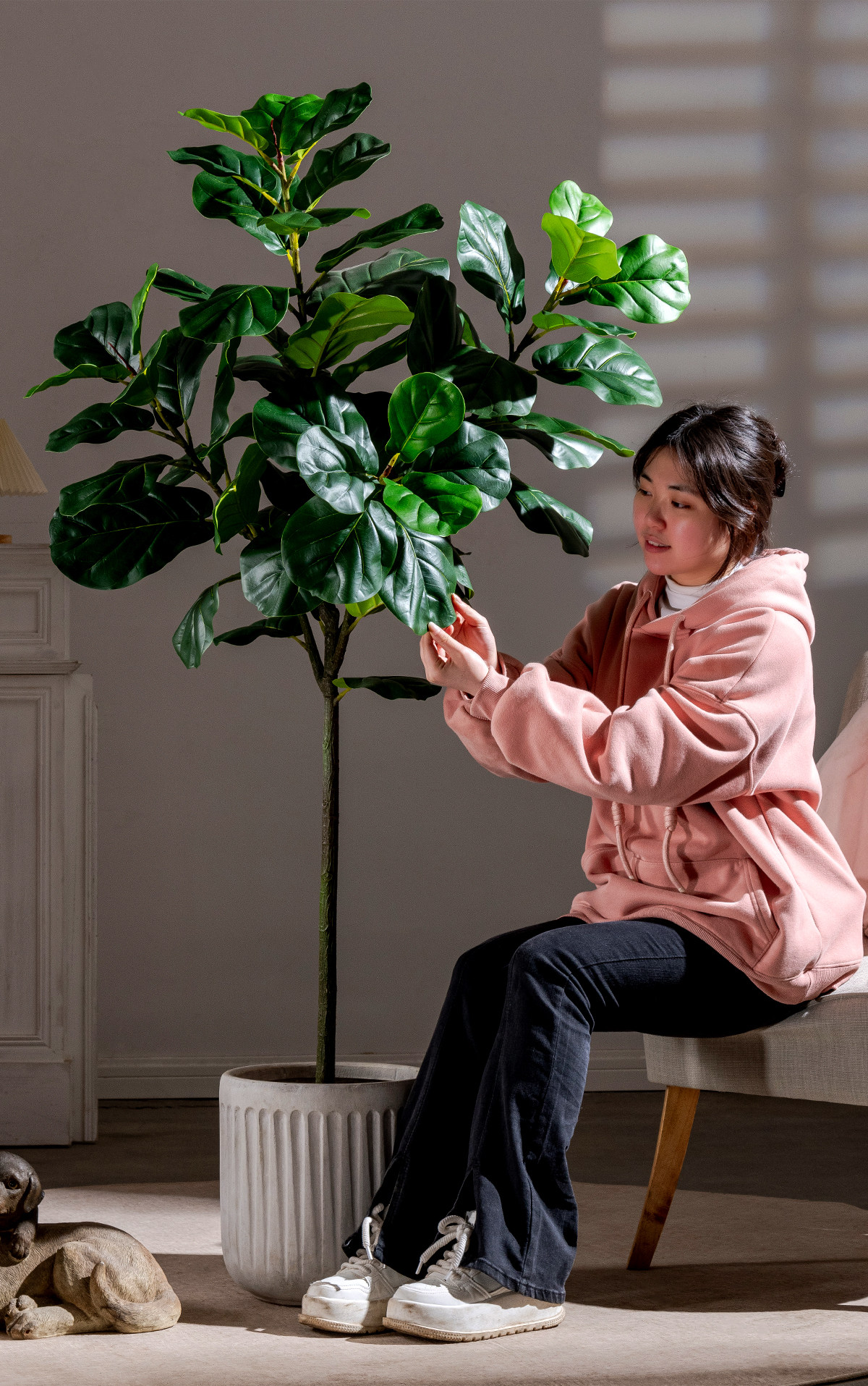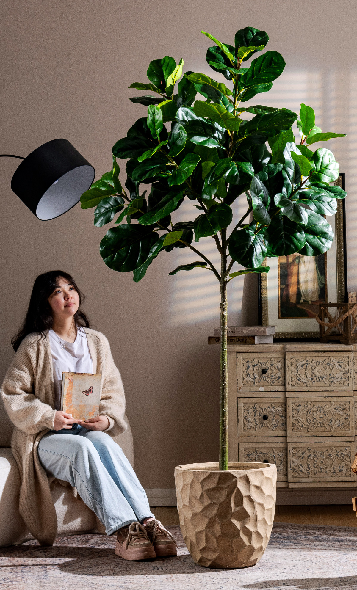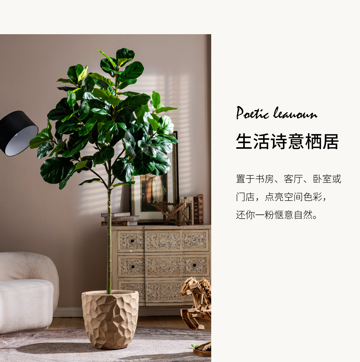 Ficus Lyrata Artificial Green Plant, High-End Light Luxury Fake Tree, Bionic Green Plant for Indoor Living Room, Shop Landscaping, Floor-Standing Decoration