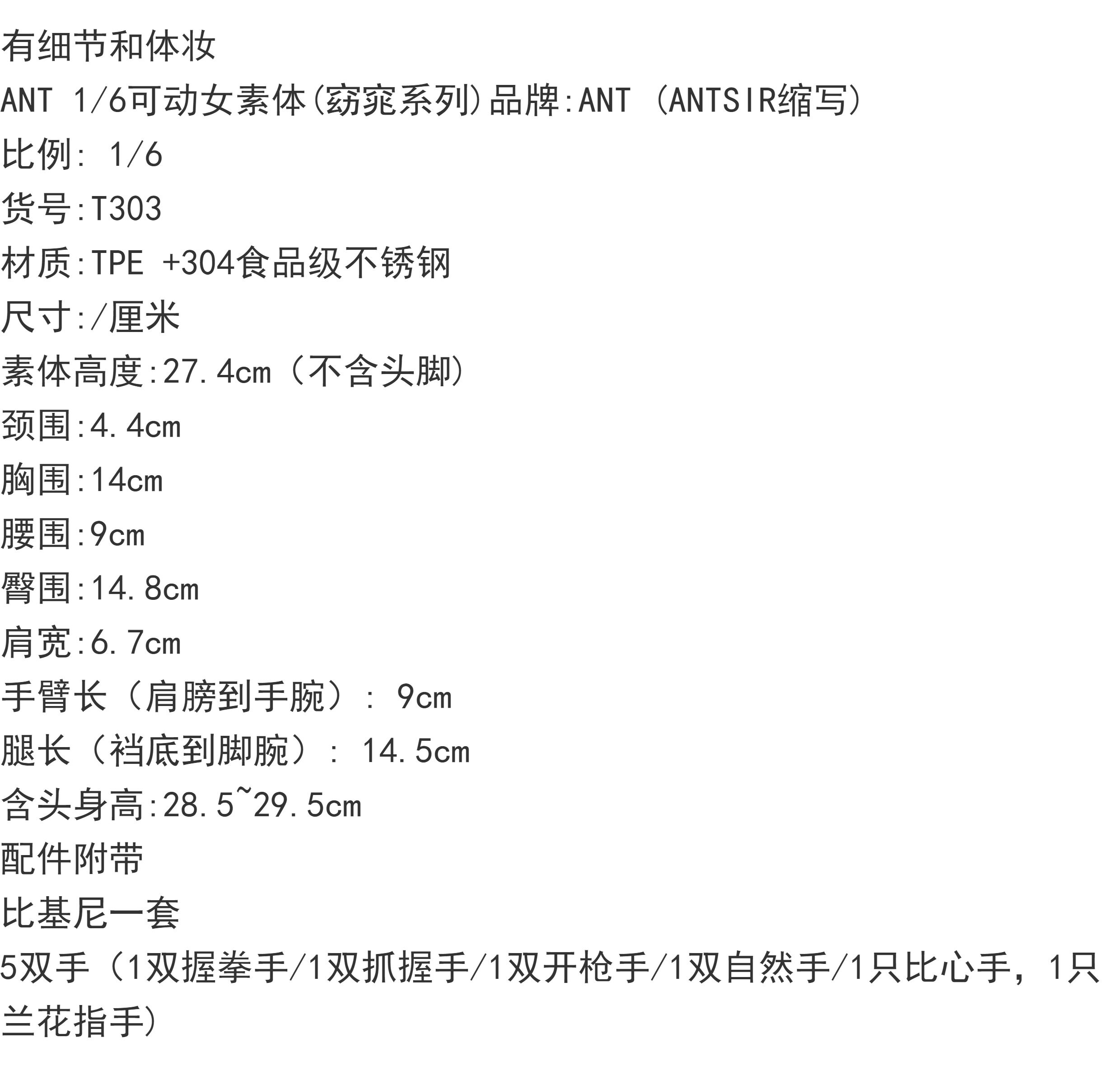 In Stock Ant 1/6 Female Action Figure Body T303 T303P Slim Full Steel Skeleton with Plastic Coating, Movable Joints Female Body