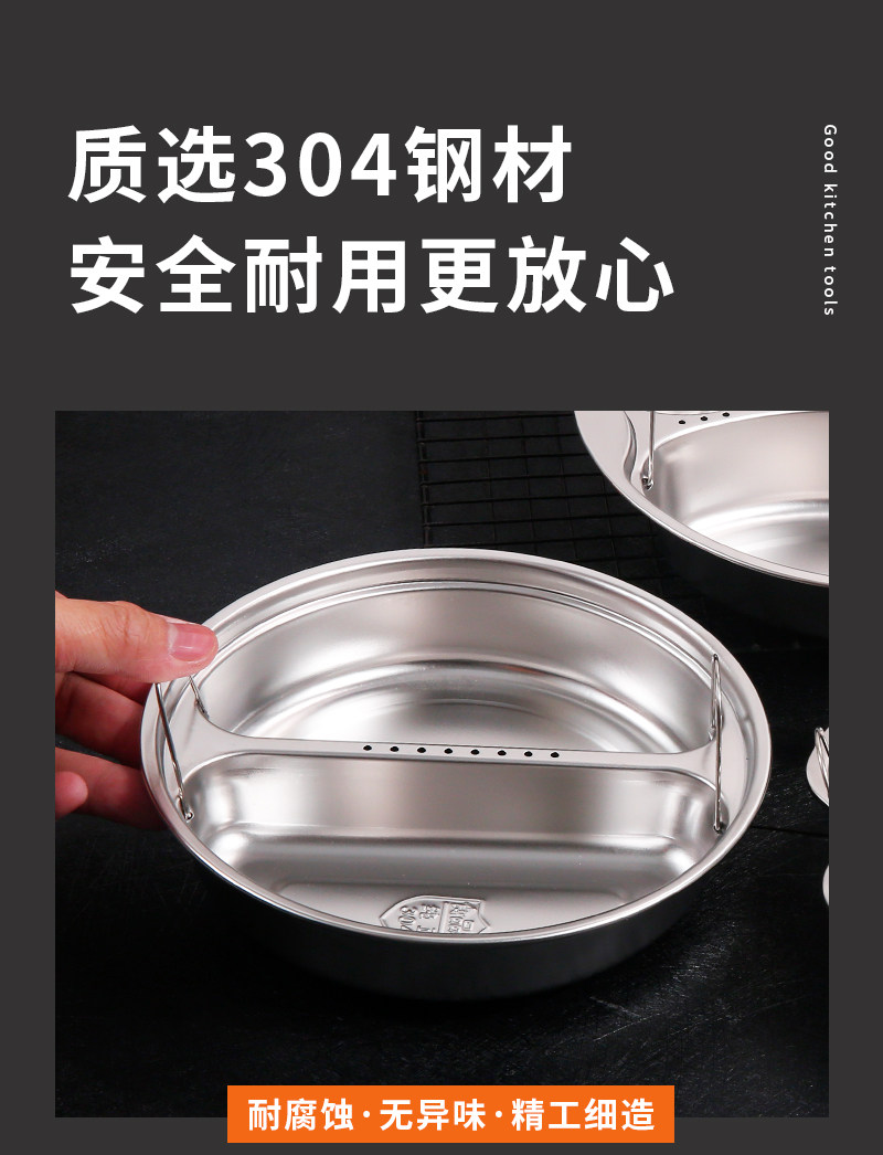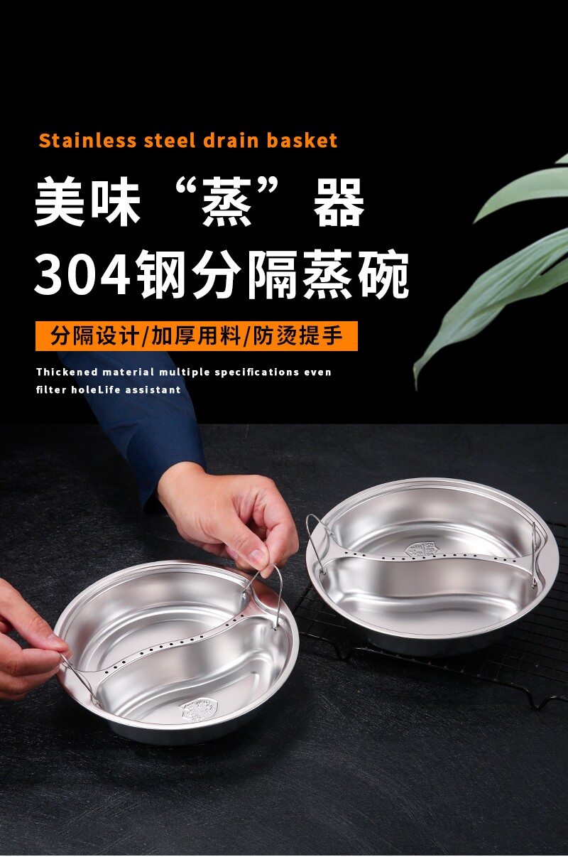 German Imported Yuanyang Steaming Tray, 304 Stainless Steel, Two-Compartment Steaming Bowl, Steaming Dish, Steamer, Rice Cooker Inner Steaming Tray