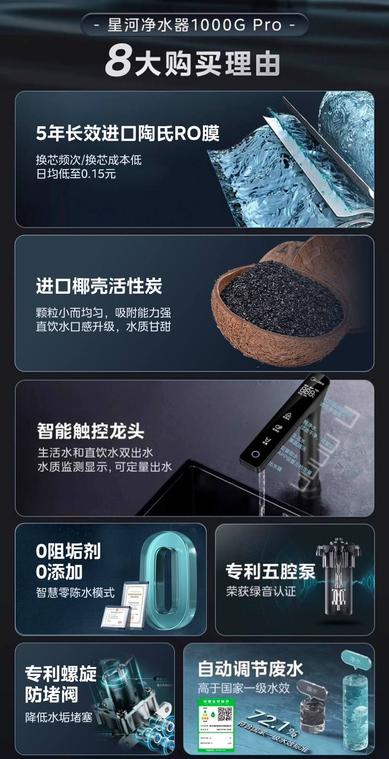 Midea Galaxy 1000Gpro water purifier household direct drinking machine kitchen RO reverse osmosis new official top ten brands