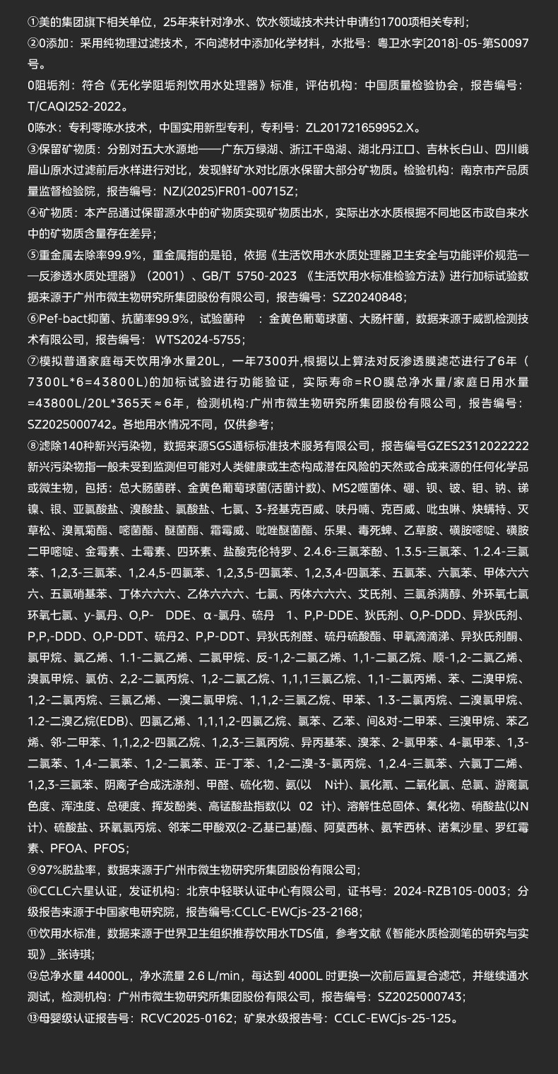 Warranty Policy 3-year warranty for the entire machine and 5-year warranty for core components (water pump, water circuit board) *Filter elements are consumables and are not covered by the warranty.