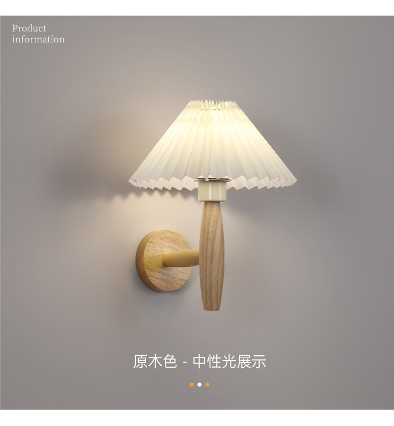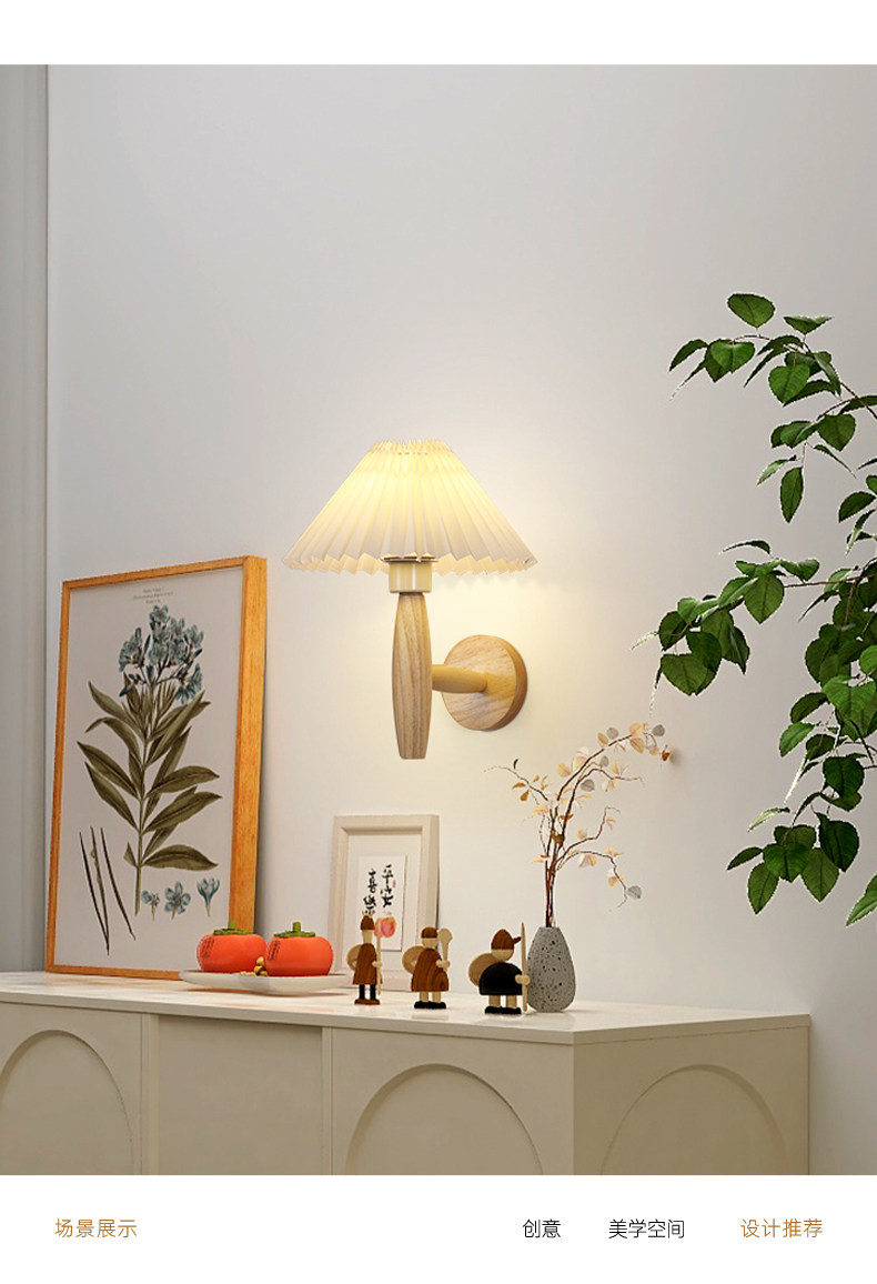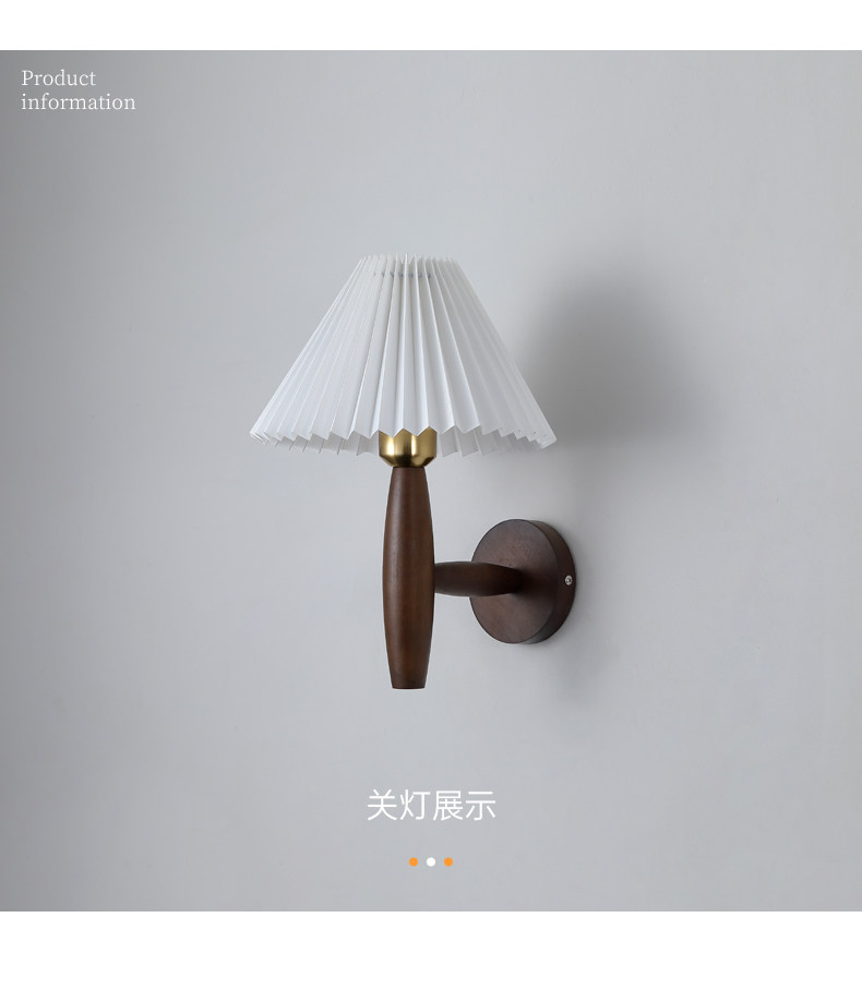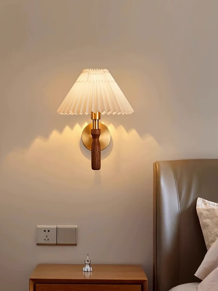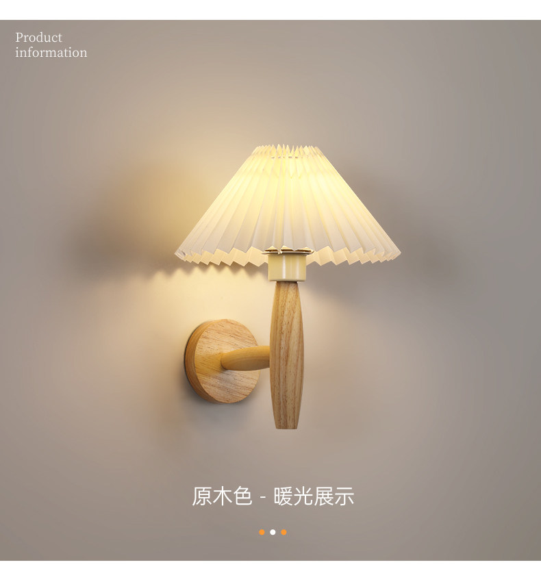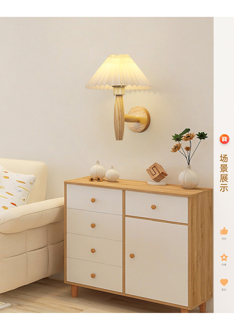 Nordic Ins-Style Pleated Solid Wood Wall Lamp, Warm and Eye-Friendly, Japanese Wabi-Sabi Retro Bedroom Bedside Lamp