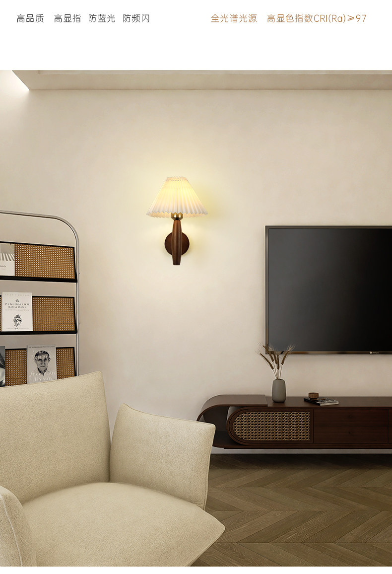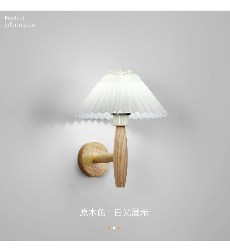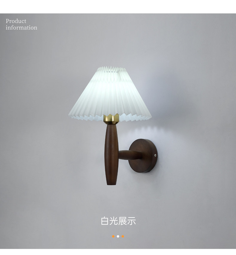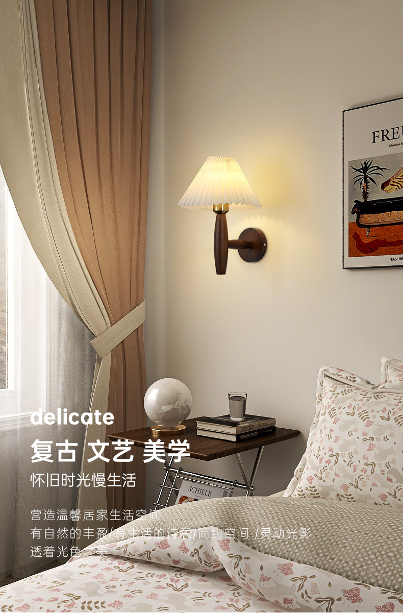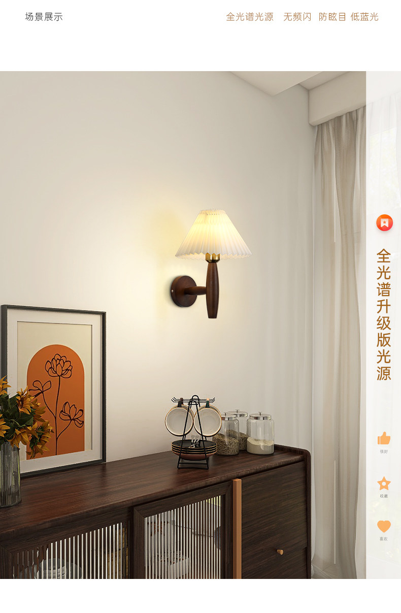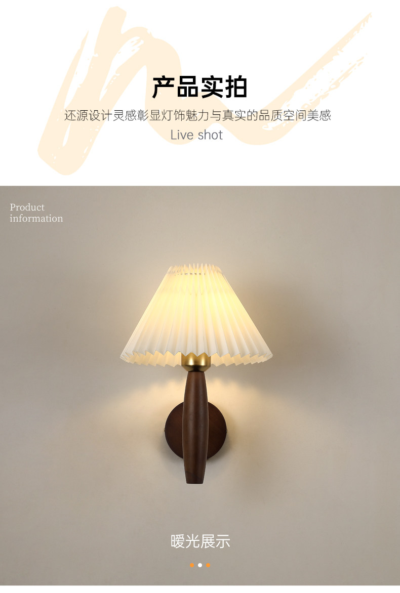 Nordic Ins-Style Pleated Solid Wood Wall Lamp, Warm and Eye-Friendly, Japanese Wabi-Sabi Retro Bedroom Bedside Lamp