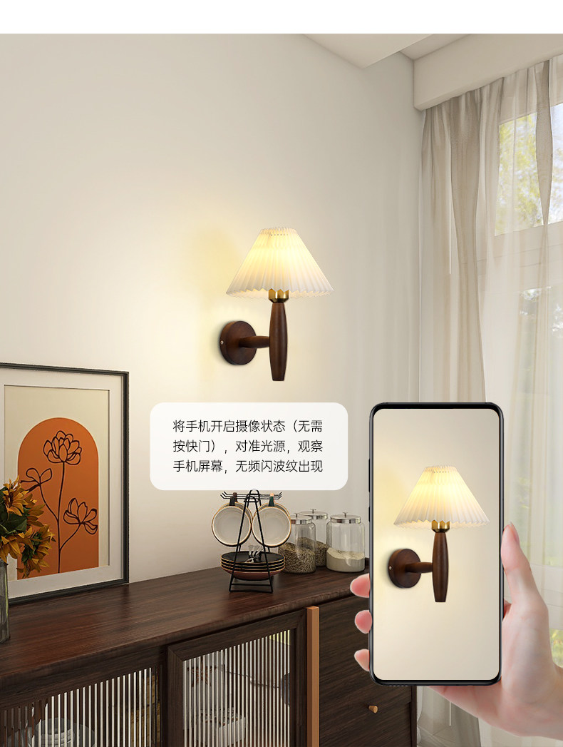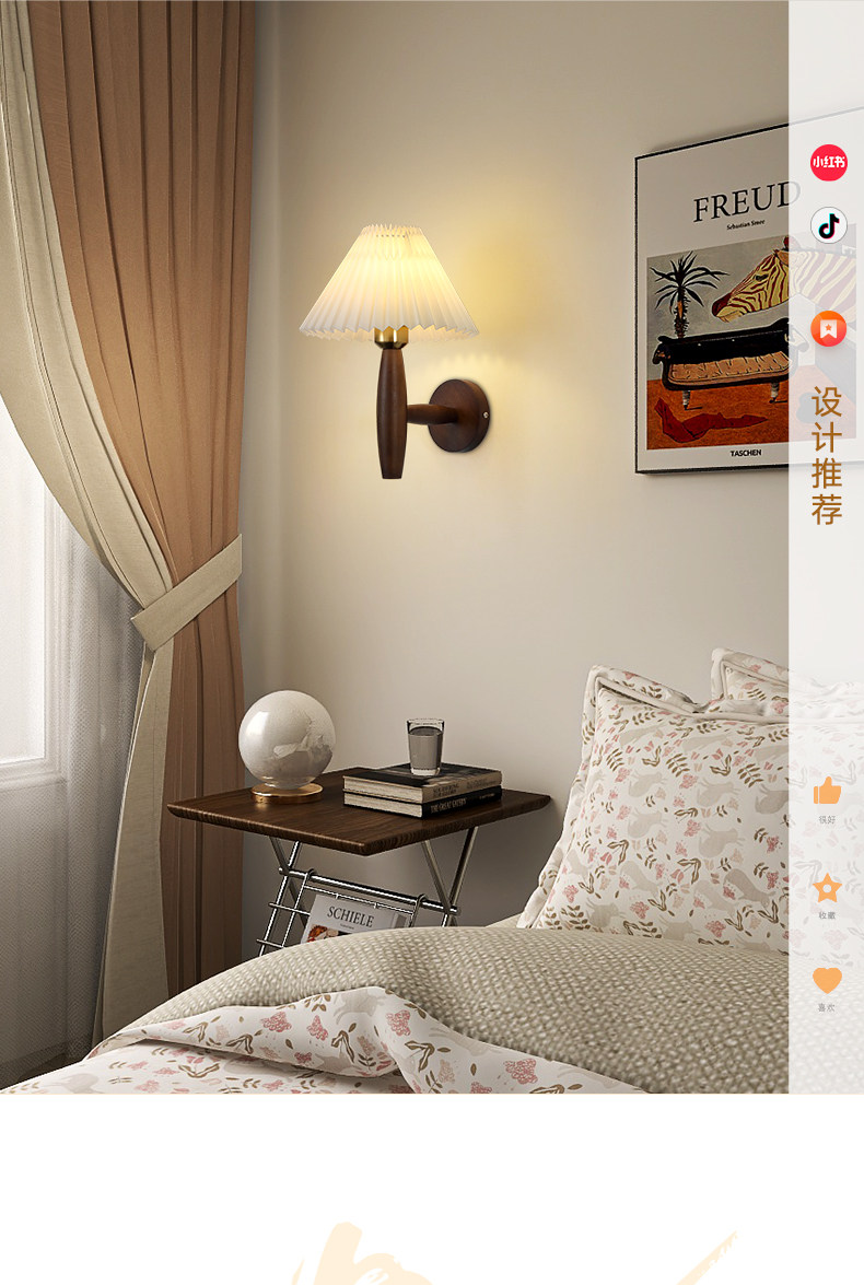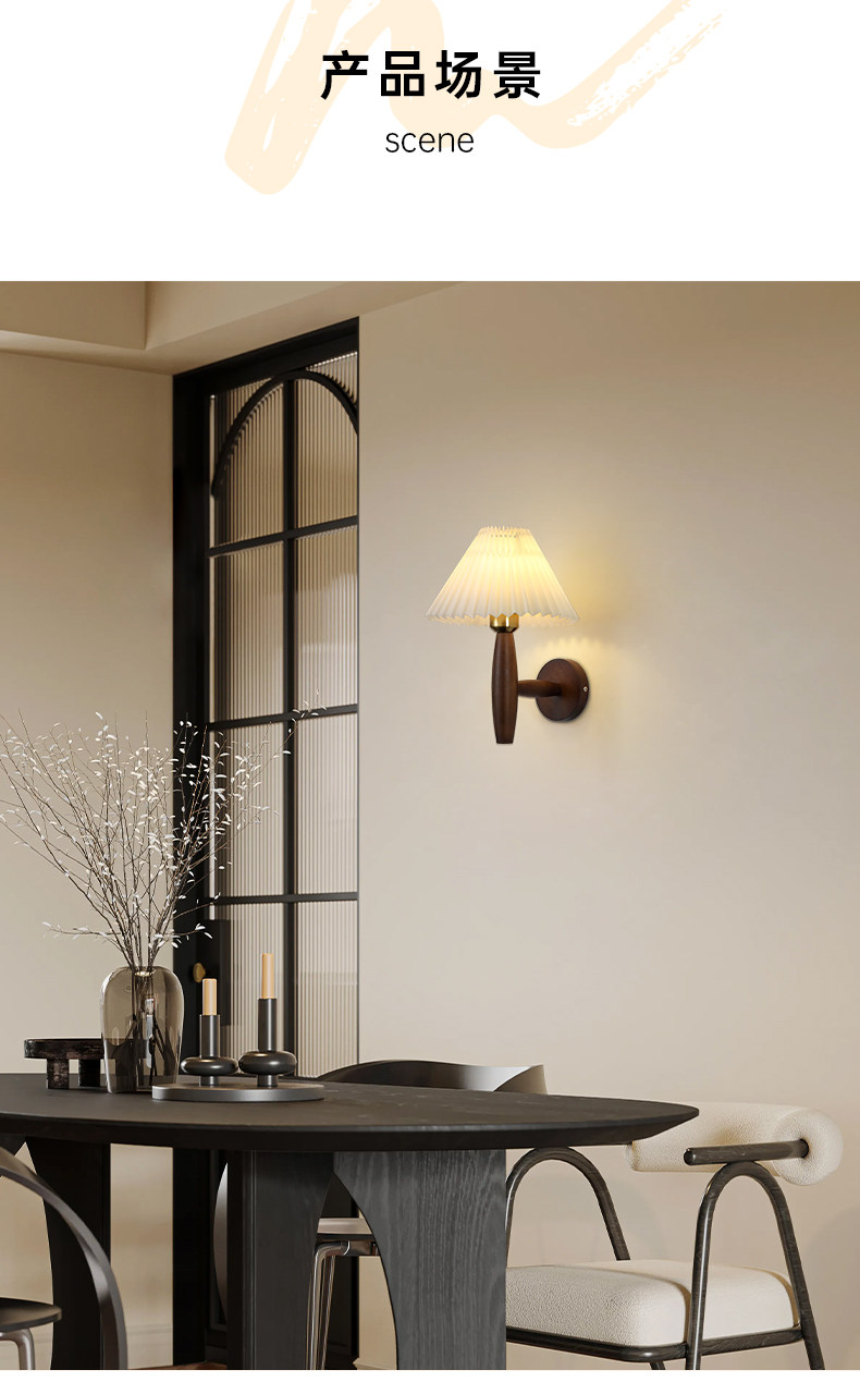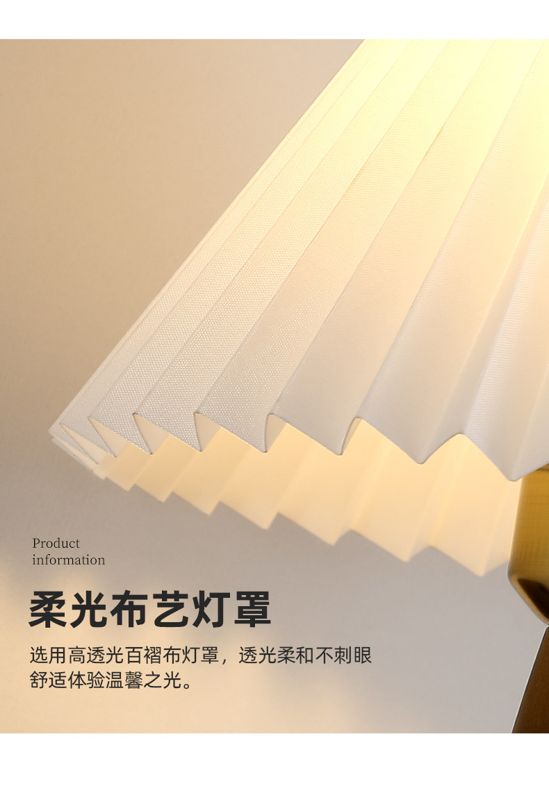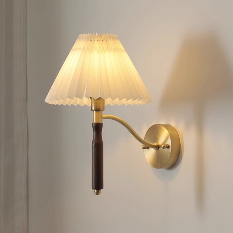 Nordic Ins-Style Pleated Solid Wood Wall Lamp, Warm and Eye-Friendly, Japanese Wabi-Sabi Retro Bedroom Bedside Lamp