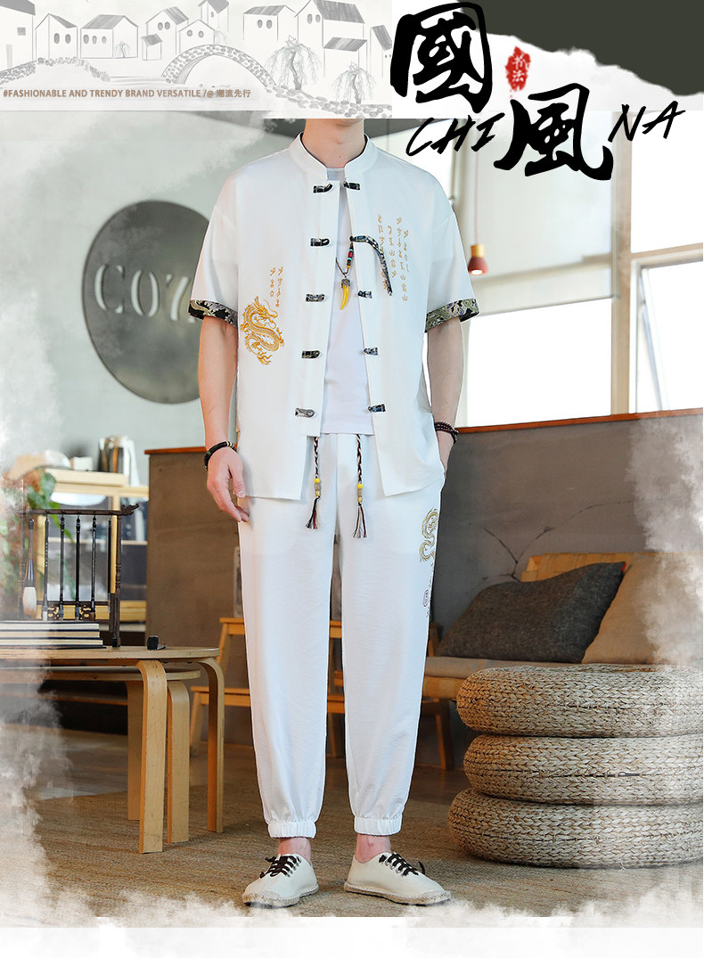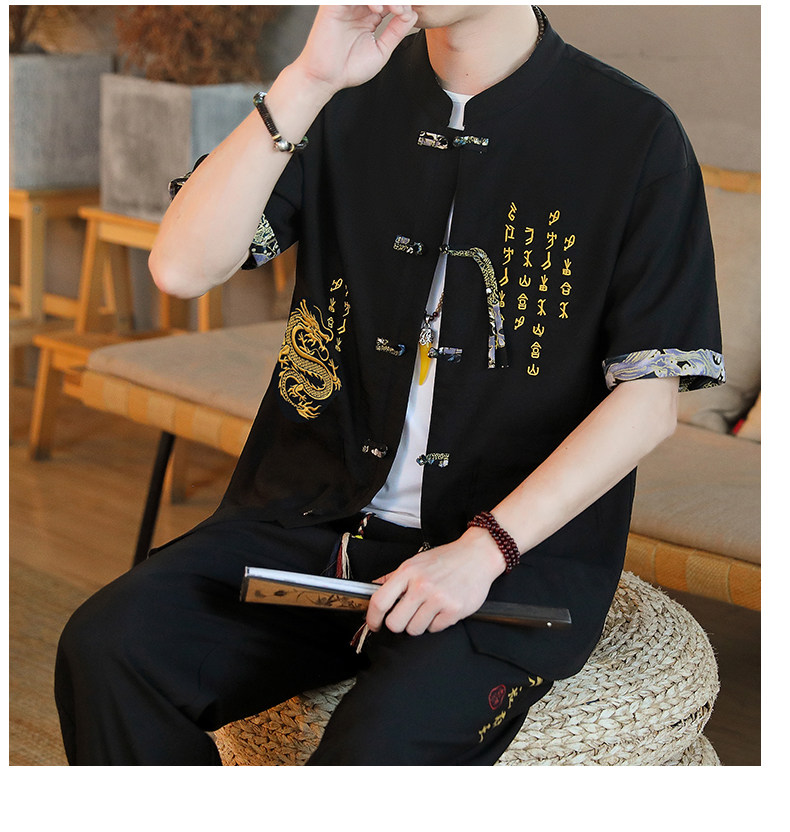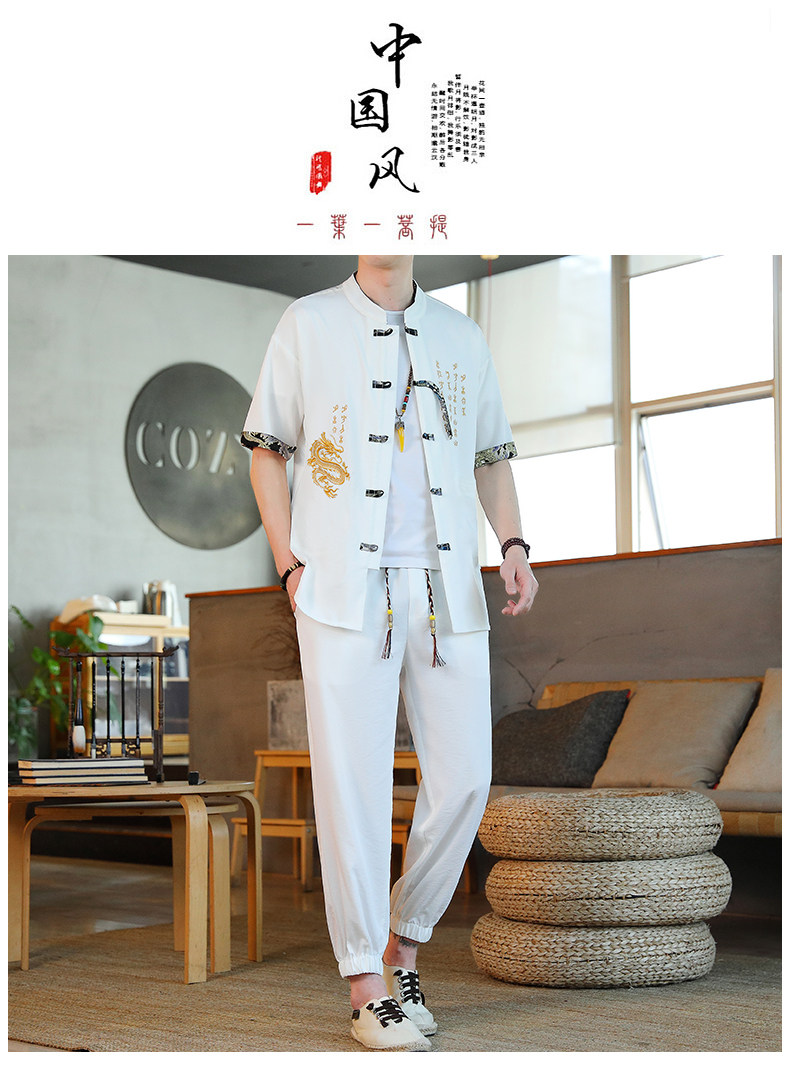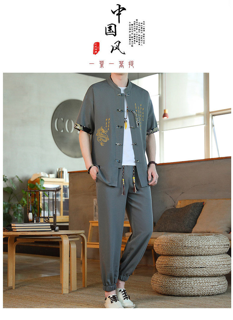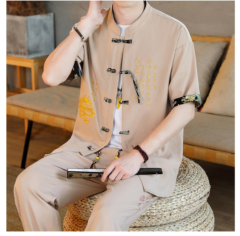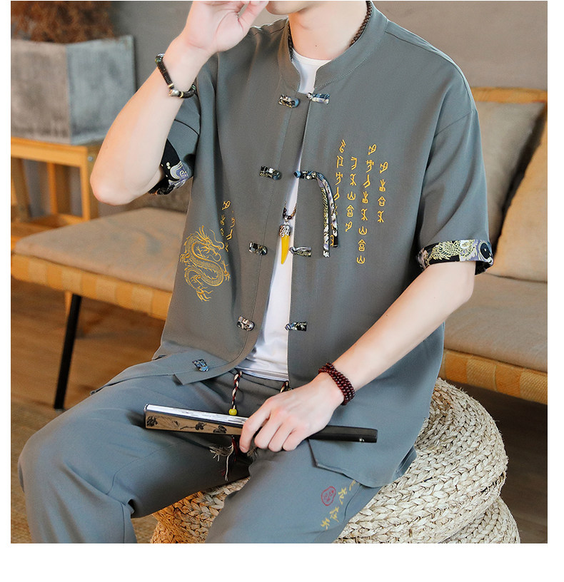 Chinese Style Short-Sleeved Shirt for Men, New Summer Set, Trendy Brand, Retro New Chinese Style, Button-Down Half-Sleeve Men's Shirt