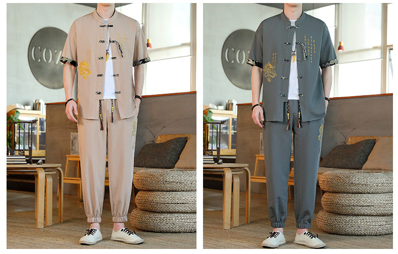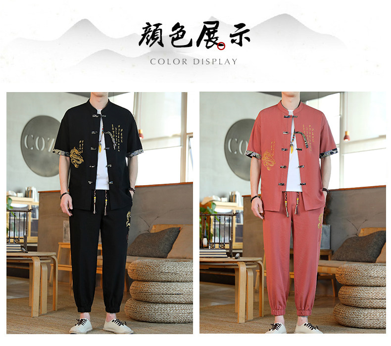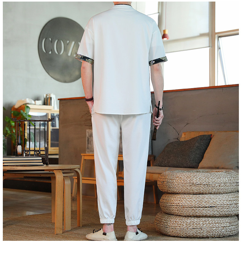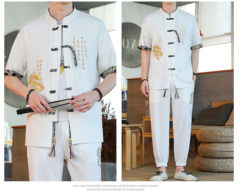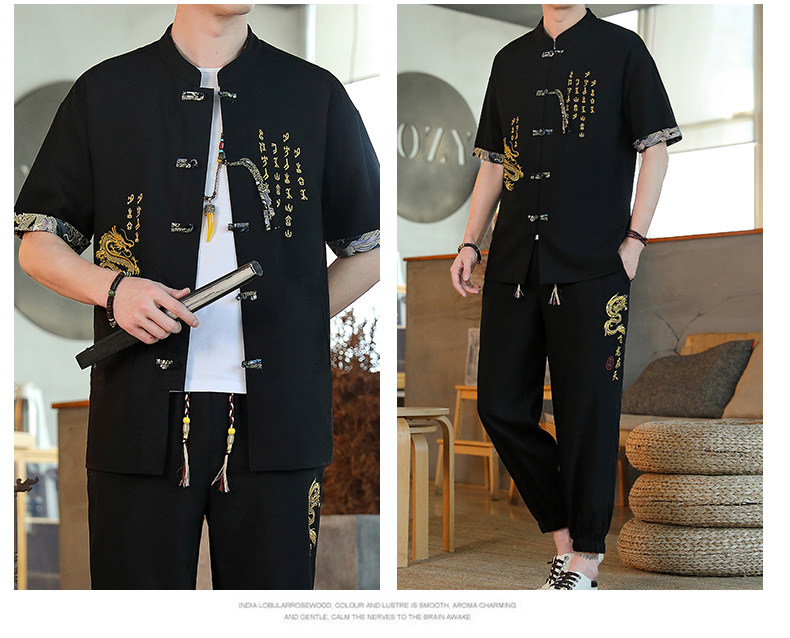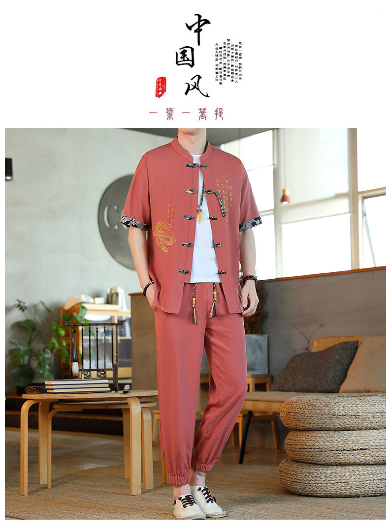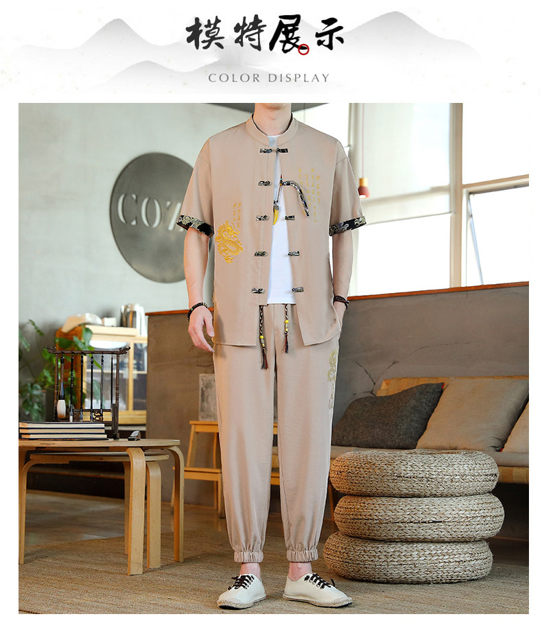 Chinese Style Short-Sleeved Shirt for Men, New Summer Set, Trendy Brand, Retro New Chinese Style, Button-Down Half-Sleeve Men's Shirt