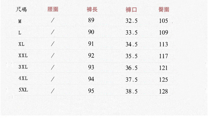 USA(inch) 28-30 30-32 32-34 34-38 38-42