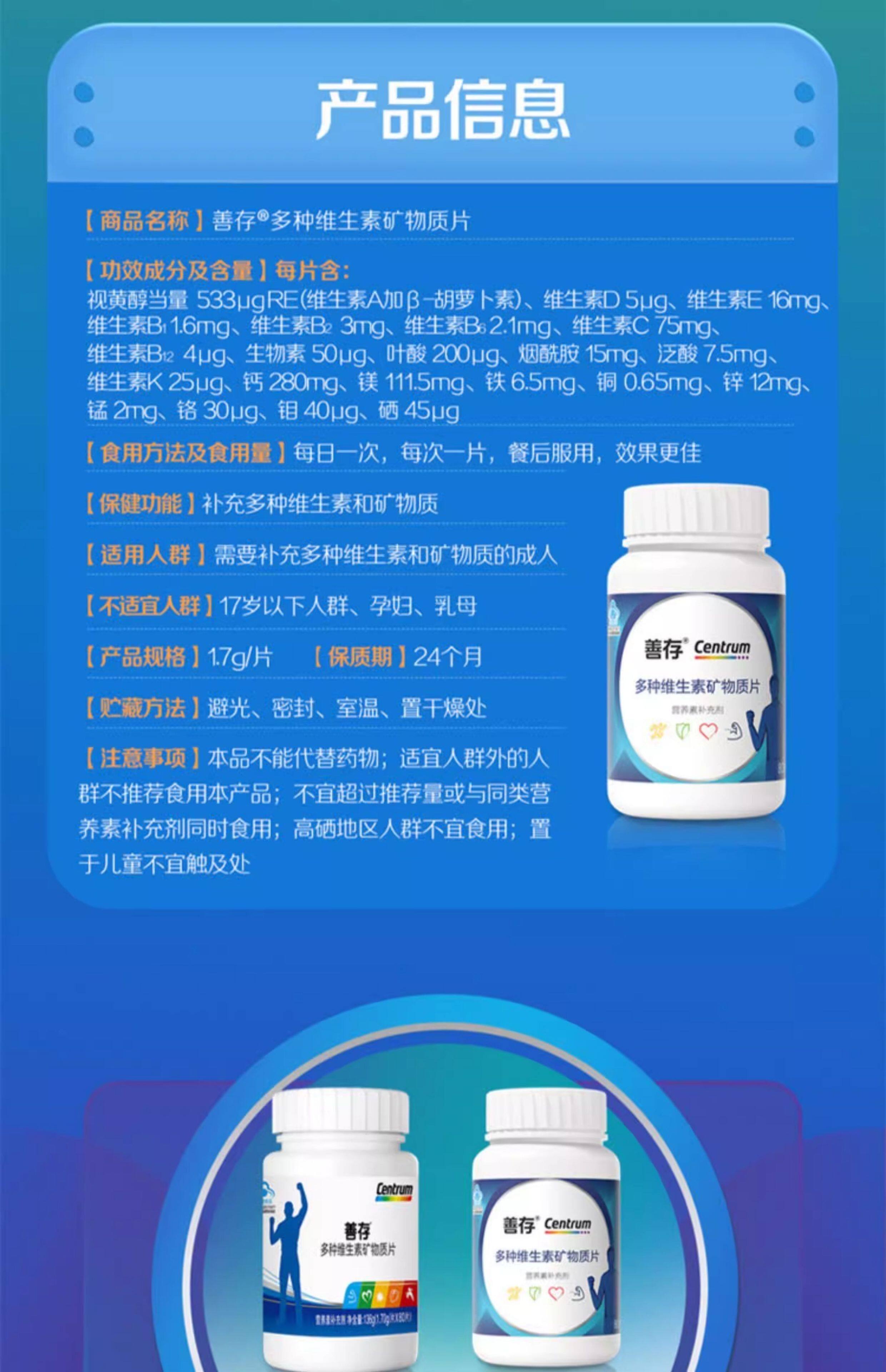 Color Classification [Stock-Up Discount] Men's 80 Tablets*3 Bottles,[Hot Selling Recommendation] Men's 80 Tablets*2 Bottles,[Classic] Men's 80 Tablets*1 Bottle,[Discount] Men's 52 Tablets,[Try It Out] Men's 40 Tablets,[Classic] Men's 80 Tablets*1 Bottle*,[Discount Pack] Men's Vitamins 52 Tablets*2 Boxes,【21-Day Supply】Centrum Men Multivitamin 21 Tablets * 1 Box [Bottle with "Not for Sale" Label/Trial Pack],[Try It Out] Men's 40 Tablets*,[21-Day Trial Pack] Centrum Men's Multivitamins 21 Tablets*1 Box [Bottle with Non-Sale Label/Early Adopter Pack],[Hot Selling Recommendation] Men's 80 Tablets*2 Bottles*,[Store First Recommendation] 80-Day Supply of Centrum Men's Multivitamins 80 Tablets*1 Box,【Basic Pack】42-Day Supply Centrum Men Multivitamin 21 Tablets * 2 Boxes 【Bottles with "Not for Sale" Label / Trial Pack】,[Trial Pack] 21-Day Supply of Centrum Men's Multivitamins 21 Tablets*1 Box [Bottle with Non-Sale Label/Early Adopter Pack],[Stock-Up Discount] Men's 80 Tablets*3 Bottles*