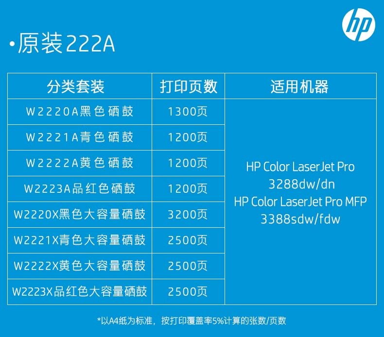 Hp Original 222A Toner Cartridge Black and Color Four-Color W2220A Toner Cartridge W2220X W2221A W2222A W2223A Suitable for Laserjet Pro 3288Dw 3388Fdw Printers