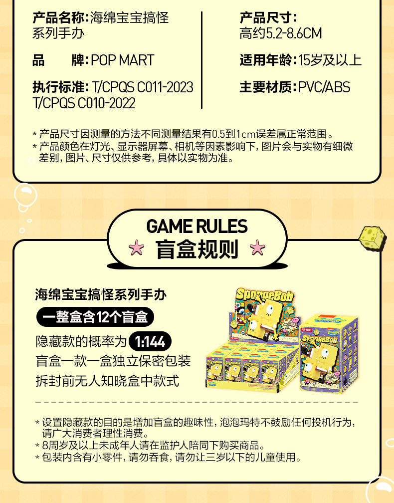 Style Description ★★Same Day Delivery★★Spongebob's Best Friend - One Random Figure,★★Same Day Delivery★★Spongebob Friends - Brand New Full Case,★★Same Day Delivery★★Spongebob Friends - Confirmed Style, 12 Pieces,★★Same Day Delivery★★Spongebob's Best Friend - Land Mowing Master,★★Same Day Delivery★★Spongebob's Best Friend - the Ultimate Gardener,★★Same Day Delivery★★Spongebob's Best Friend - Big Bowl of Ice Cream,★★Same Day Delivery★★Spongebob's Best Friends - Delicious Cake,★★Same Day Delivery★★Spongebob's Best Friends - Clean Teeth,★★Same Day Delivery★★Spongebob's Best Friend - Toothpaste Taster,★★Same Day Delivery★★Spongebob's Best Friend - I'M Patrick Star,★★Same Day Delivery★★Spongebob's Best Friend - I'M Spongebob,★★Same Day Delivery★★Spongebob's Best Friend - Krabby Patties Express,★★Same Day Delivery★★Spongebob's Best Friend - Pie Pie Speedster,★★Same Day Delivery★★Spongebob's Best Friend - Rope Skipping Player,★★Same Day Delivery★★Spongebob's Best Friend - Wrangler Rising Star,★★Same Day Delivery★★Spongebob Friends Hidden Edition - Born Together,★★Same Day Delivery★★Spongebob's Goofy - Patrick Star Himself,★★Same Day Delivery★★Spongebob's Goofy Home - Patrick Star Edition,★★Same Day Delivery★★Spongebob's Hilarious Home Improvement - Patrick's Renovation,★★Same Day Delivery★★Spongebob's Goofy - Misplaced Sponge,★★Same Day Delivery★★Spongebob Squarepants - Goofy Round Sponge,★★Same Day Delivery★★Spongebob's Goofy - Curvy Sponge,★★Same Day Delivery★★Spongebob Squarepants Funny-(Hidden Style) Birthday Sponge,Spongebob Plush Crossbody Bag,White Container Display Box (No Lights, No Baby),Black Container Display Box (No Lights, No Baby),11cm Black Dust Bag (Baby Not Included),11cm White Dust Bag (Baby Not Included),11cm Red Dust Bag (Baby Not Included)