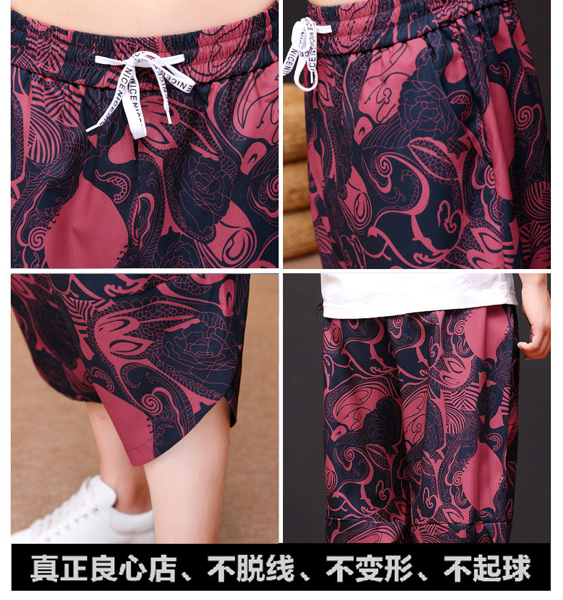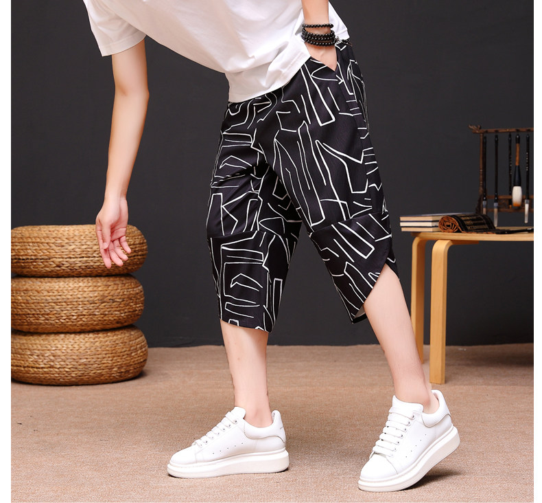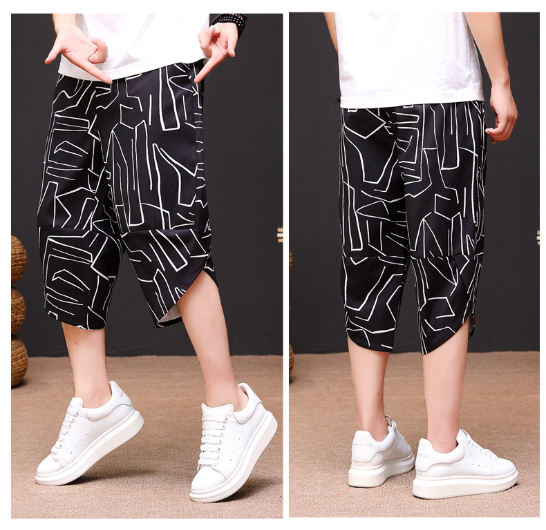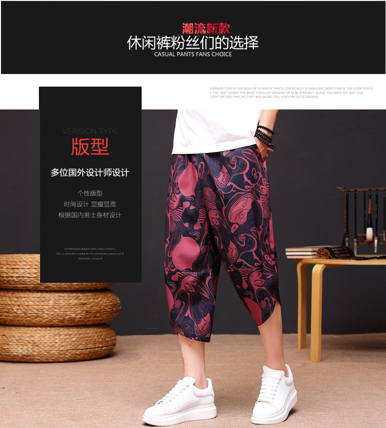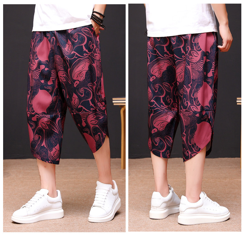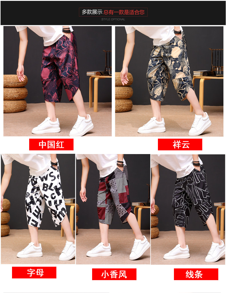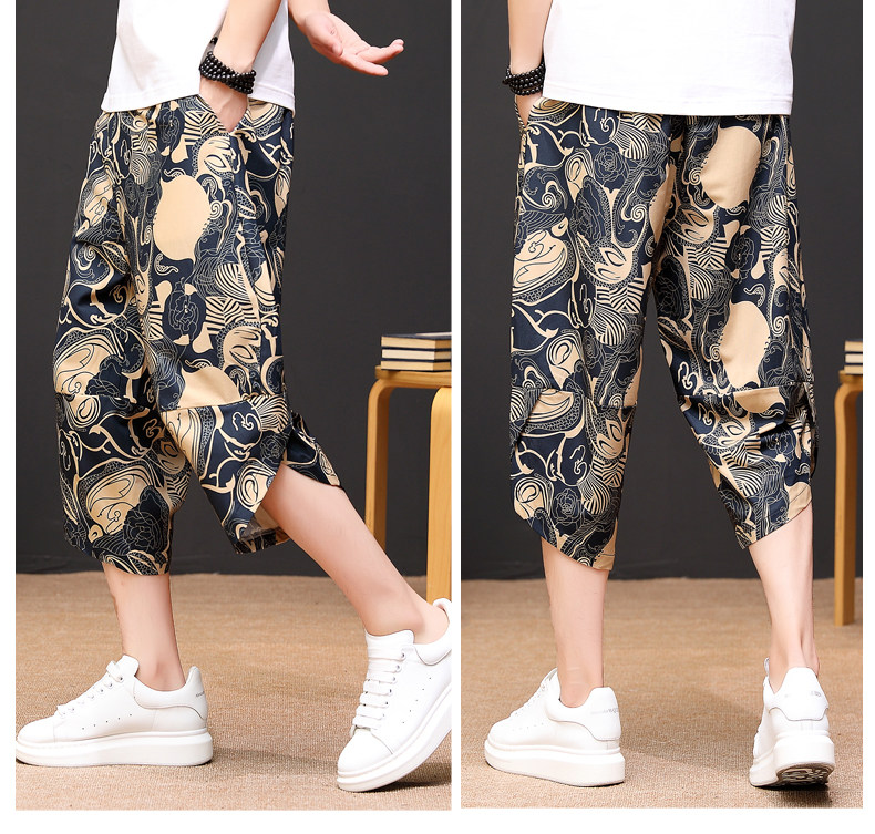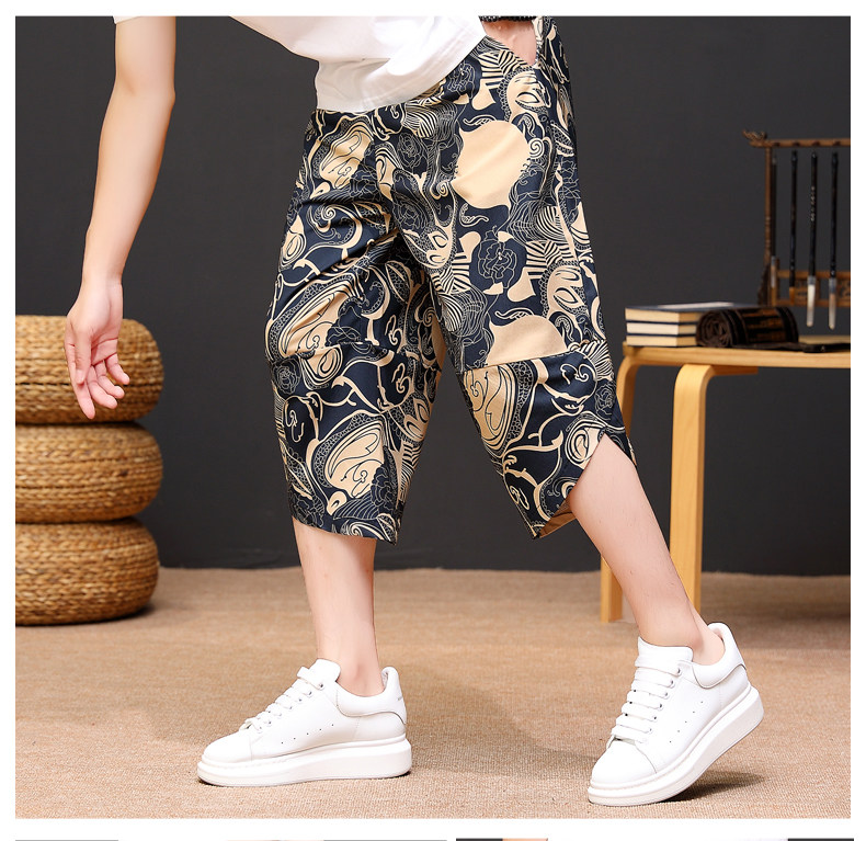 Men's Ice Silk Capri Pants, Summer Thin Casual Loose Shorts, Chinese Style Trendy Sports Mid-Length Pants, Versatile Harem Pants