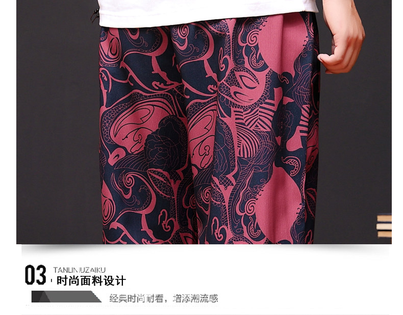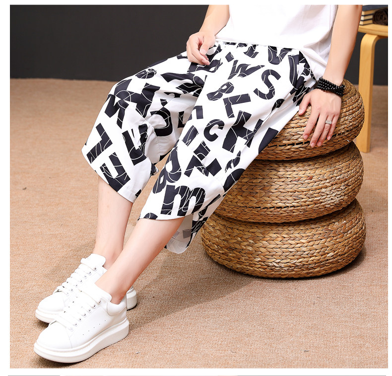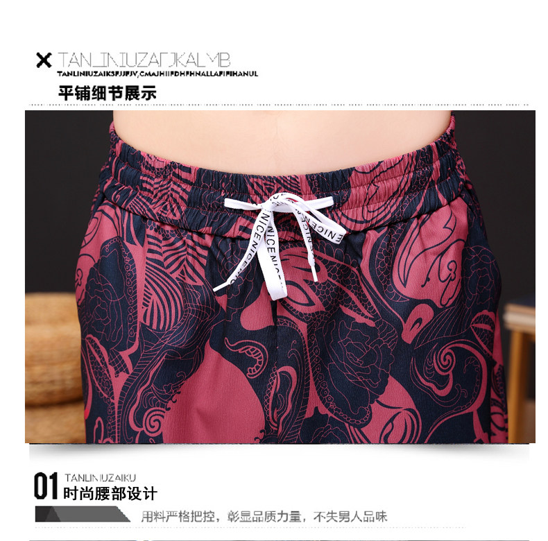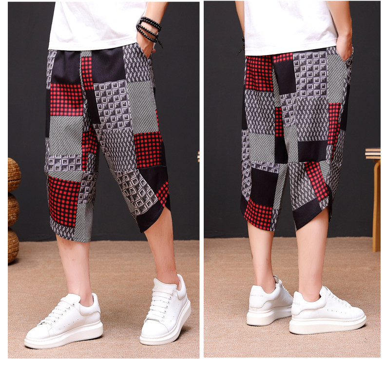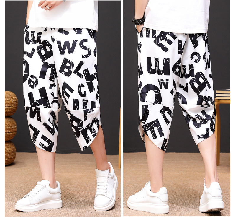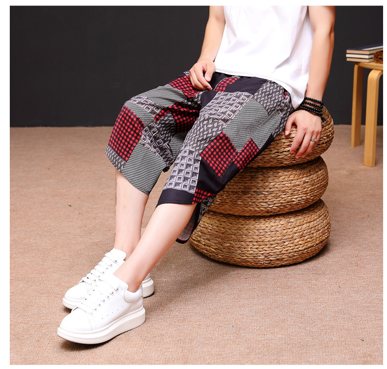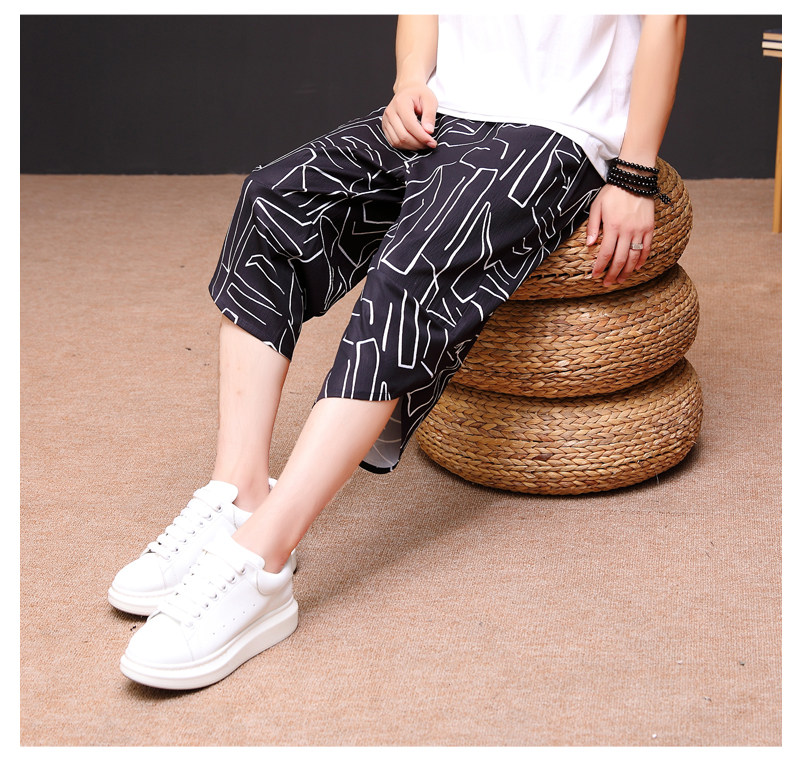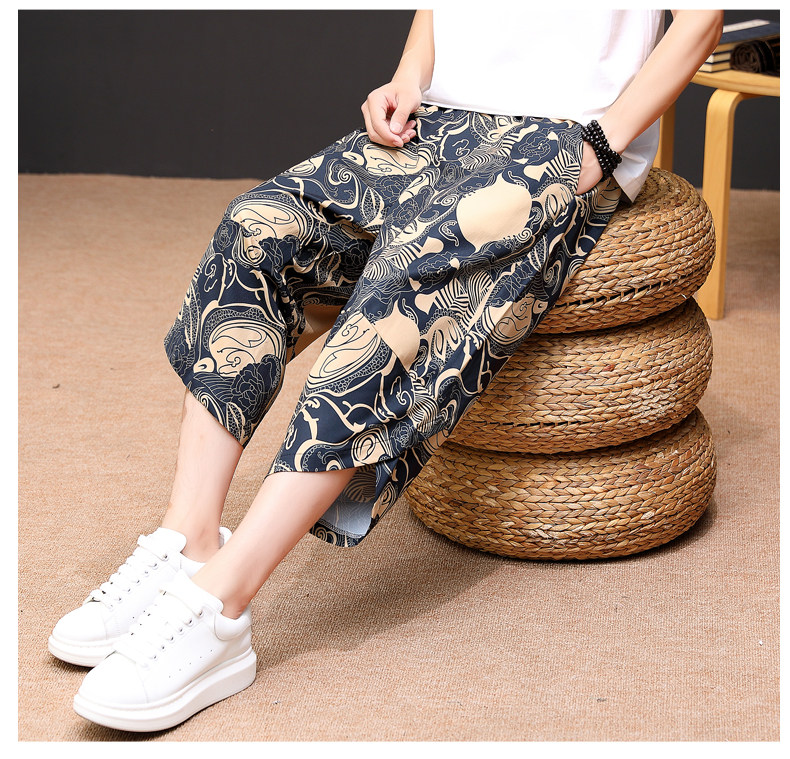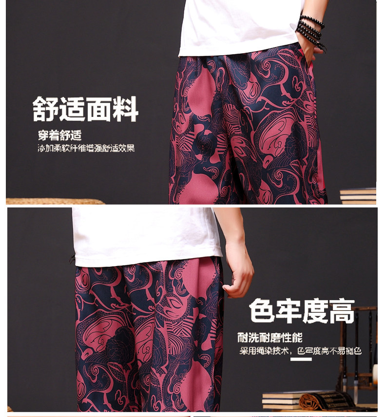 Men's Ice Silk Capri Pants, Summer Thin Casual Loose Shorts, Chinese Style Trendy Sports Mid-Length Pants, Versatile Harem Pants