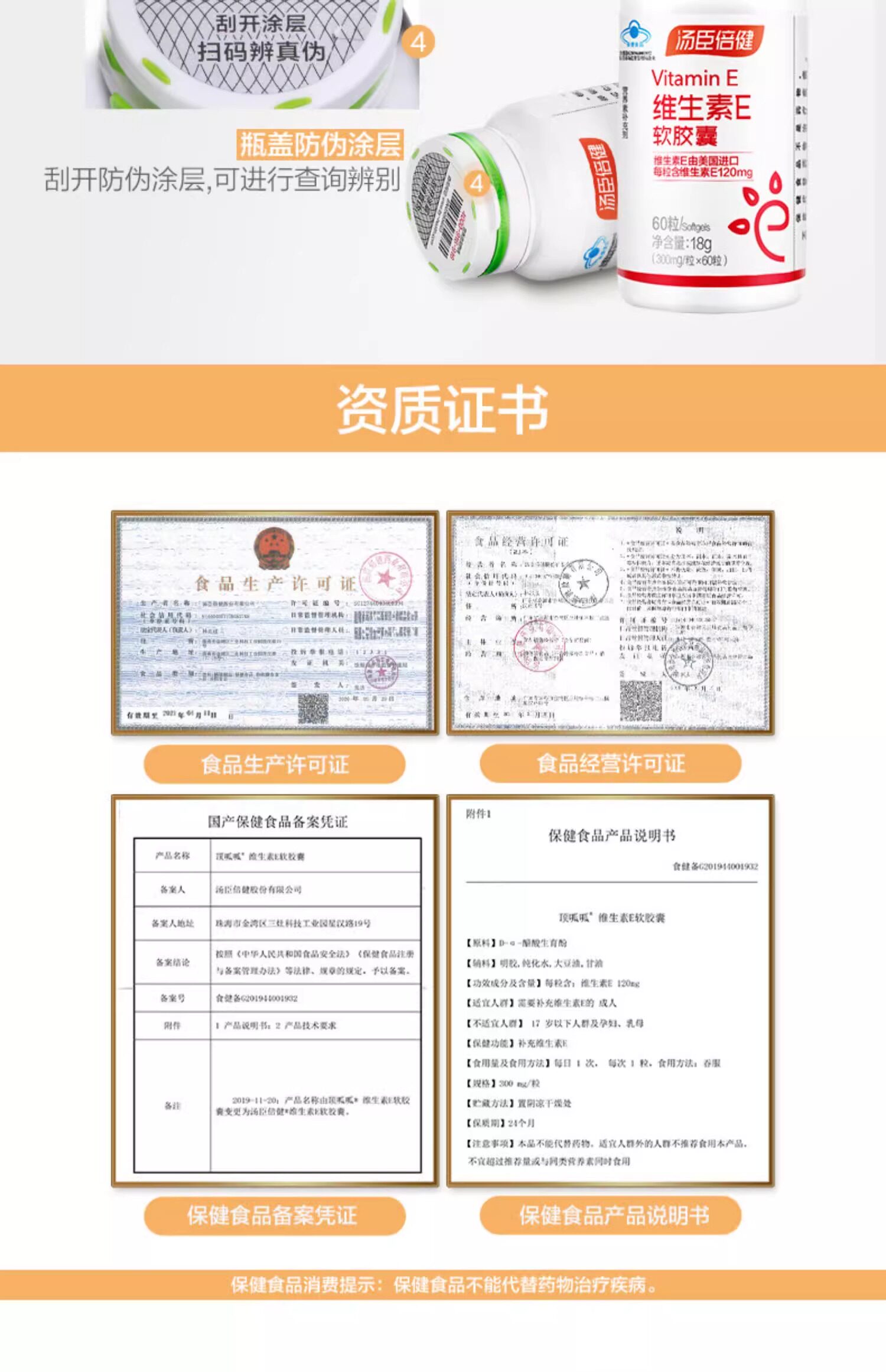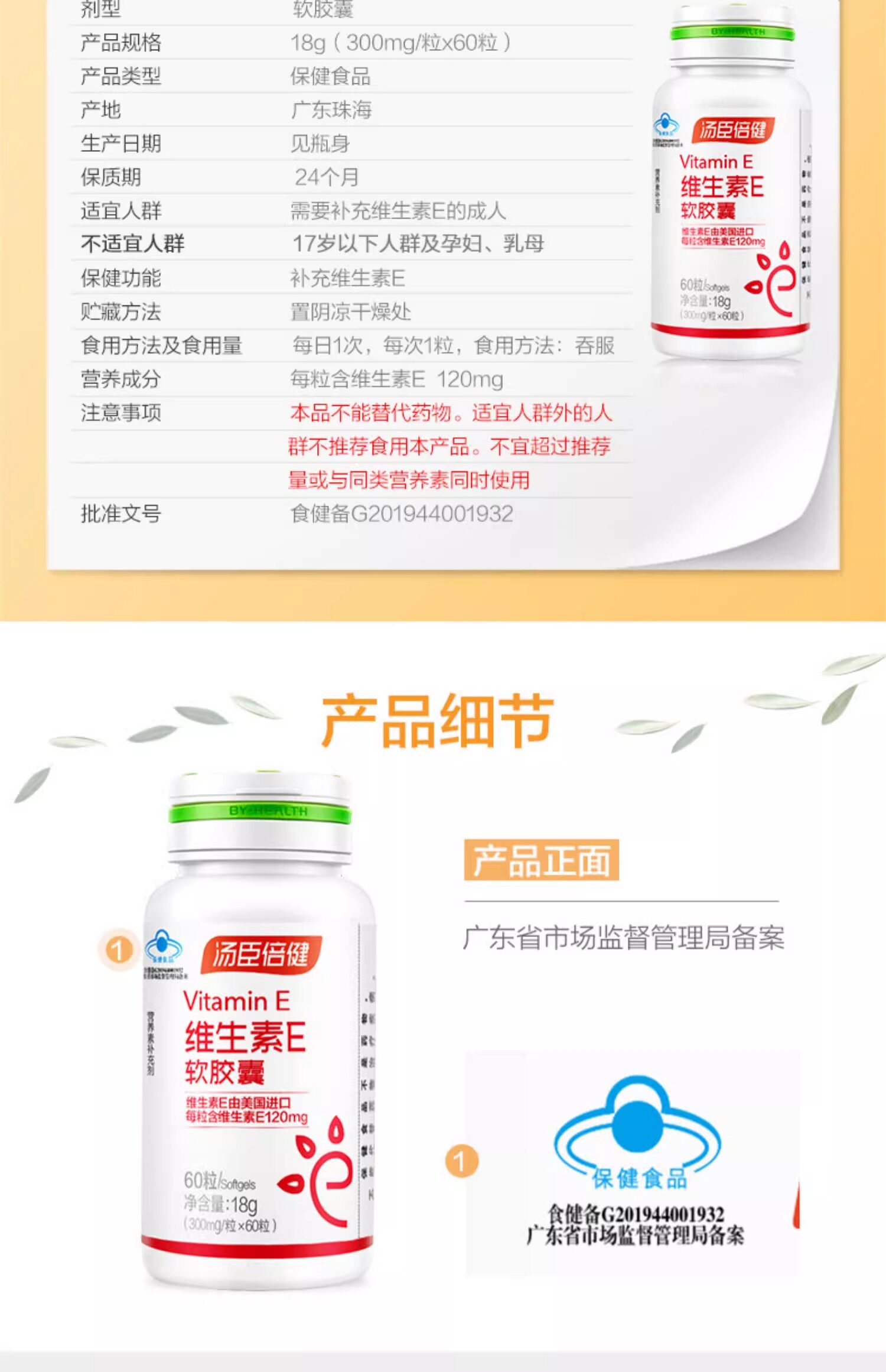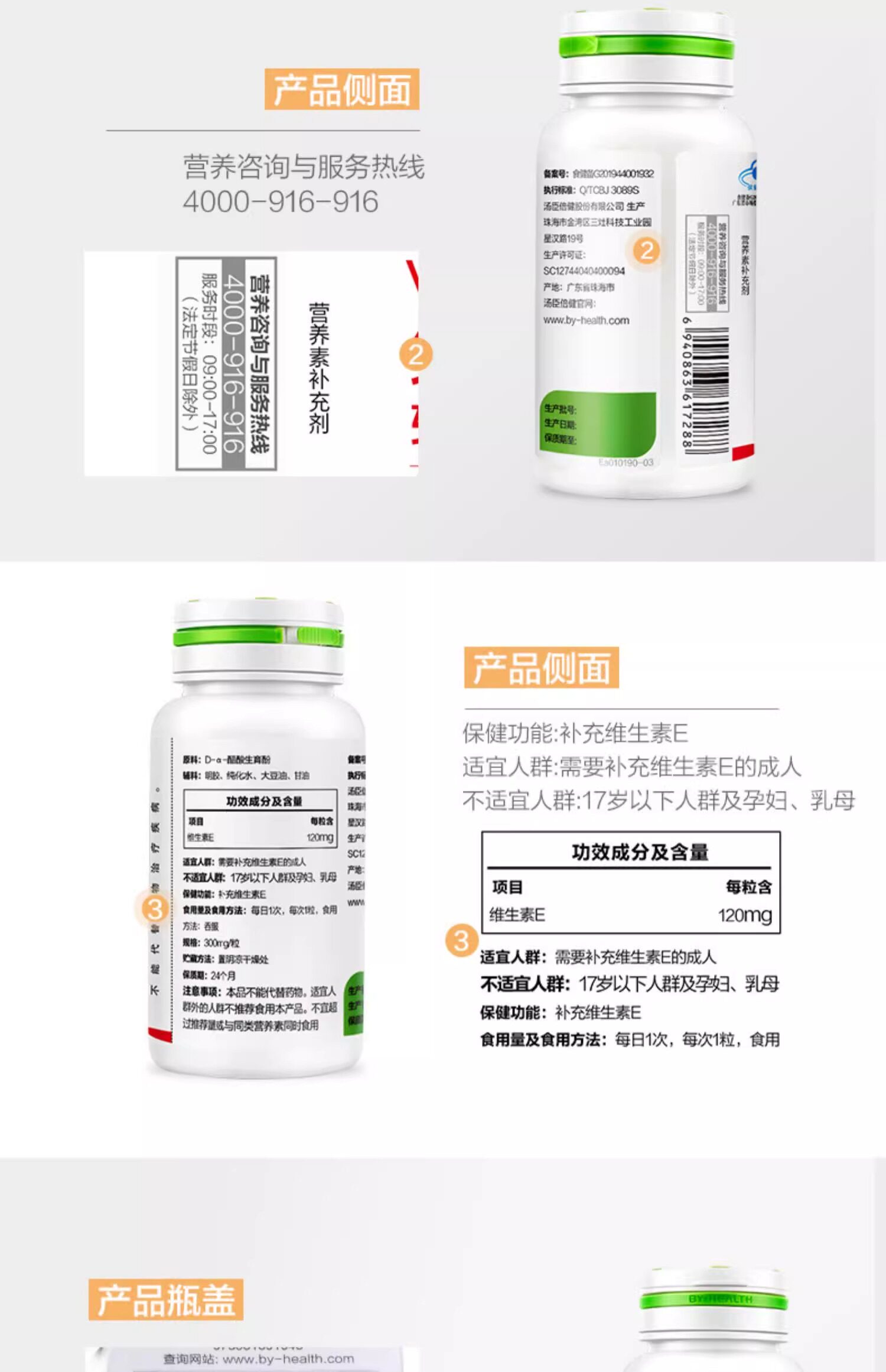 Tomson By-Health Vitamin E Soft Capsule VE Oil High Content Vitamin E Genuine Internal and External Application for Men and Women with Vitamin VC Official