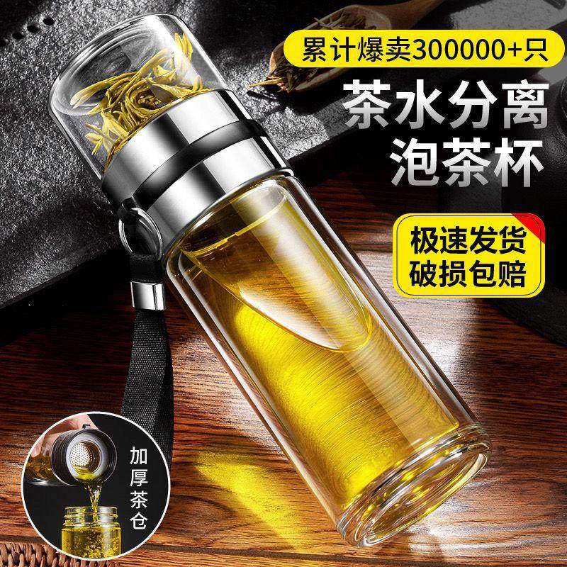 Double-Layer Tea Warehouse Tea and Water Separation Glass Large Capacity Home Office Portable Tea Cup Filter Tea Cup