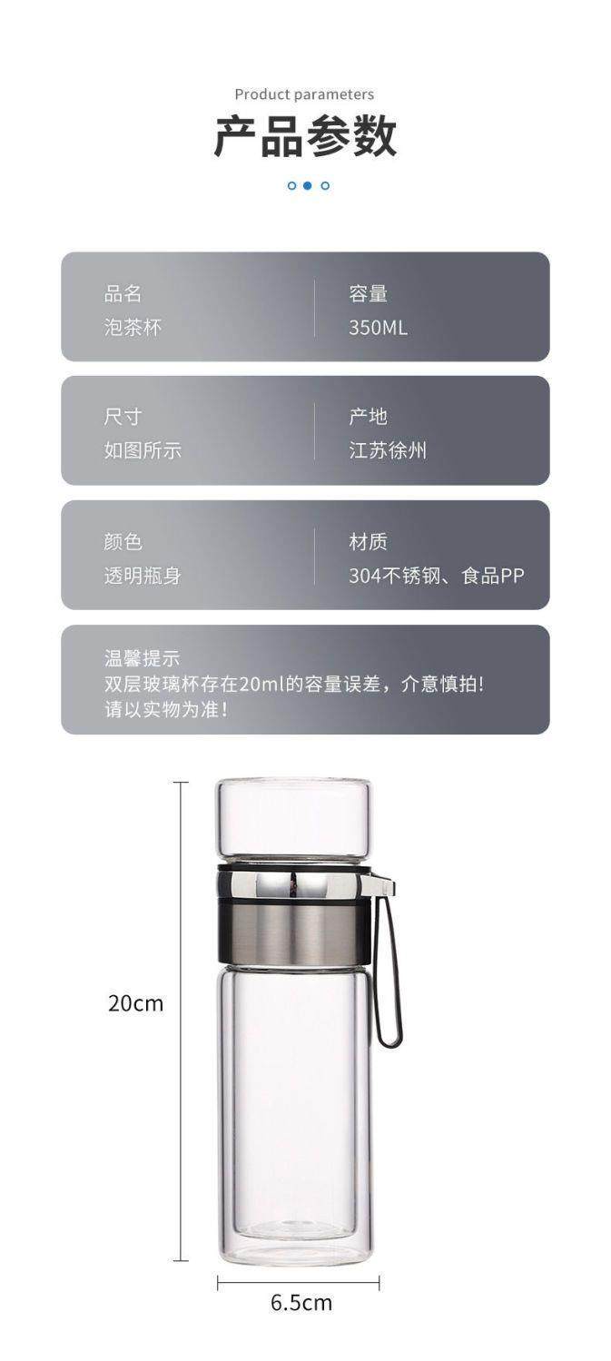 Large-Capacity Glass Cup for Men and Women, Portable Anti-Fall Water Cup, Business Double-Layer Insulated Plastic Glass Tea Cup