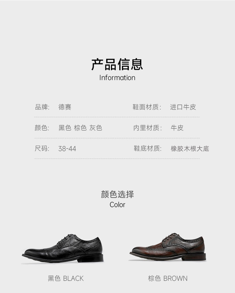 Desai Brogue Carved Leather Shoes Men's Genuine Leather Formal Business Handmade Men's Shoes British Style Increased Casual Derby Shoes
