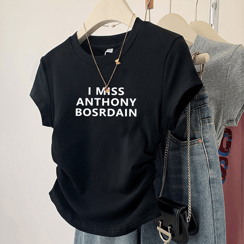 Summer New Style Butterfly Print Top, Short-Sleeved with Pleated Design, Unique Irregular Hem, Slimming T-Shirt for Women ins
