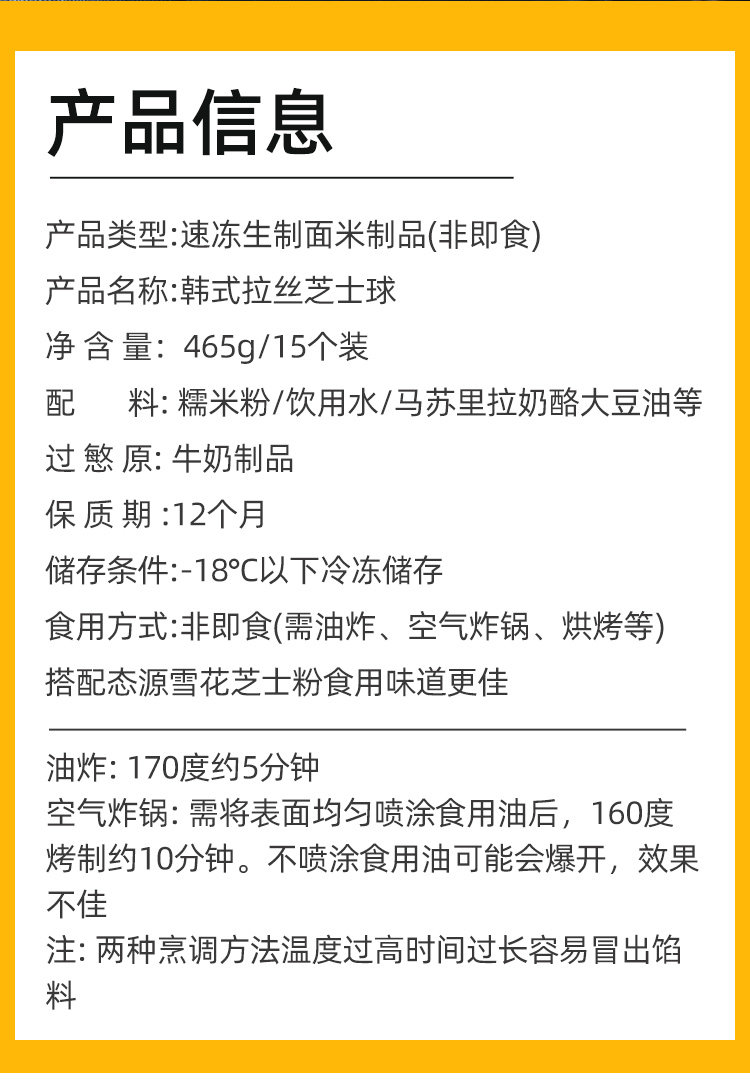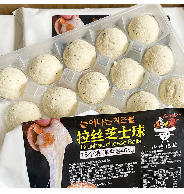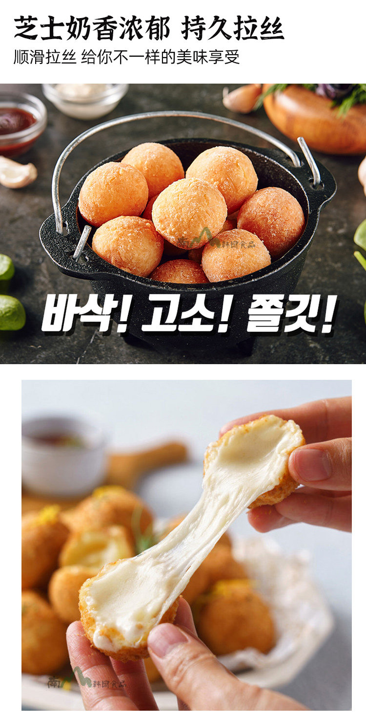 Korean-Style Viral Cheese Balls with Stringy Cheese, Fried Chicken Shop Commercial Use, Semi-Finished Fried Snack, 465g