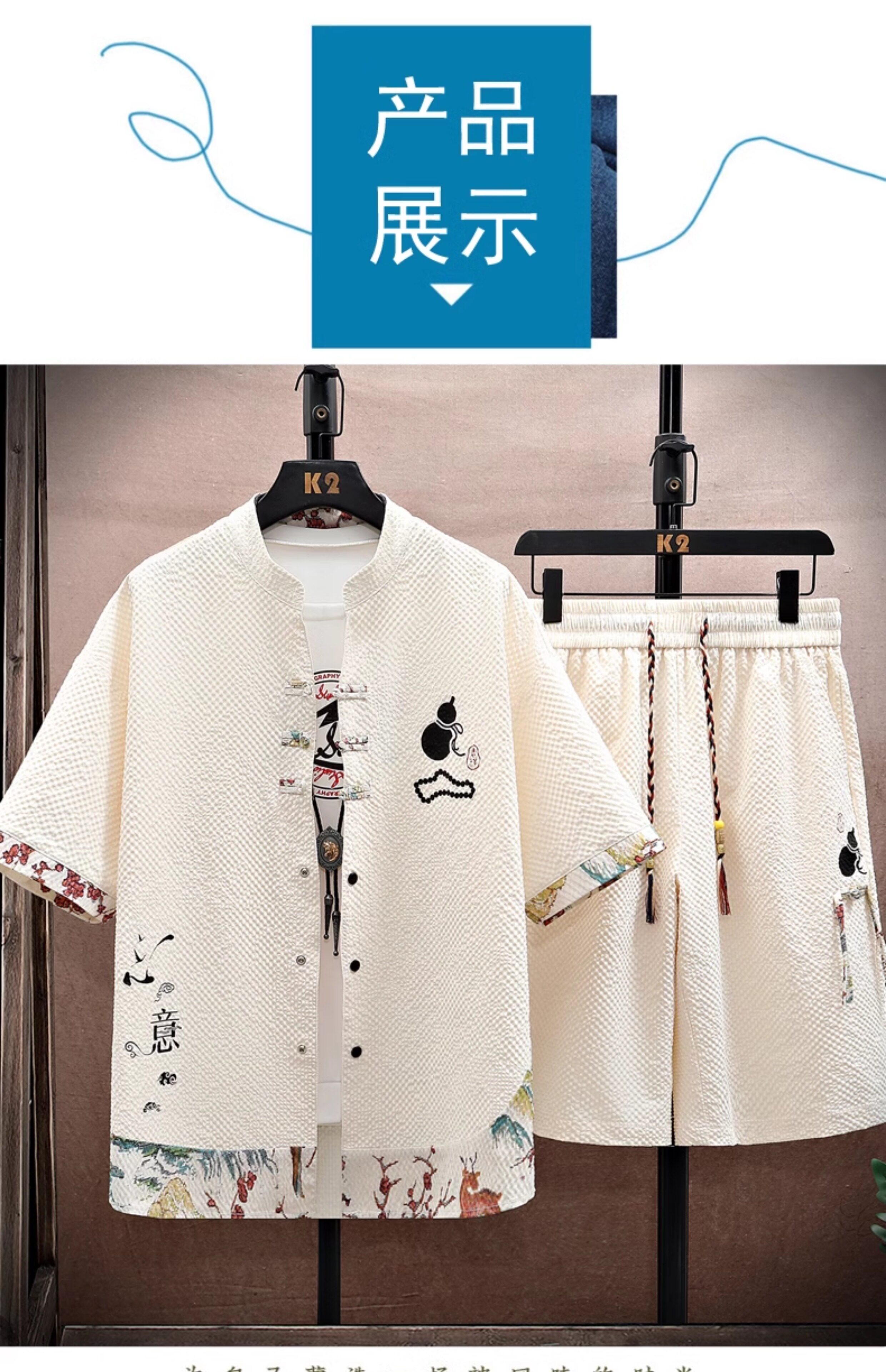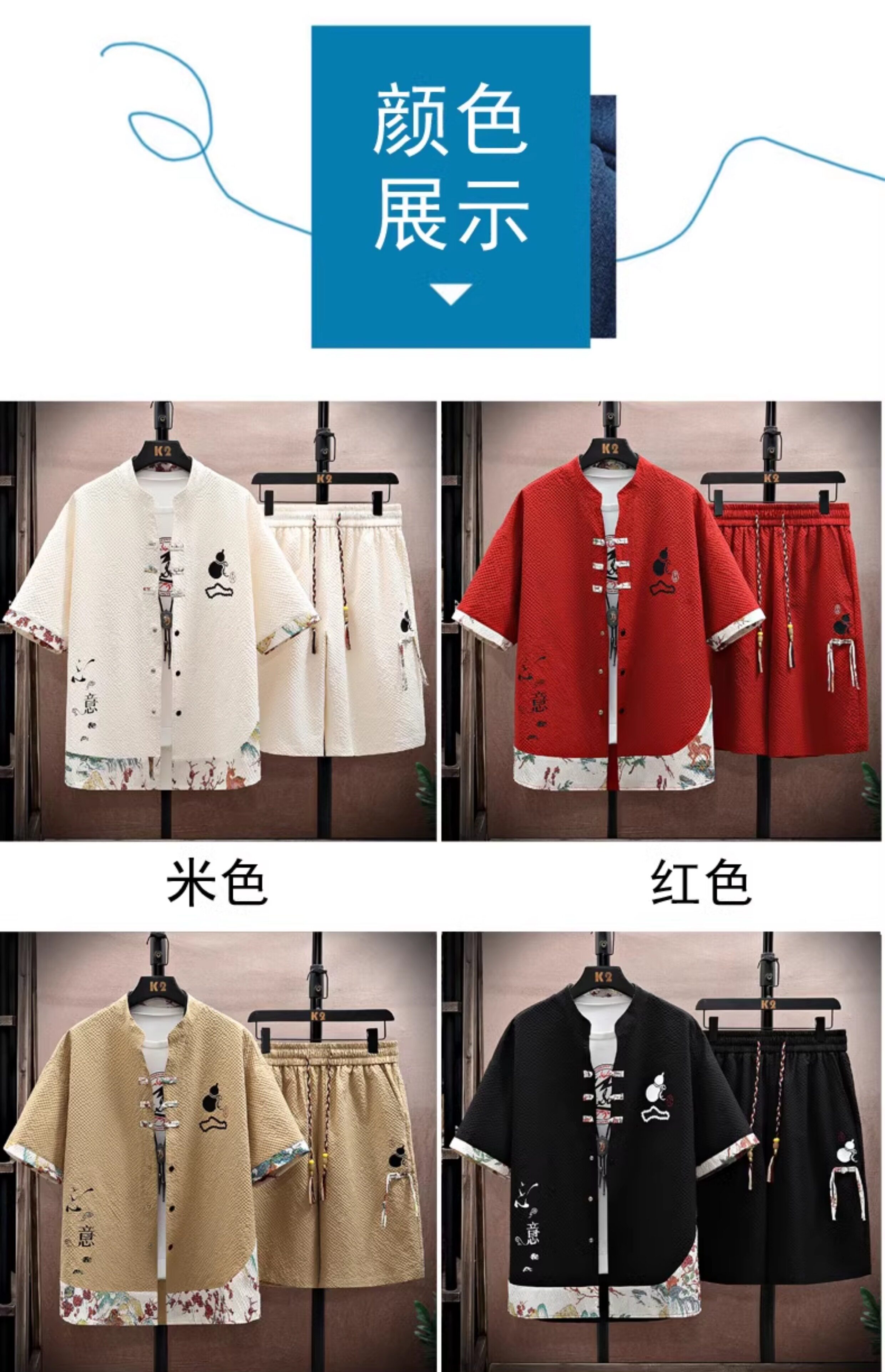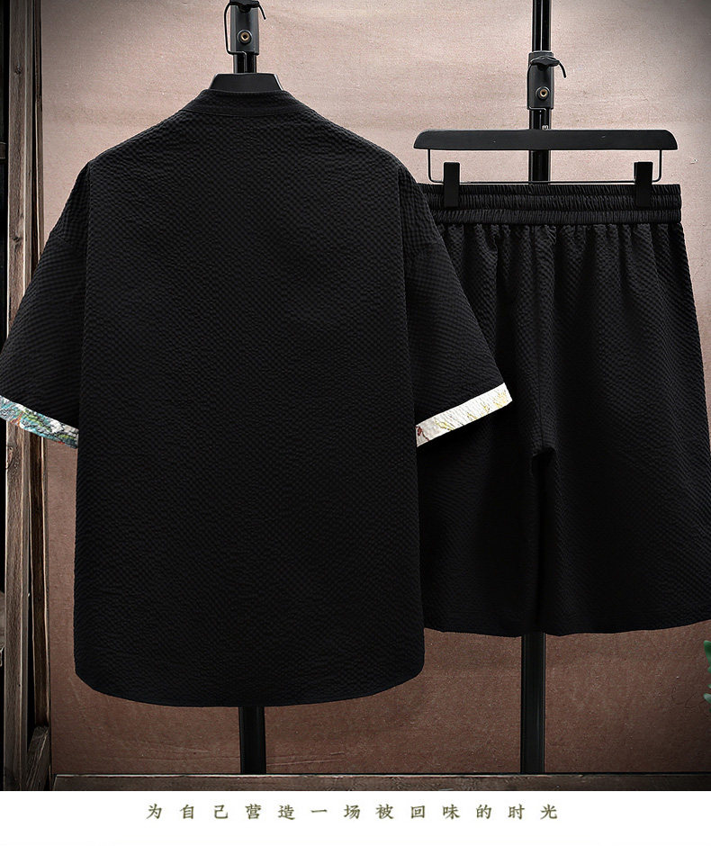 New Chinese style national style suit men's summer quarter-sleeved shirt short-sleeved shorts trendy handsome casual shirt two-piece set