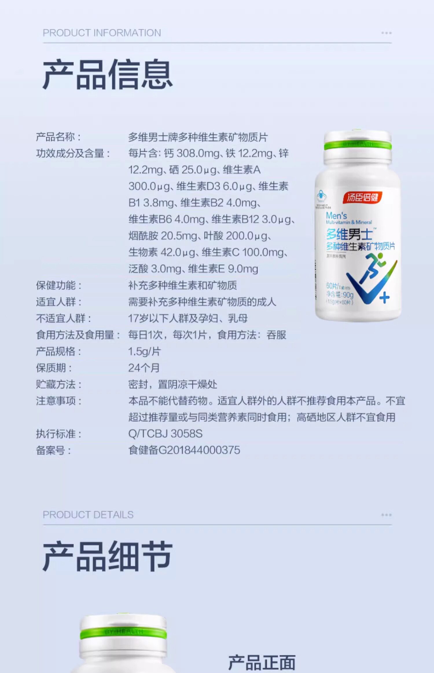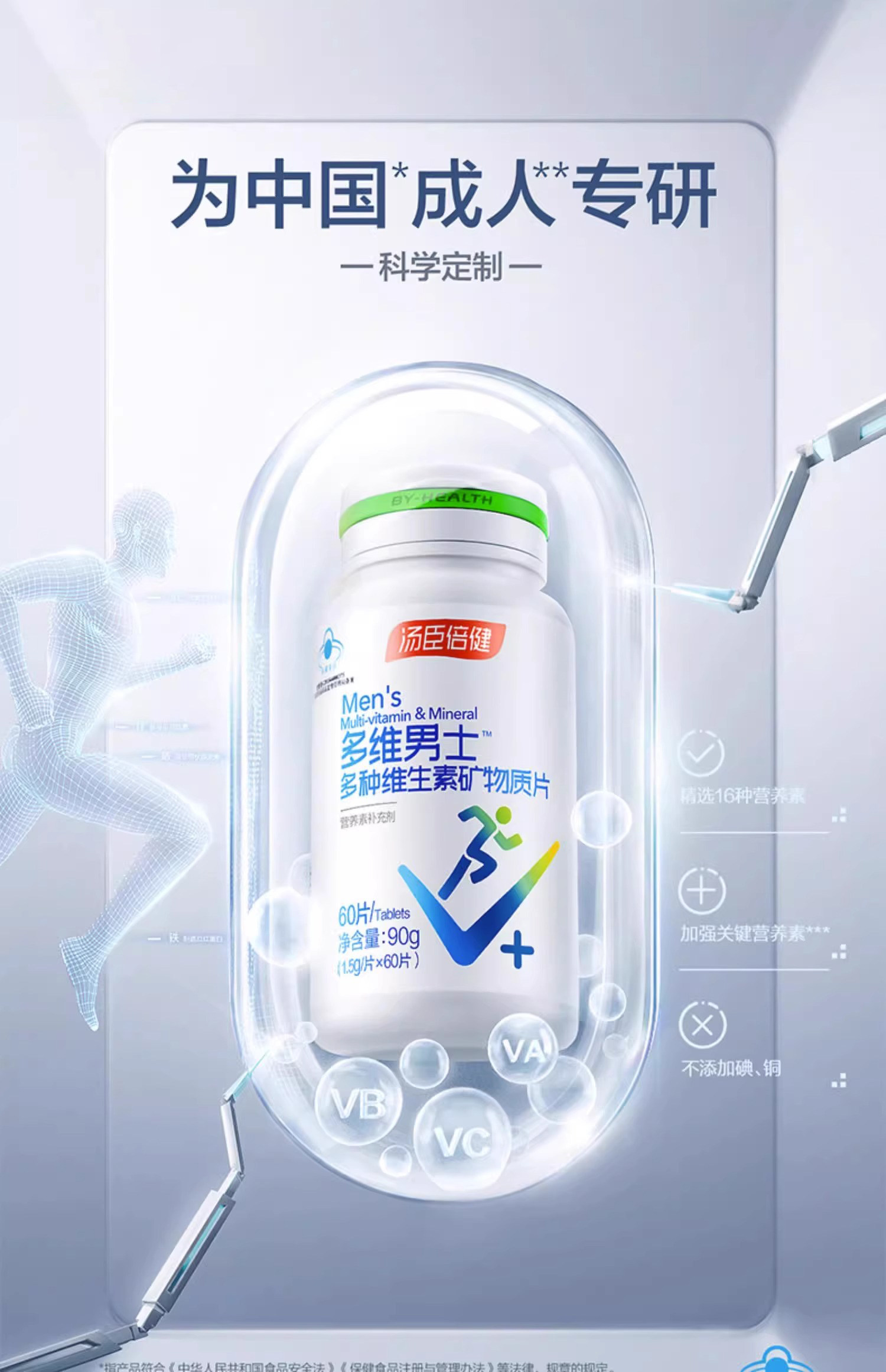 Tomson By-Health Men's Multivitamin Calcium Tablets for Adult Men Vcvb Complex Multivitamin Mineral Zinc and Selenium Tablets