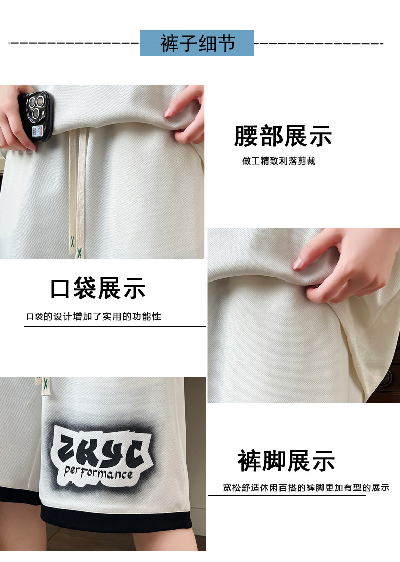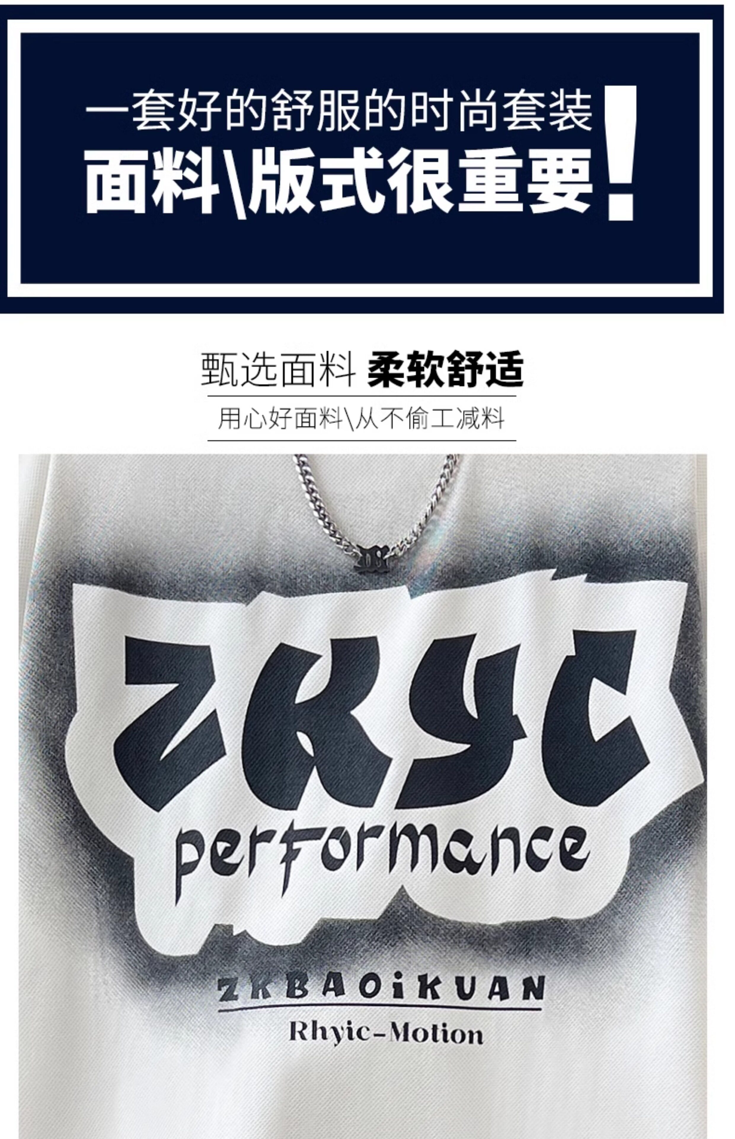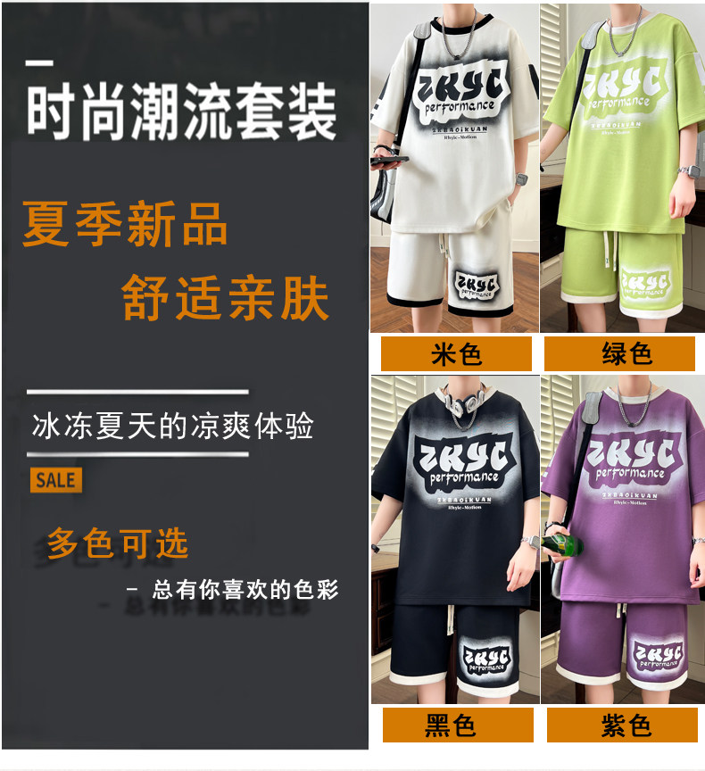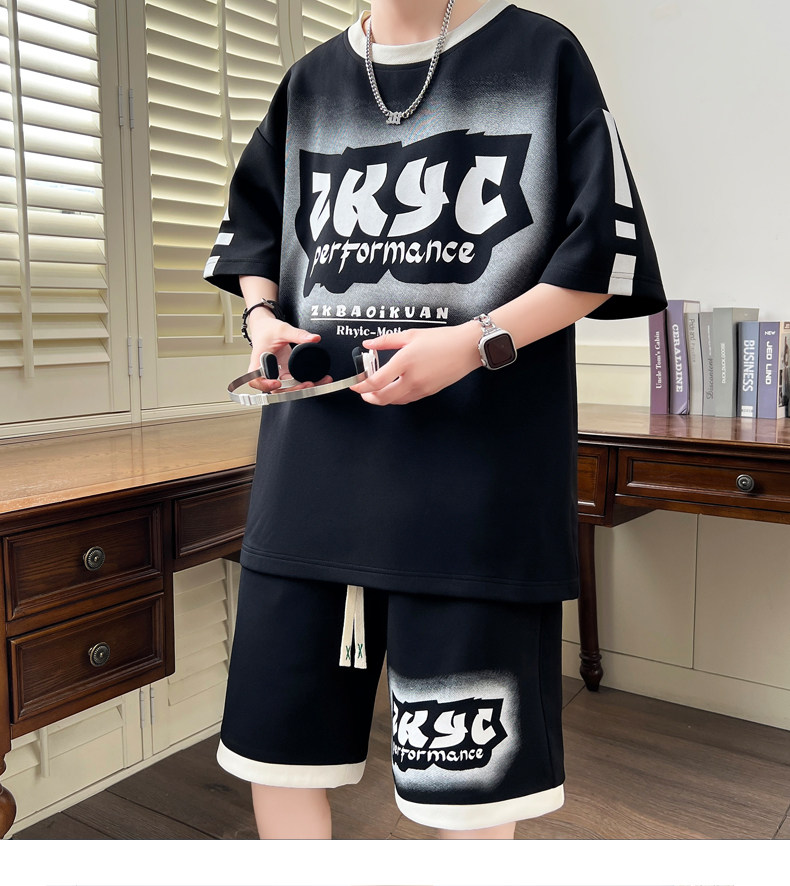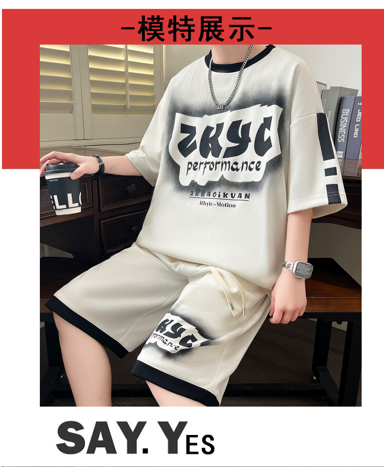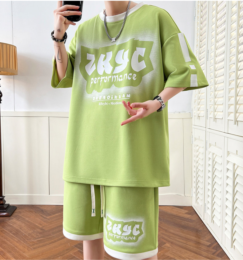 Casual Sports Suit for Men, Summer Five-Quarter Sleeve T-Shirt, Men's Short-Sleeved Youth Set, Stylish Hong Kong Style Clothing T-Shirt