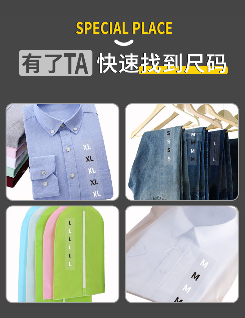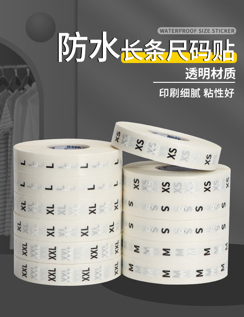 Transparent Size Label Stickers XS m S L XL XXL Pants Clothing Size Non-Adhesive Children's Clothing Size Stickers Clothing Long Strip Foreign Trade Special Size Stickers in Stock Universal English Letters