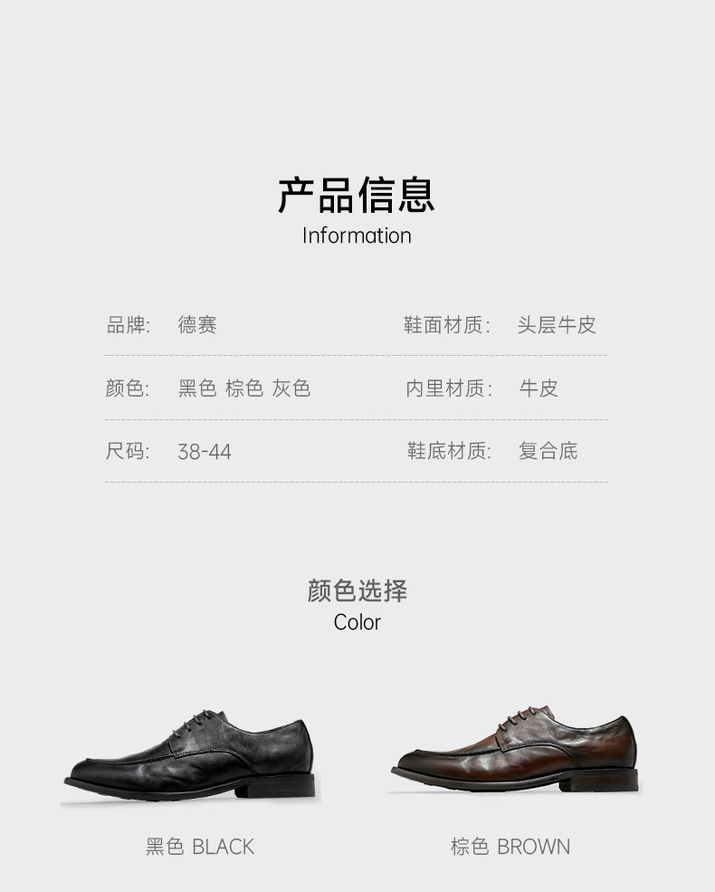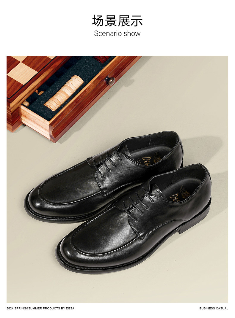 Desai Men's Business Leather Shoes, Soft Leather, Breathable Formal Leather Shoes, Derby Shoes, Soft-Soled Commuting Casual Leather Shoes for Men