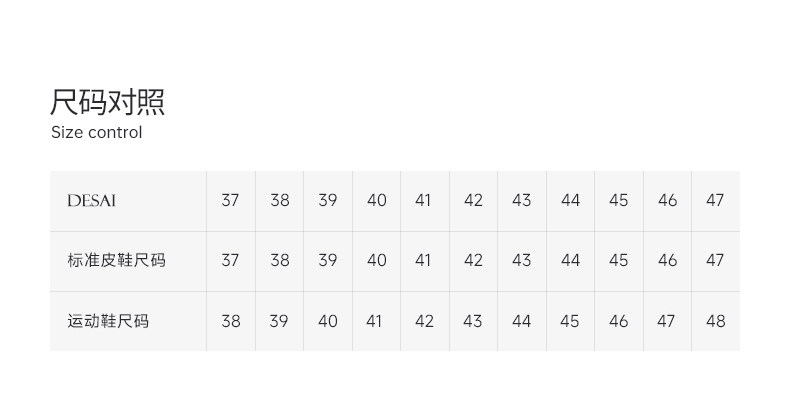 China (cm) 36 - 37 38 - 39 40 - 42 43 - 44 45 - 47