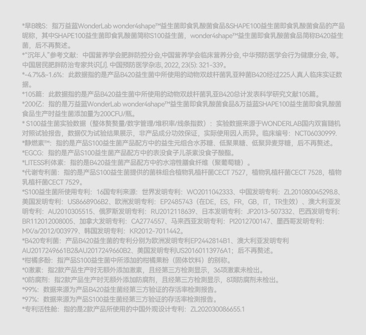 Wonderlab S100 Probiotic Metabolism Prebiotic B420 Slimming Bacteria Weight Management 180 Bottles