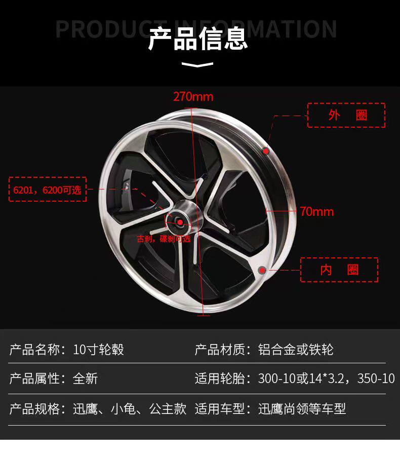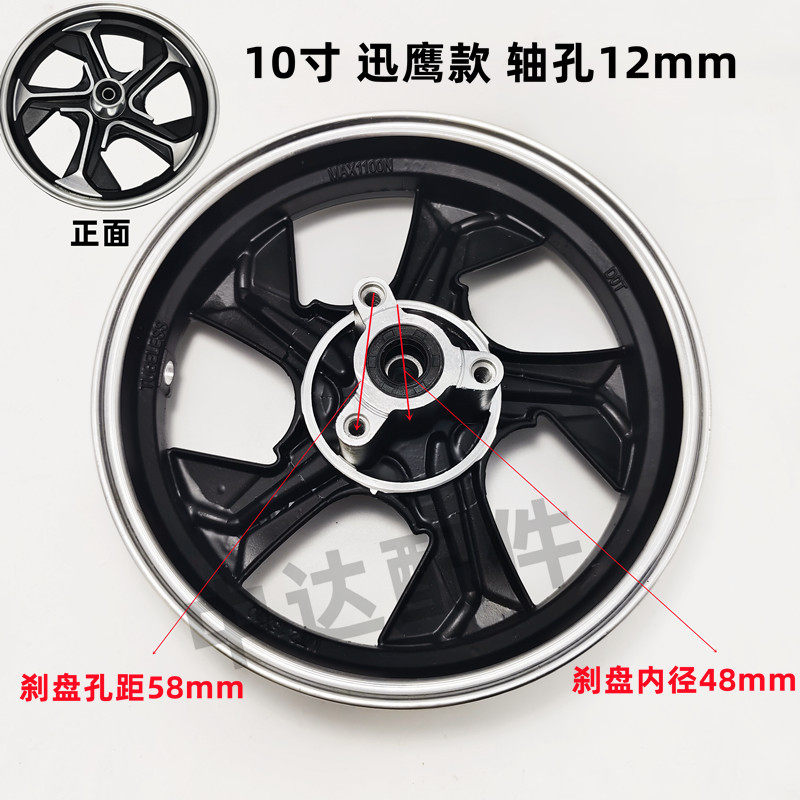 Electric Vehicle Tubeless Tire Hub 10inch Electric Motorcycle Modified Aluminum Alloy Front Wheel 12inch Xunying Little Turtle Disc Brake Steel Rim