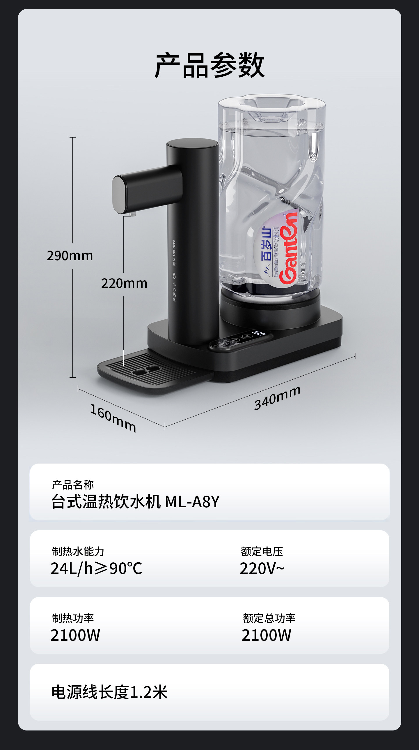 Malng Water Dispenser 2025 New Model Household Desktop Instant Hot Water Dispenser for Bottled Water Small Size 189