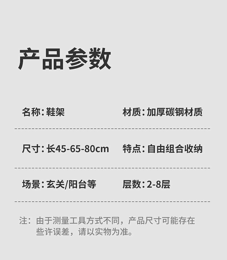 Color Classification Gun Gray 45cm[Second Floor]Can Hold 4 Pairs of Shoes,Gun Gray 65cm[Second Floor]Can Hold 6 Pairs of Shoes,Gun Gray 80cm[Second Floor]Can Hold 8 Pairs of Shoes,Gun Gray 45cm[Three Floors]6 Pairs of Shoes on Each Layer,Gun Gray 65cm[Three Floors]9 Pairs of Shoes on Each Layer,Gun Gray 80cm[Three Floors]12 Pairs of Shoes on Each Layer,Gun Gray 45cm[Four Floors]Can Hold 8 Pairs of Shoes,Gun Gray 65cm[Four Floors]Can Hold 12 Pairs of Shoes,Gun Gray 80cm[Four Floors]Can Hold 16 Pairs of Shoes,Gun Gray 45cm[Five Floors]Can Hold 10 Pairs of Shoes,Gun Gray 65cm[Five Floors]Can Hold 15 Pairs of Shoes,Gun Gray 80cm[Five Floors]Can Hold 20 Pairs of Shoes,Gun Gray 45cm[Six Floors]Can Hold 12 Pairs of Shoes,Gun Gray 65cm[Six Floors]Can Hold 18 Pairs of Shoes,Gun Gray 80cm[Six Floors]Can Hold 24 Pairs of Shoes,Gun Gray 45cm[Seven Floors]Can Hold 14 Pairs of Shoes,Gun Gray 65cm[Seven Floors]Can Hold 21 Pairs of Shoes,Gun Gray 80cm[Seven Floors]Can Hold 28 Pairs of Shoes,Gun Gray 45cm[Eight Floors]Can Hold 16 Pairs of Shoes,Gun Gray 65cm[Eight Floors]Can Hold 24 Pairs of Shoes,Gun Gray 80cm[Eight Floors]Can Hold 32 Pairs of Shoes