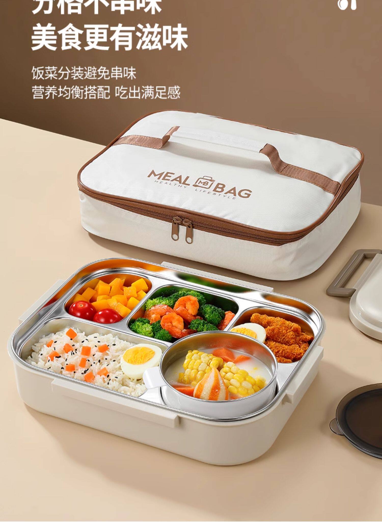 German Imported Large Five-Compartment Lunch Box with Lid and Soup Bowl, Work Lunch Box, Insulated 304 Stainless Steel Plate, Large Capacity