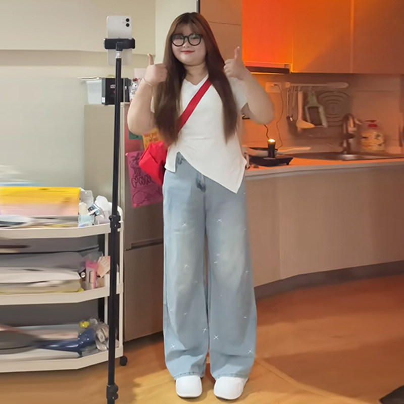 Plus-Size Embroidered Wide-Leg Jeans for Women, Summer Versatile, Loose Fit, Slimming, Body-Covering Straight-Leg Pants, High-Waisted Trousers