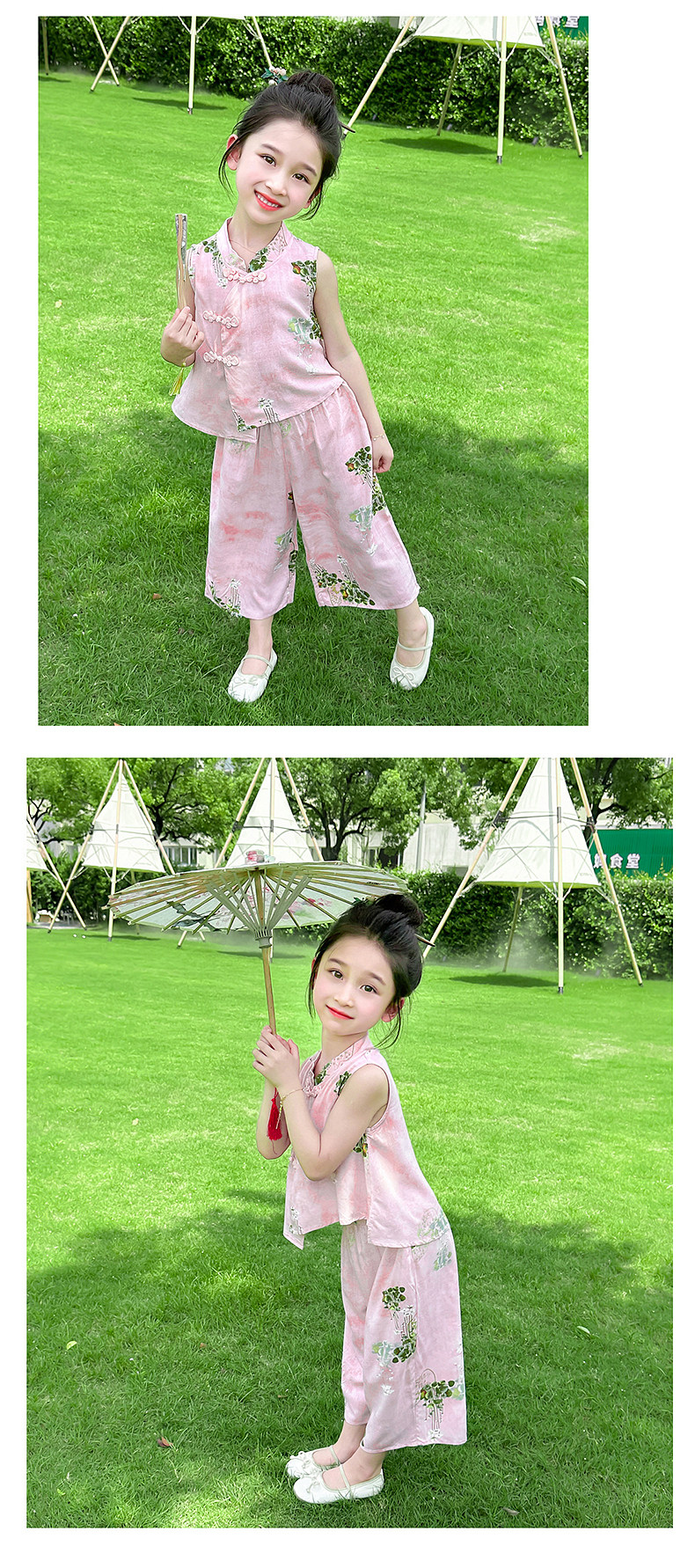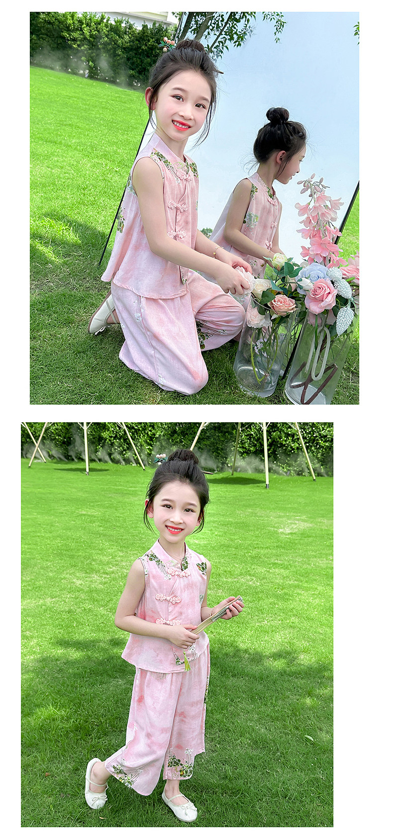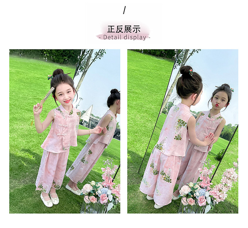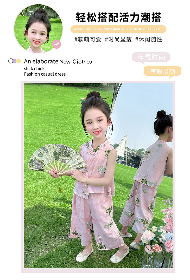 Girls' Summer Sleeveless Outfit 2025 New Stylish and Fashionable Thin Vest Set for Children, New Chinese-Style Two-Piece Set for Babies