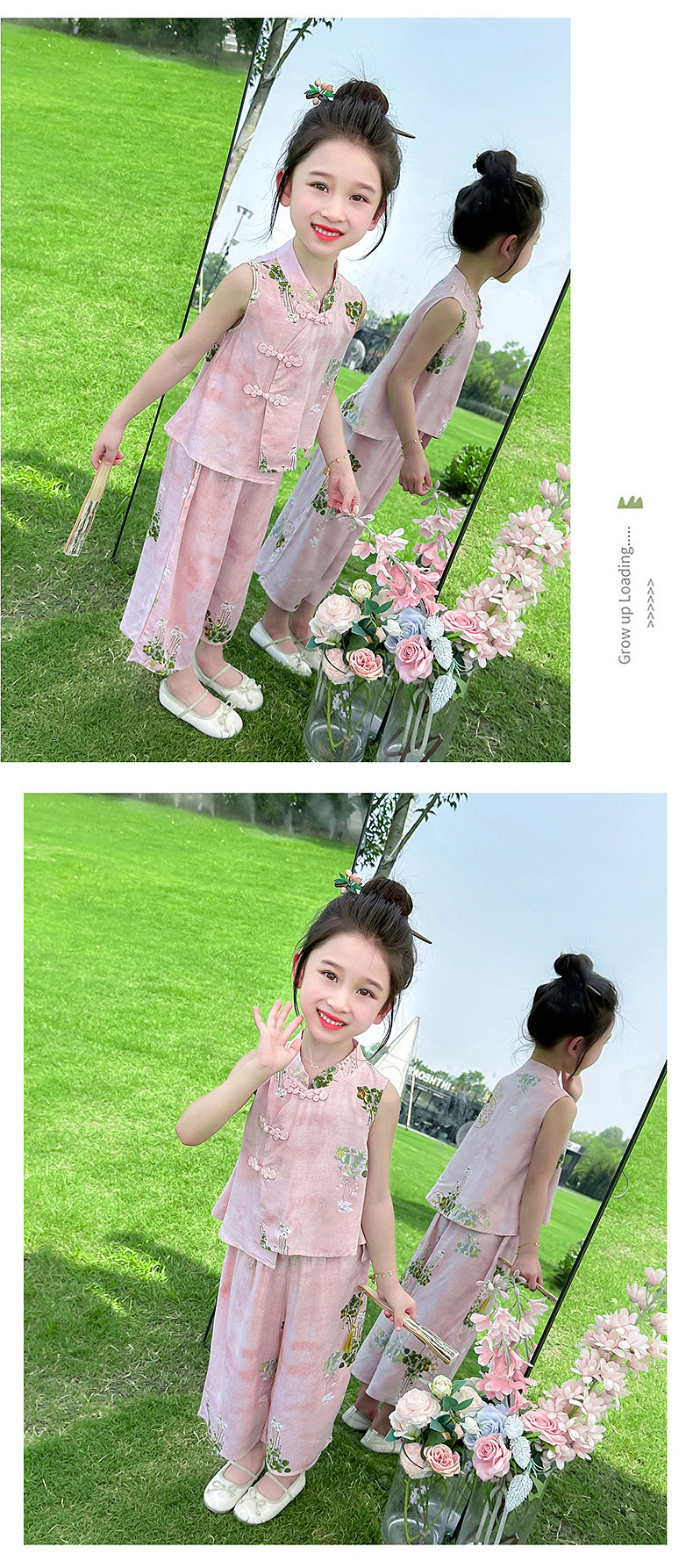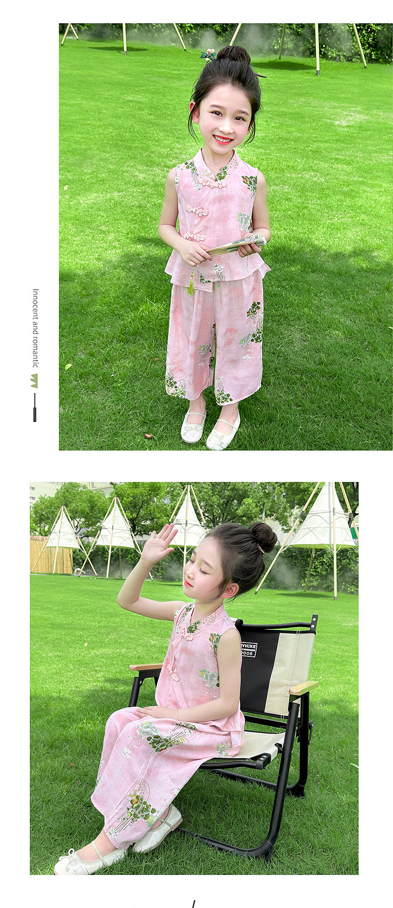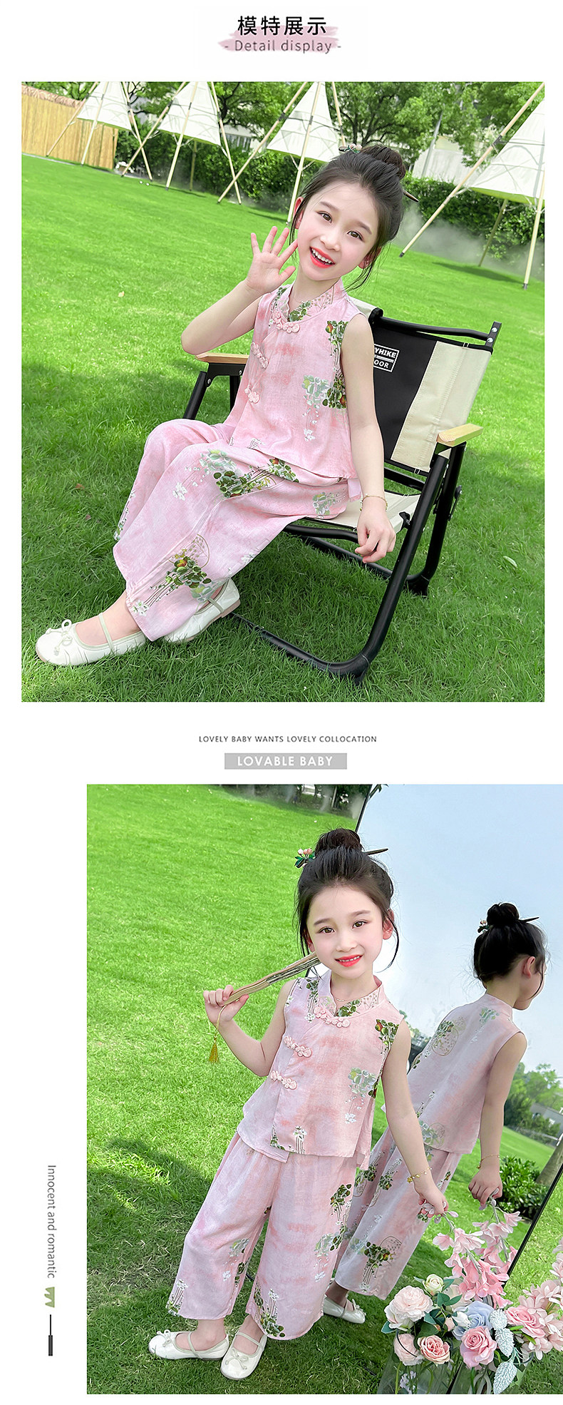 Girls' Summer Sleeveless Outfit 2025 New Stylish and Fashionable Thin Vest Set for Children, New Chinese-Style Two-Piece Set for Babies