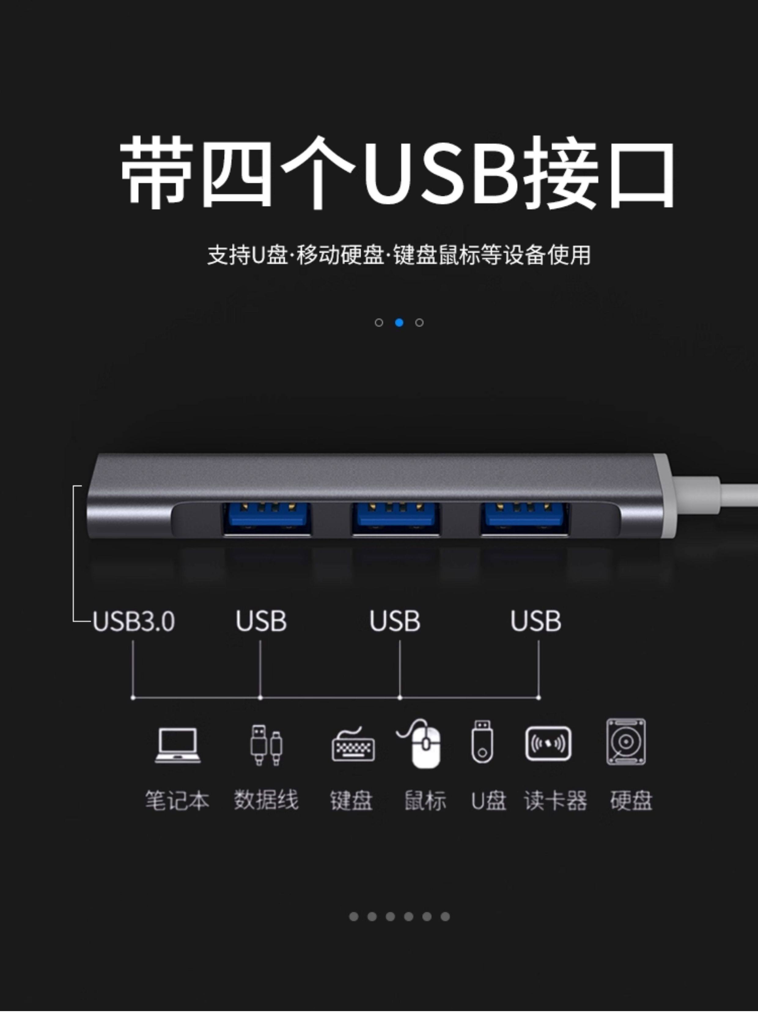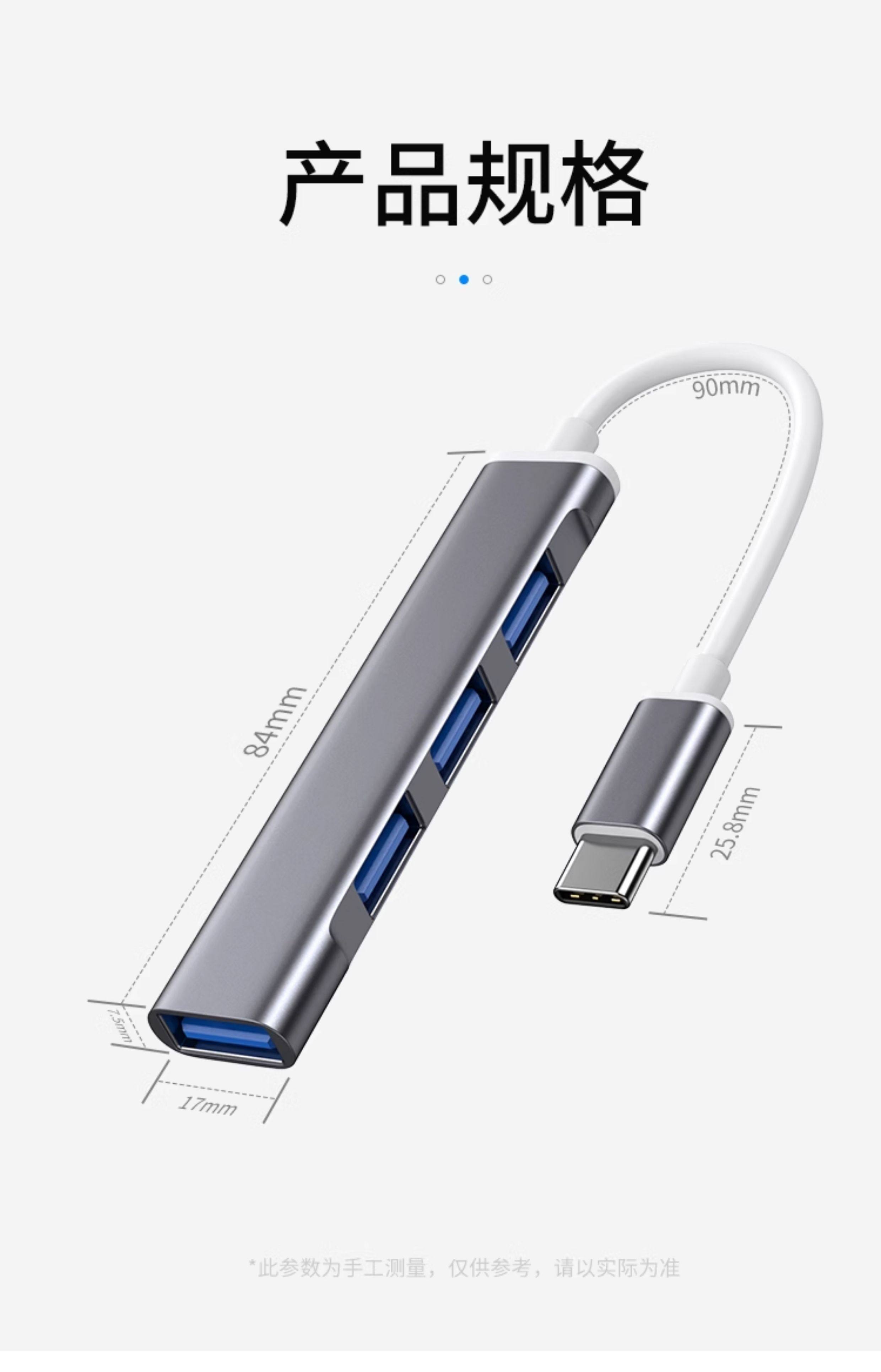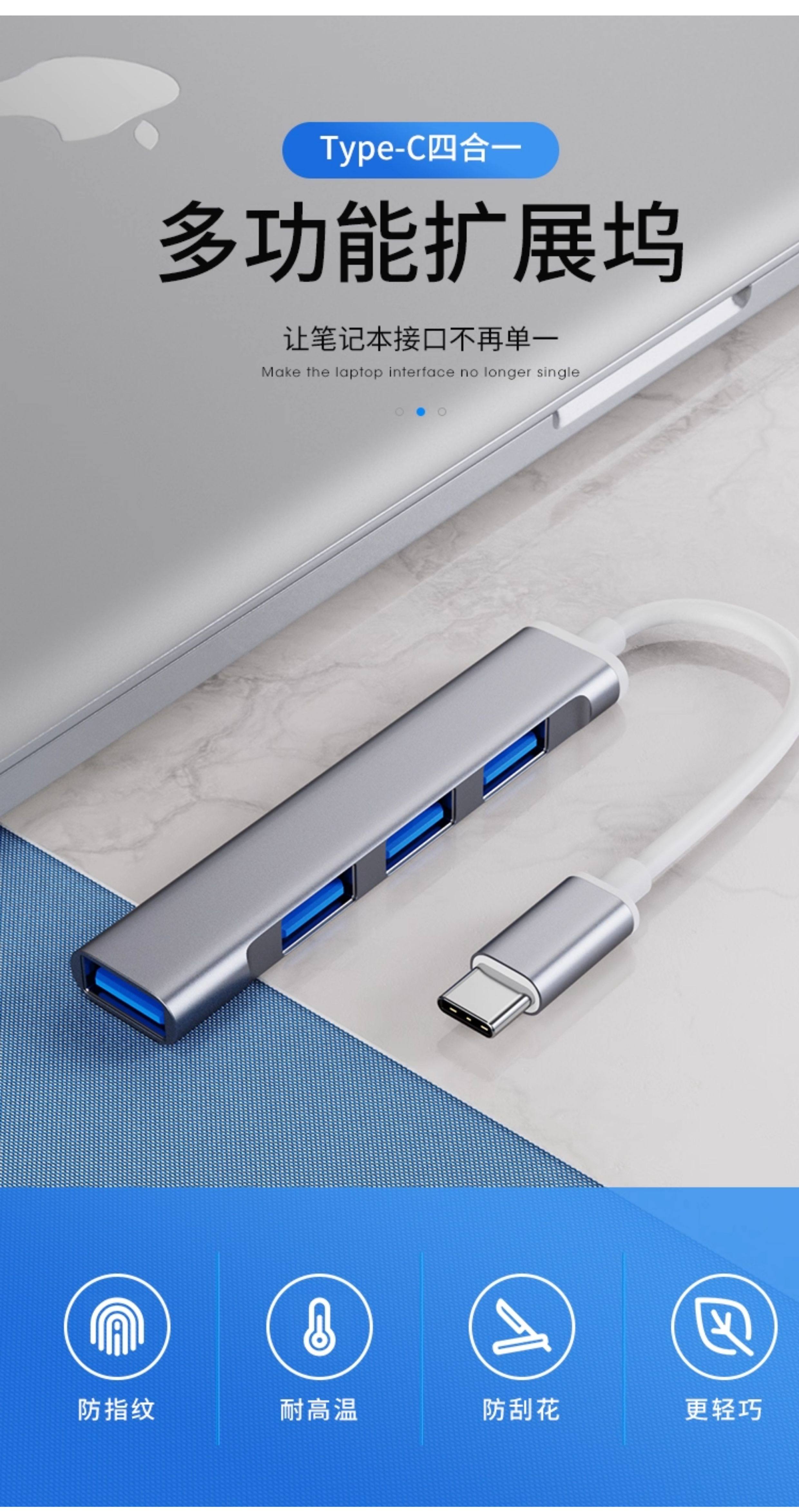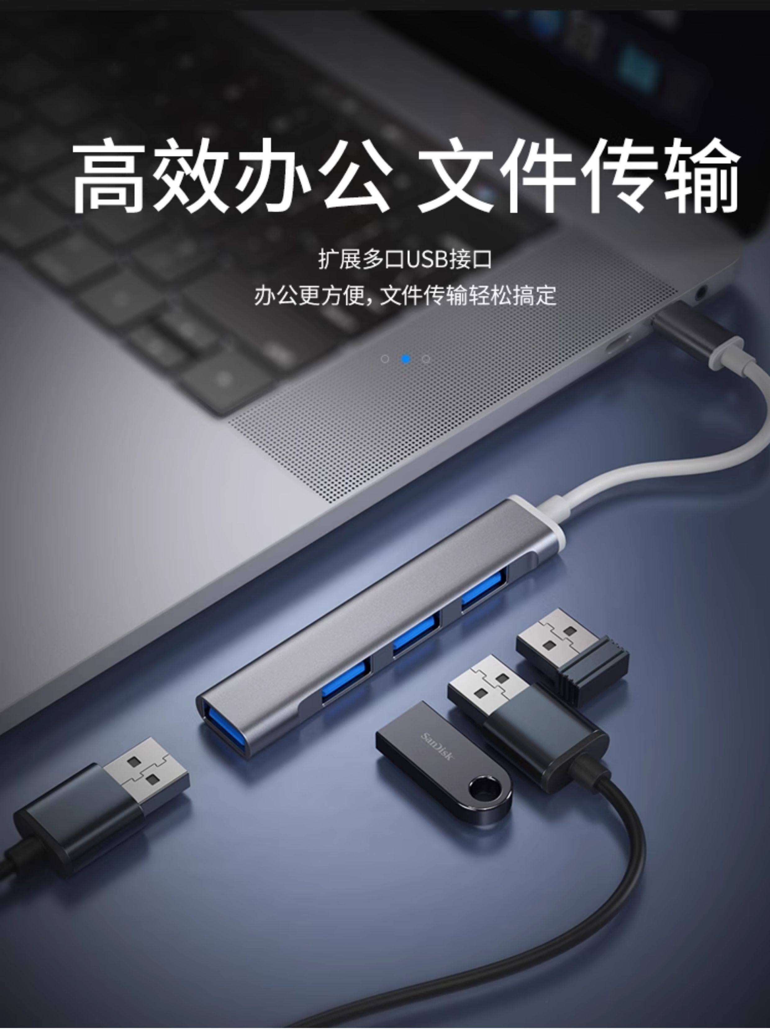 USB Hub Splitter Type-C Multi-Port USB Drive Expansion Dock iPad Suitable for Apple Laptops Extension Cable Mobile Phone One-To-Four USB Converter Adapter Plug Car Use