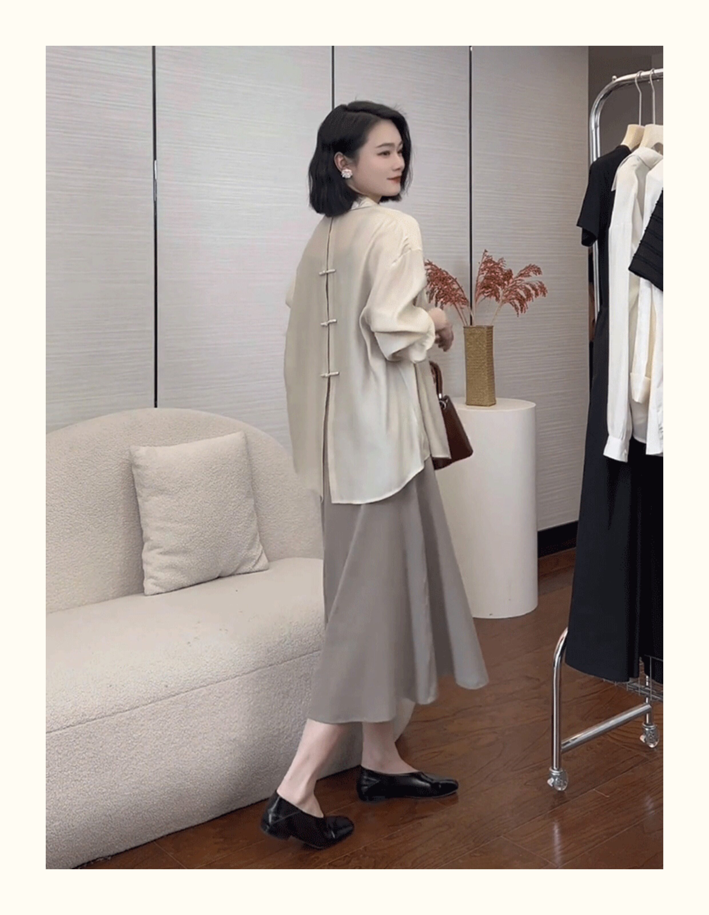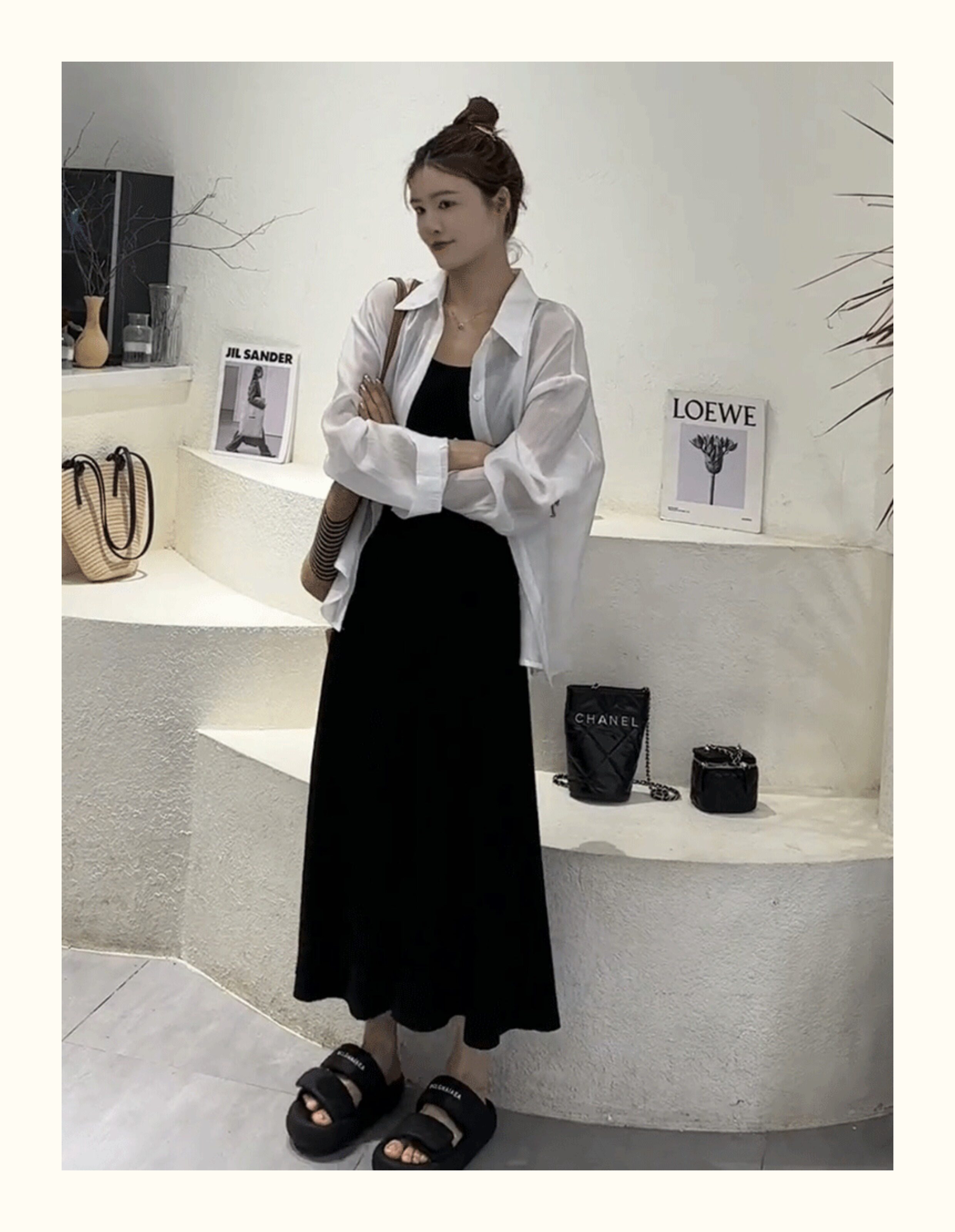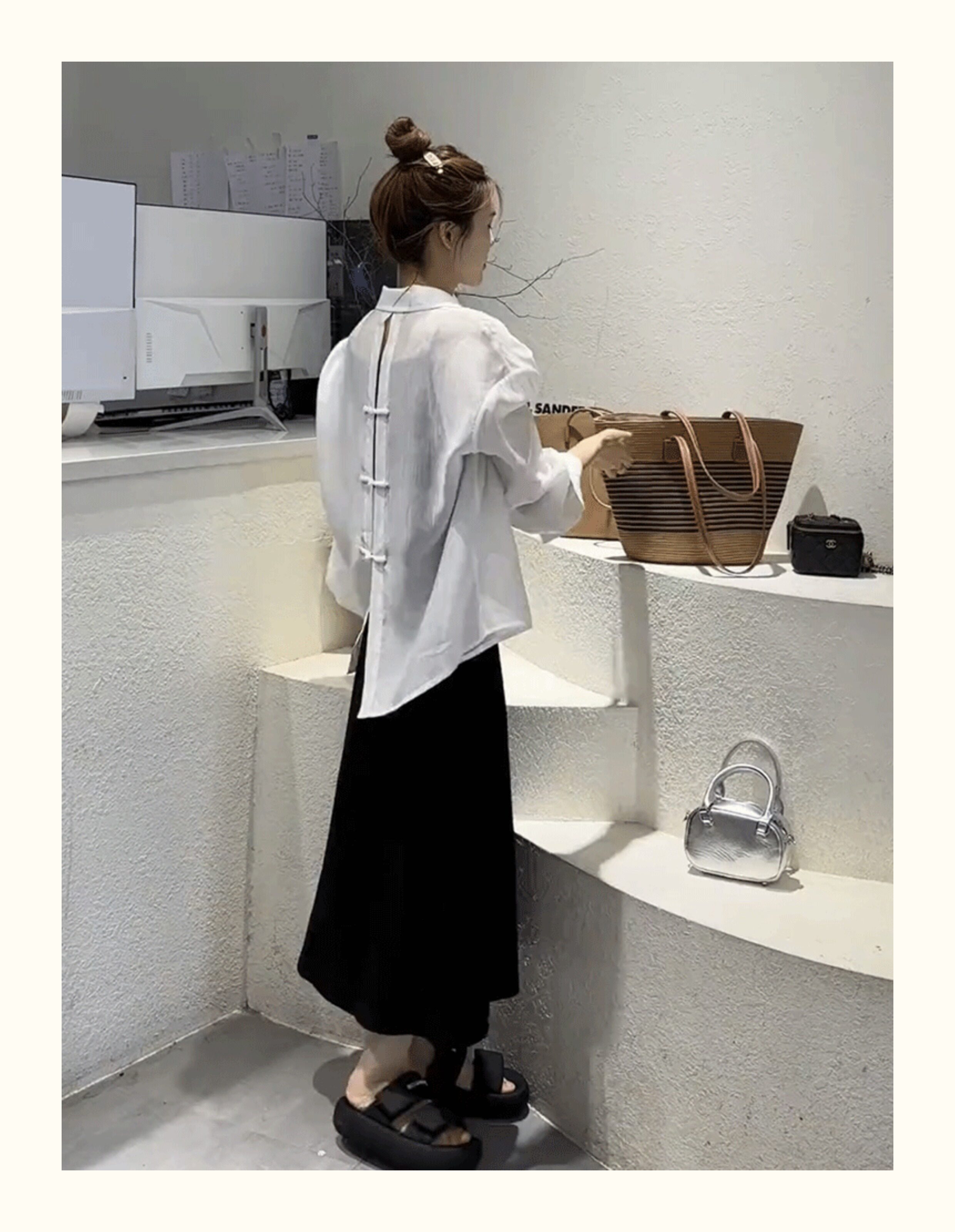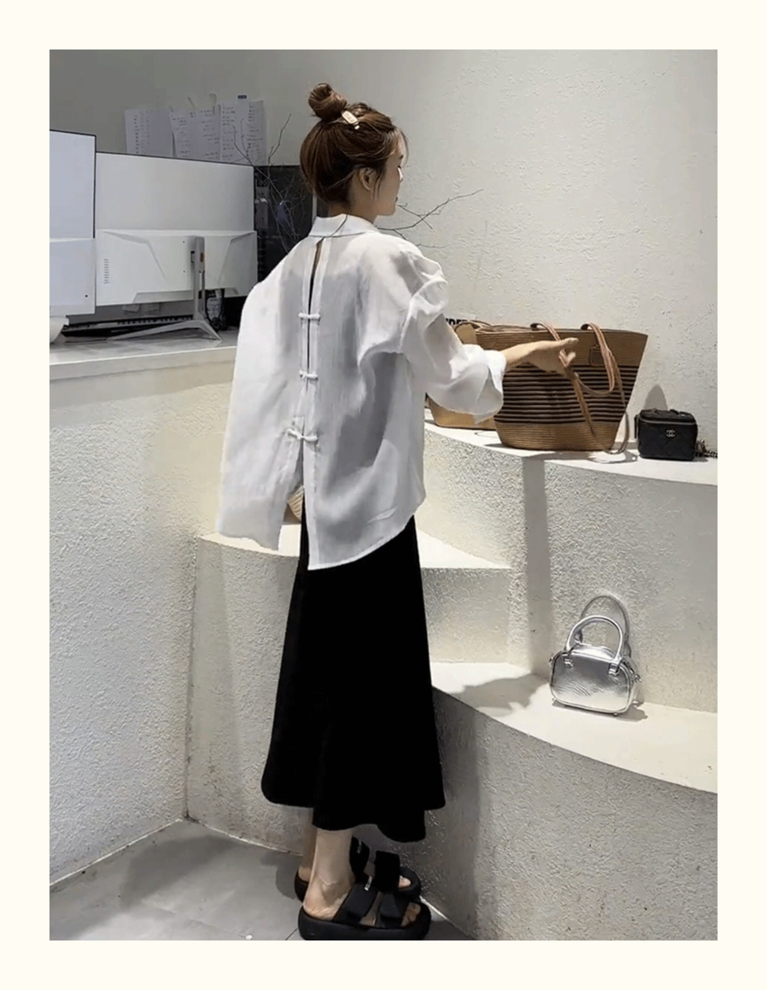 White long-sleeved shirt suit suspender dress for women 2025 summer new style design back slit sun protection shirt