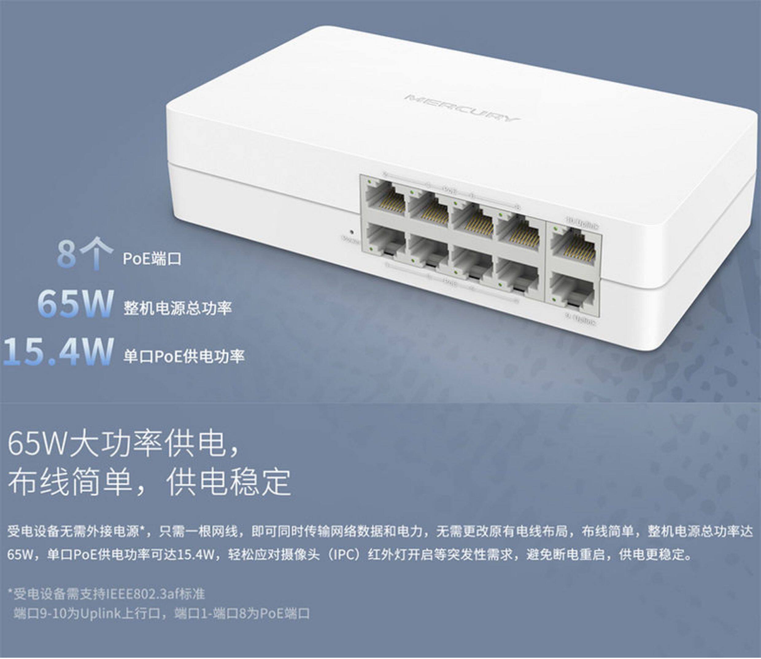 Mercury Msl10Cp-M Gigabit Uplink 10-Port Poe Switch 100m 8-Port Monitoring Panel Ap Power Supply Module