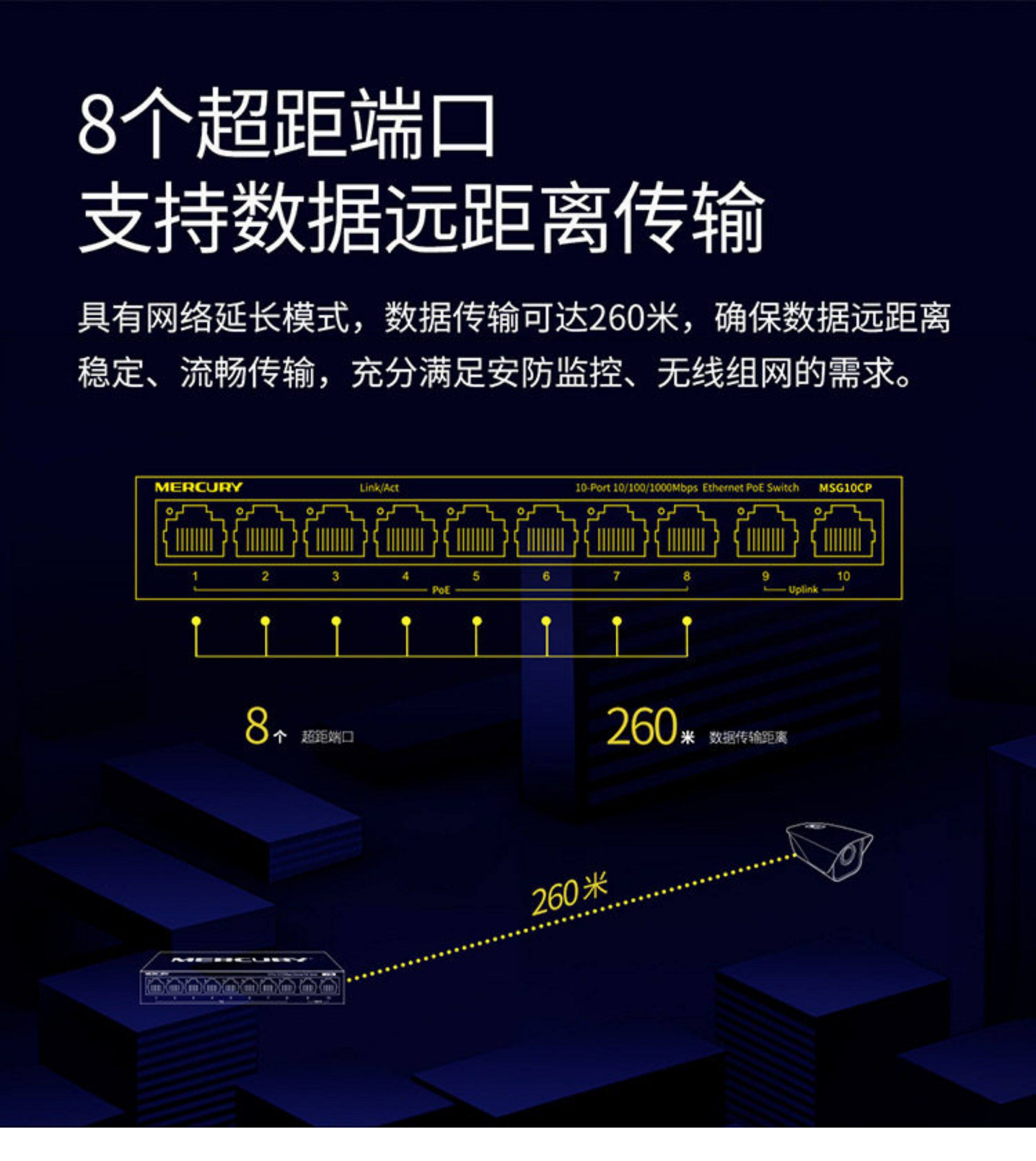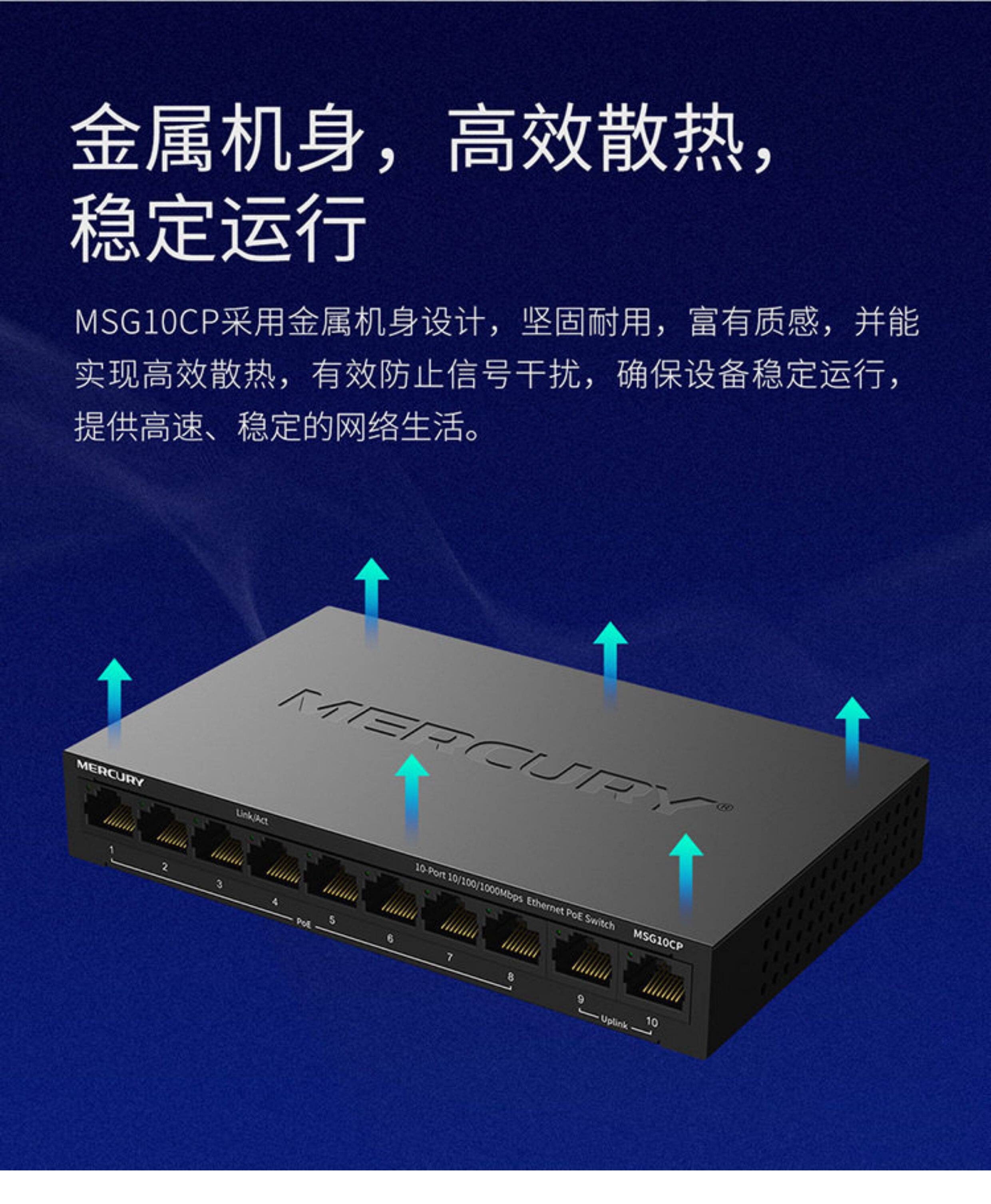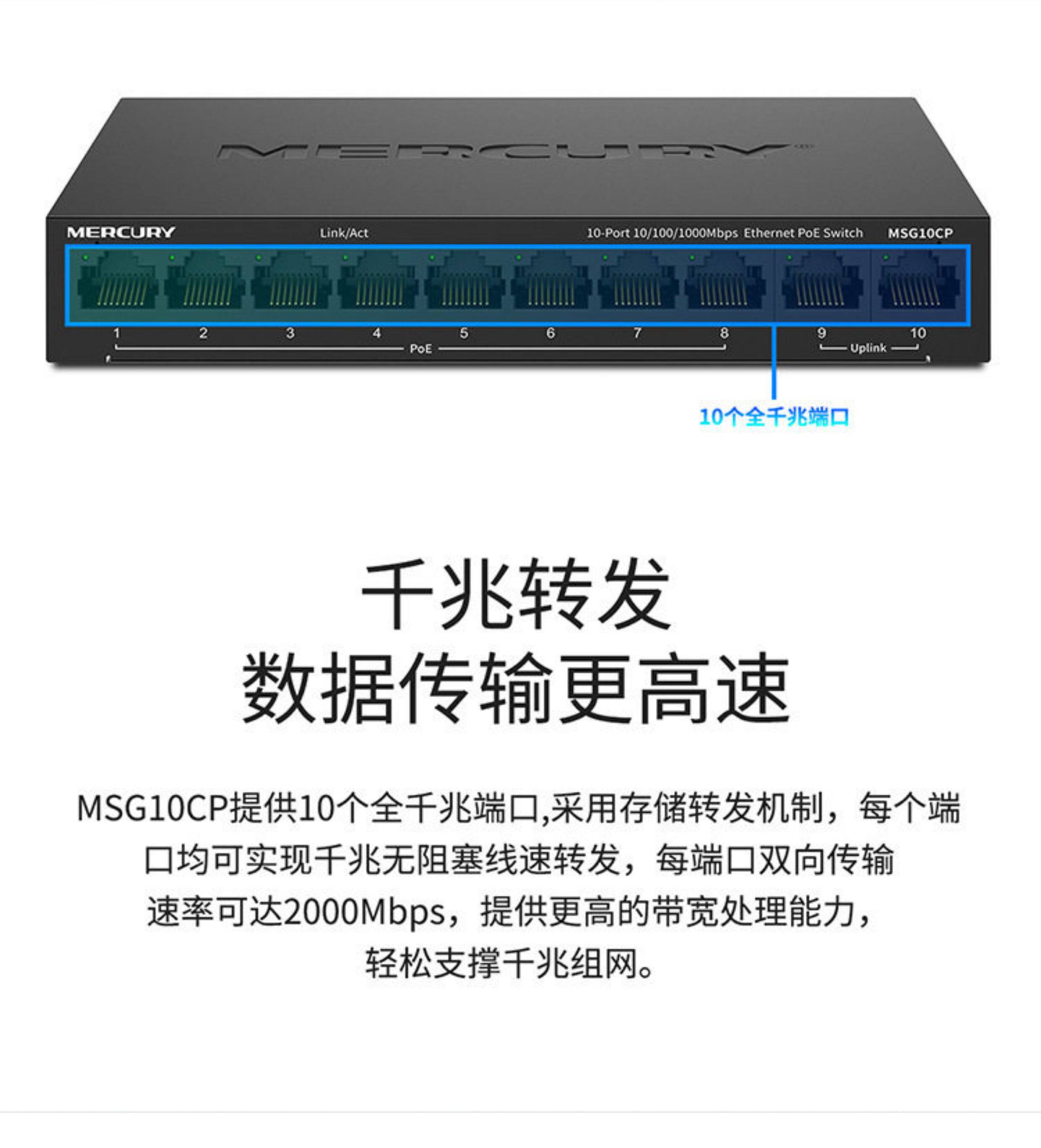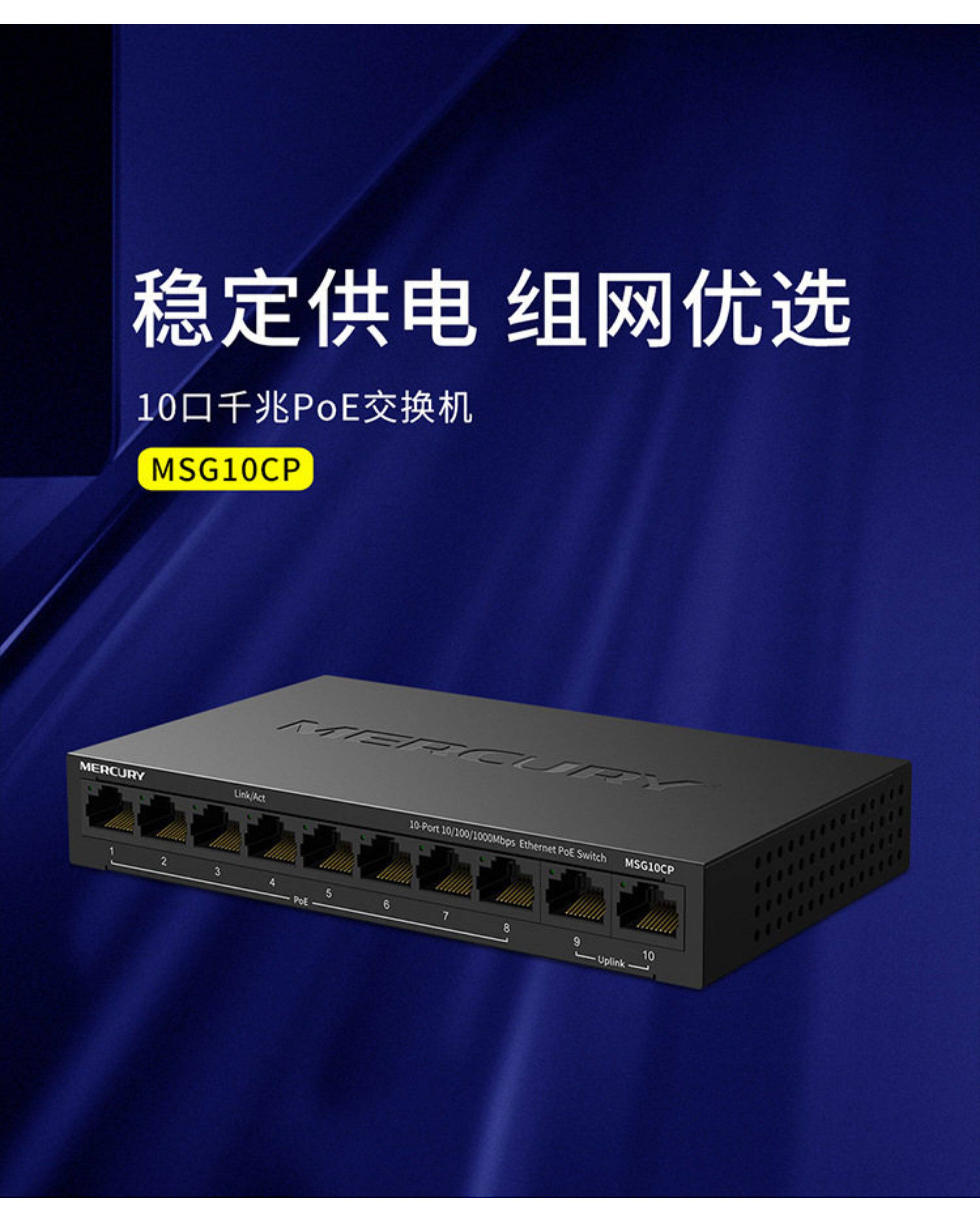 Mercury Msg10Cp 10-Port Full Gigabit Poe Power Supply Switch Double Upper Port 8-Port Poe Monitoring Dedicated