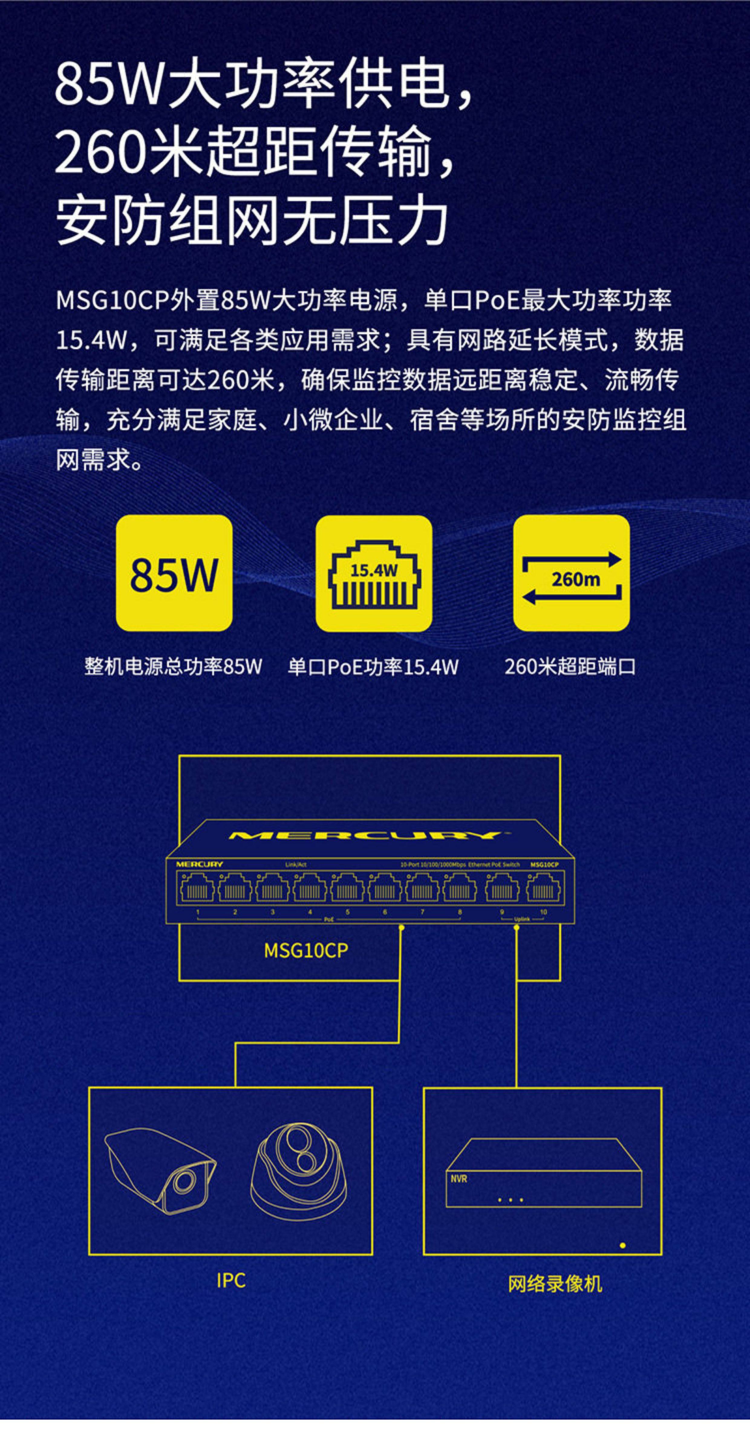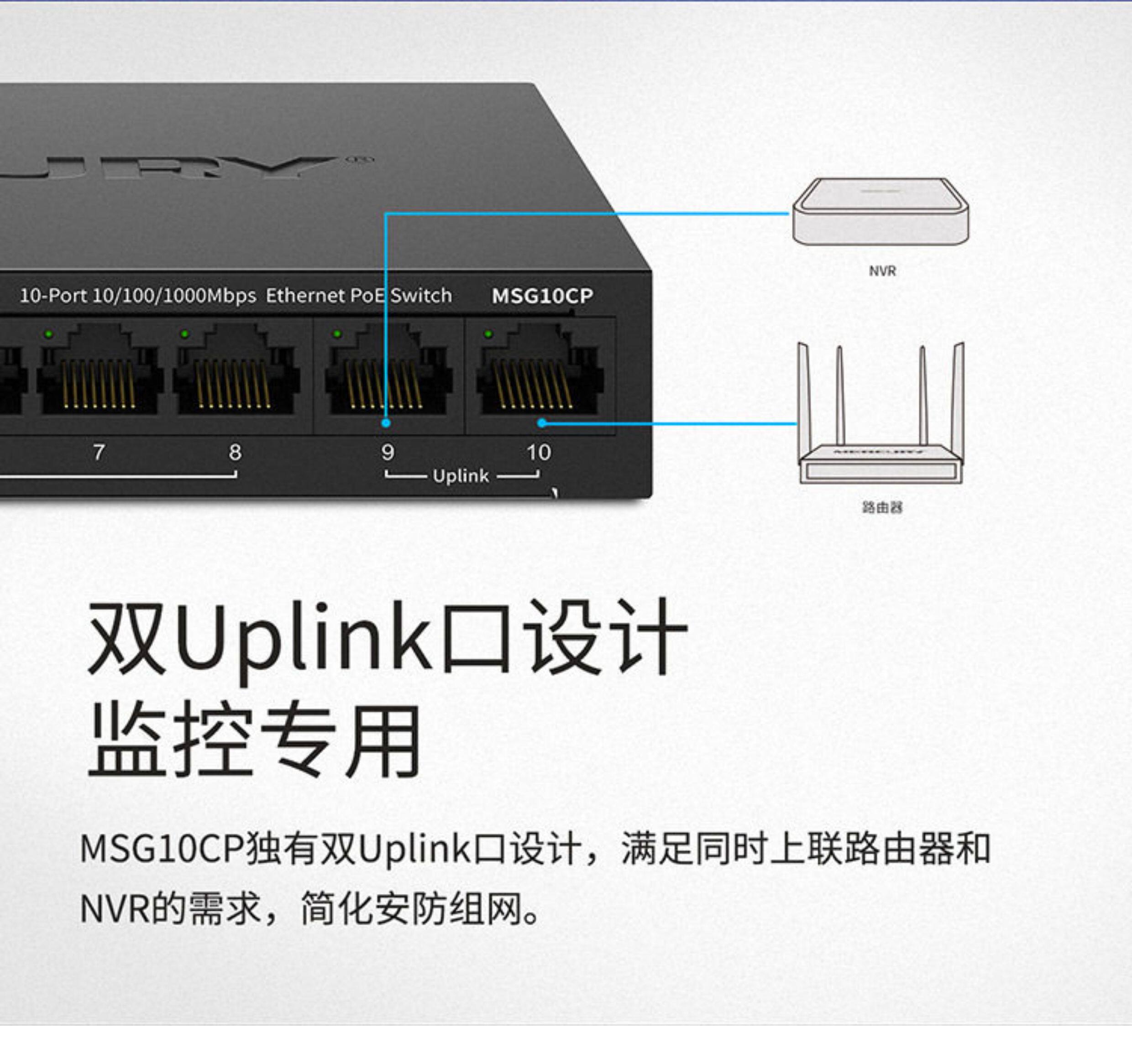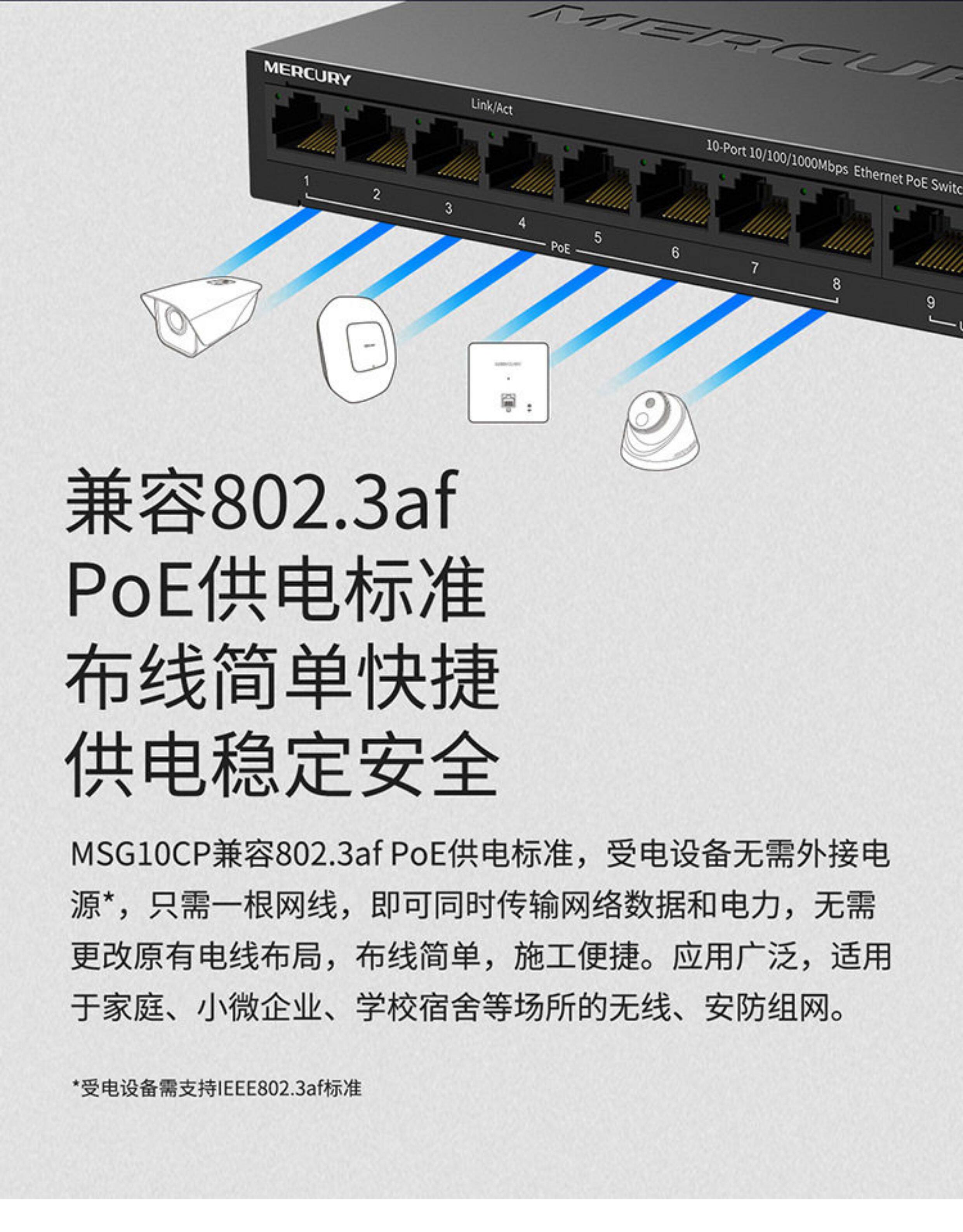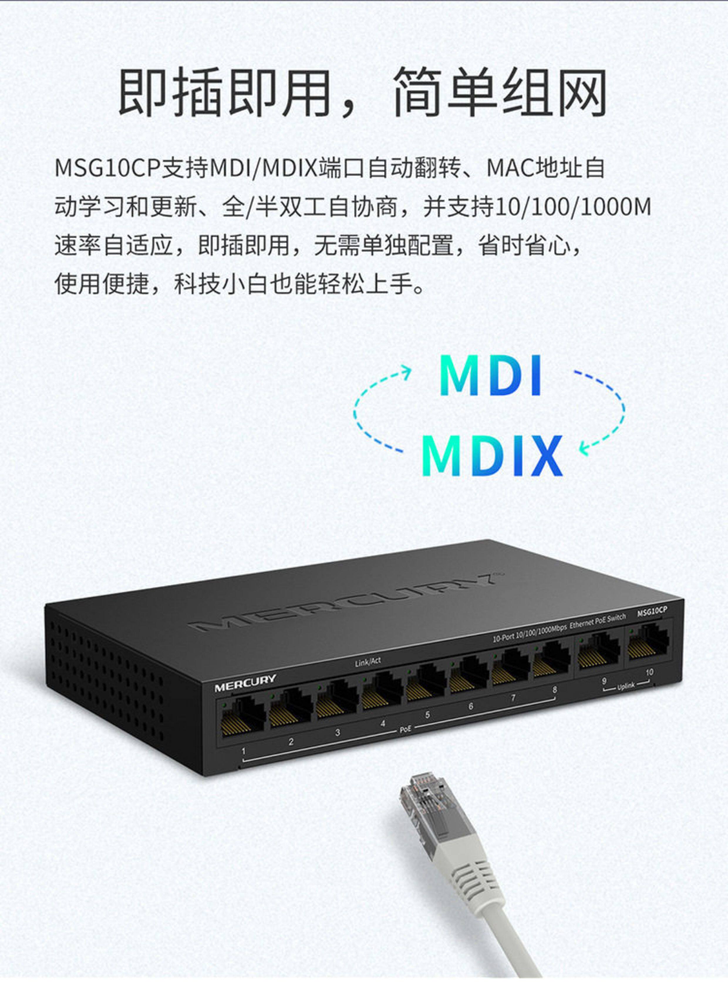 Mercury Msg10Cp 10-Port Full Gigabit Poe Power Supply Switch Double Upper Port 8-Port Poe Monitoring Dedicated