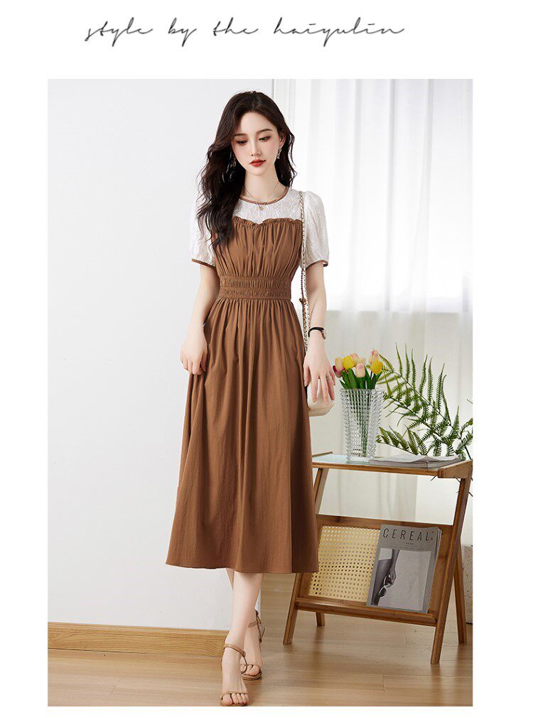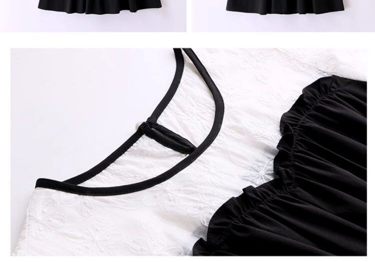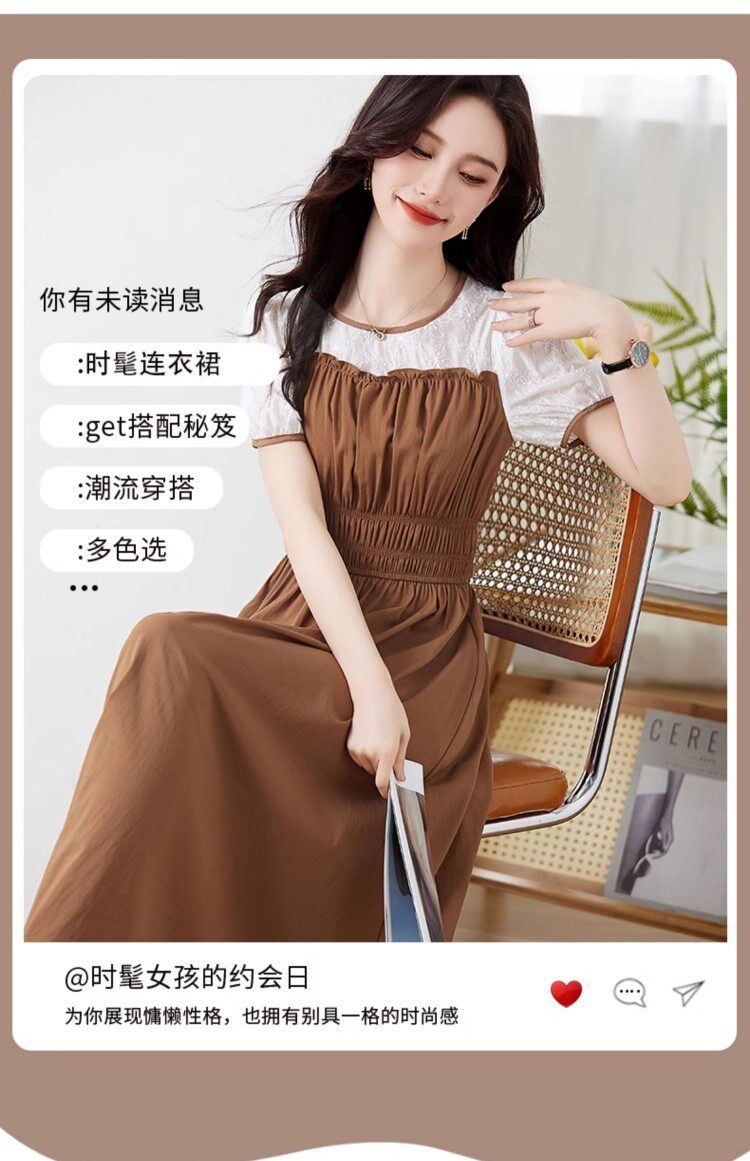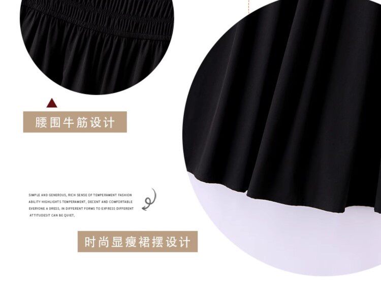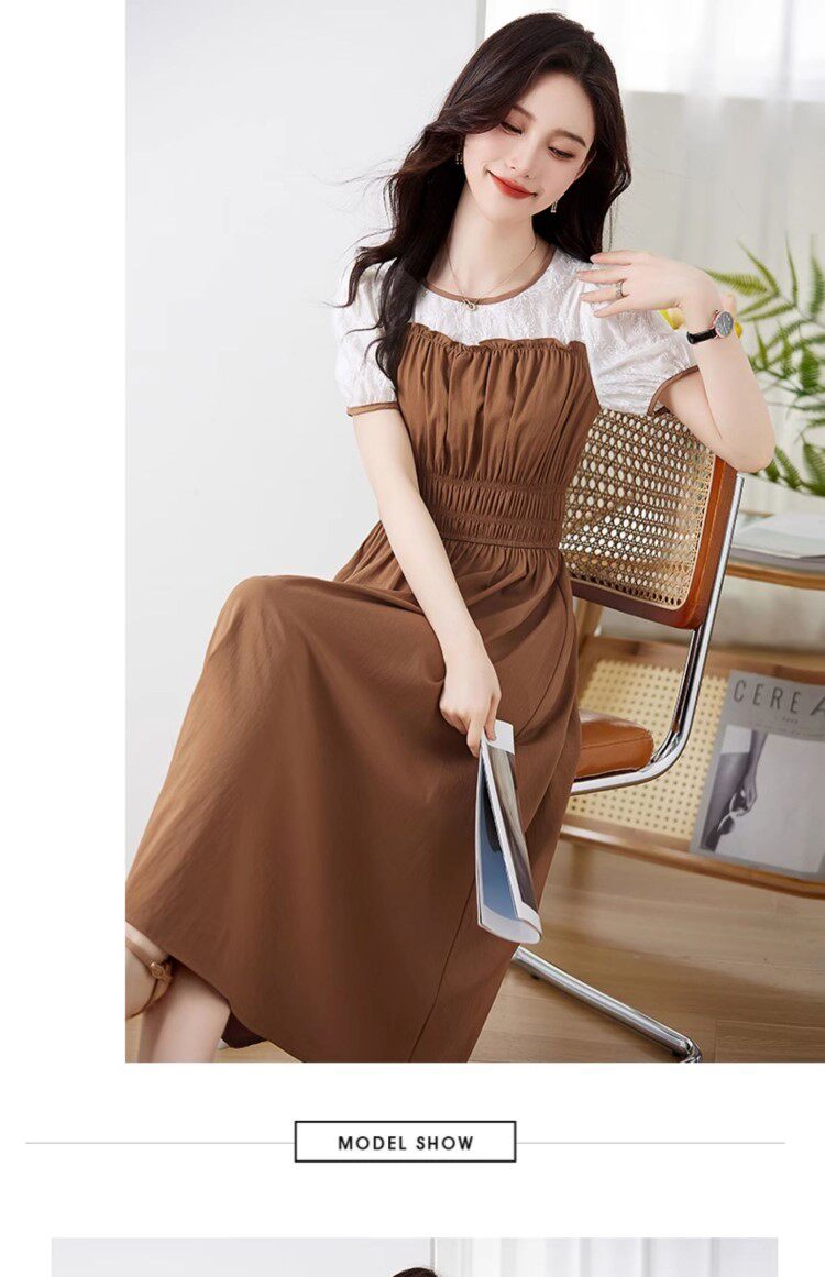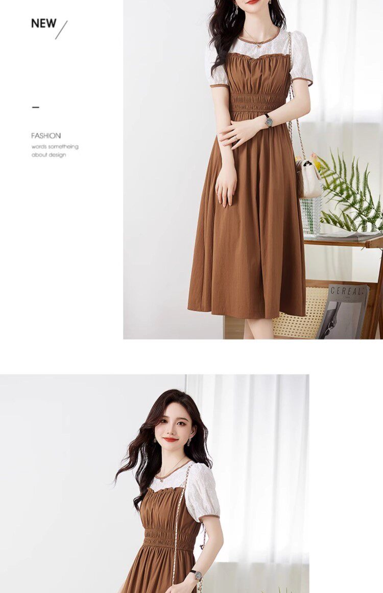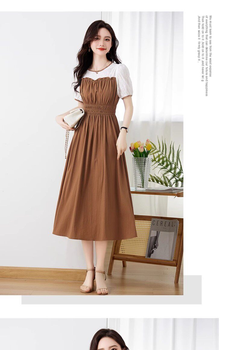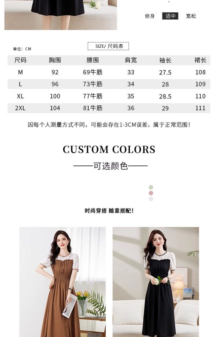 Black Patchwork Dress for Women 2026 Summer New High-End Exquisite Puff Sleeves Elegant Slim Fit Mid-Length Dress
