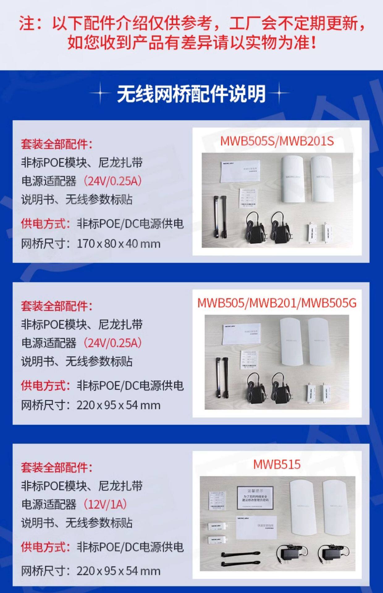Mercury MWB201/MWB505/MWB515 set outdoor high-power wireless CPE bridge long-distance transmission