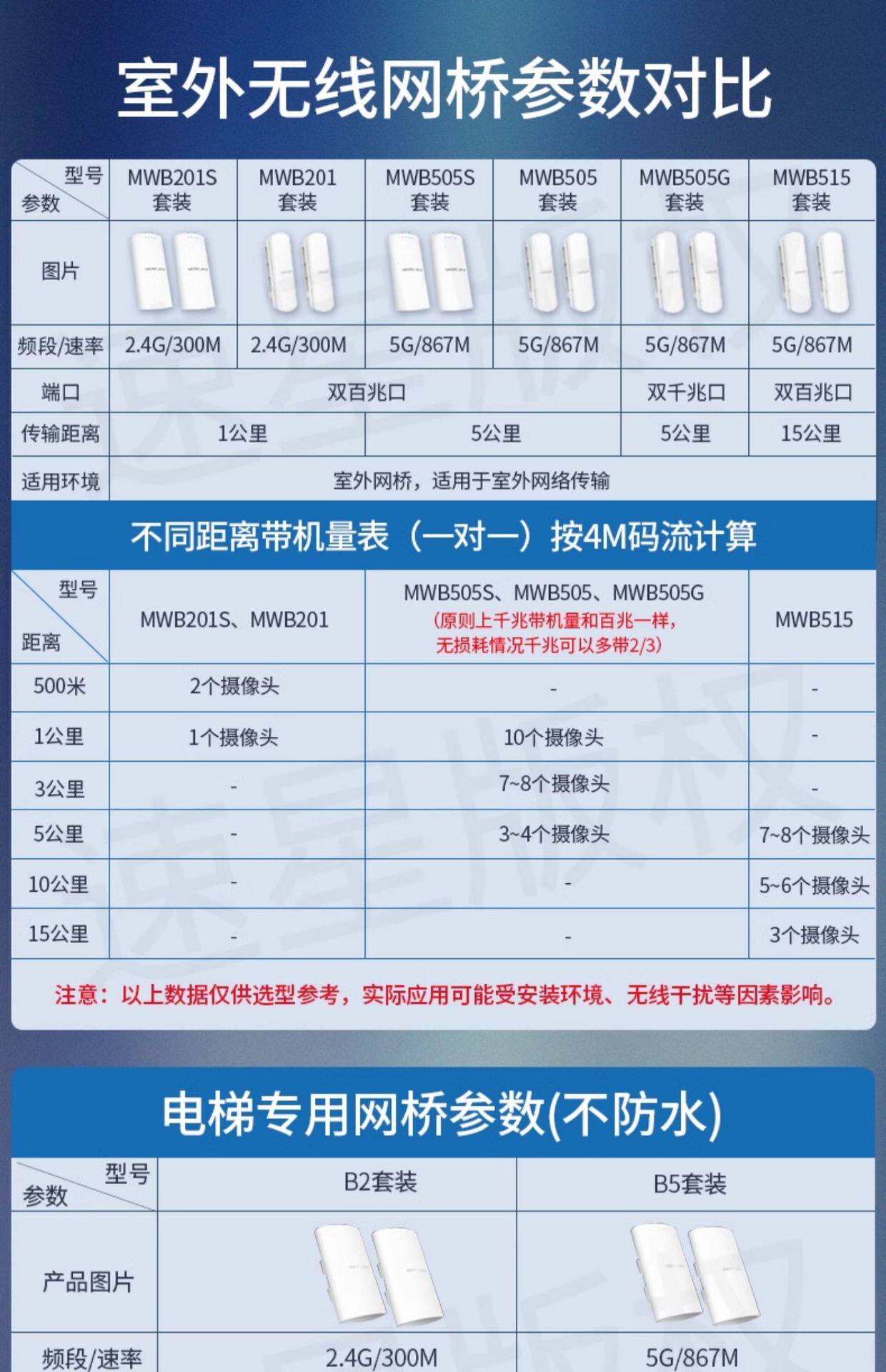 Sort by color 5G 100M version/15km transmission MWB515 set,5G upgraded version/5km transmission MWB505 set,2.4G upgraded version/1km transmission MWB201 set,5G standard version/5km transmission MWB505S set,2.4G standard version/1km transmission MWB201S package,5G Gigabit version/5km transmission MWB505G set,2.4G/30 floor elevator dedicated B2 set,5G/100 floor elevator dedicated B5 set