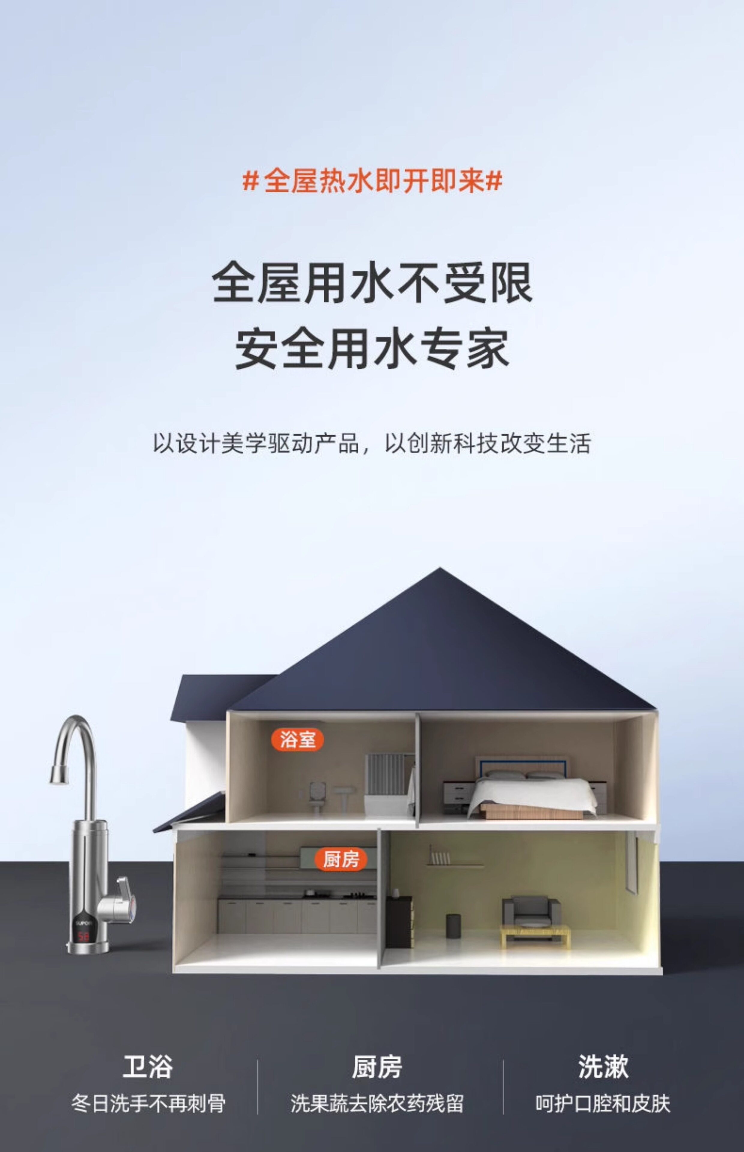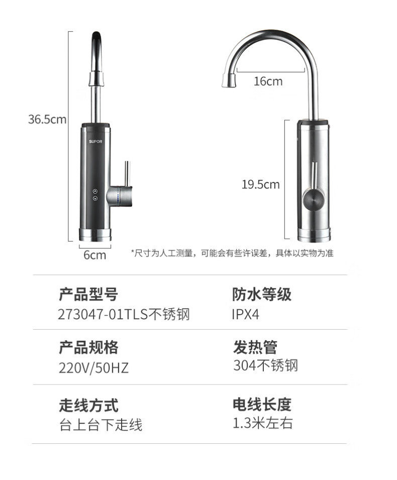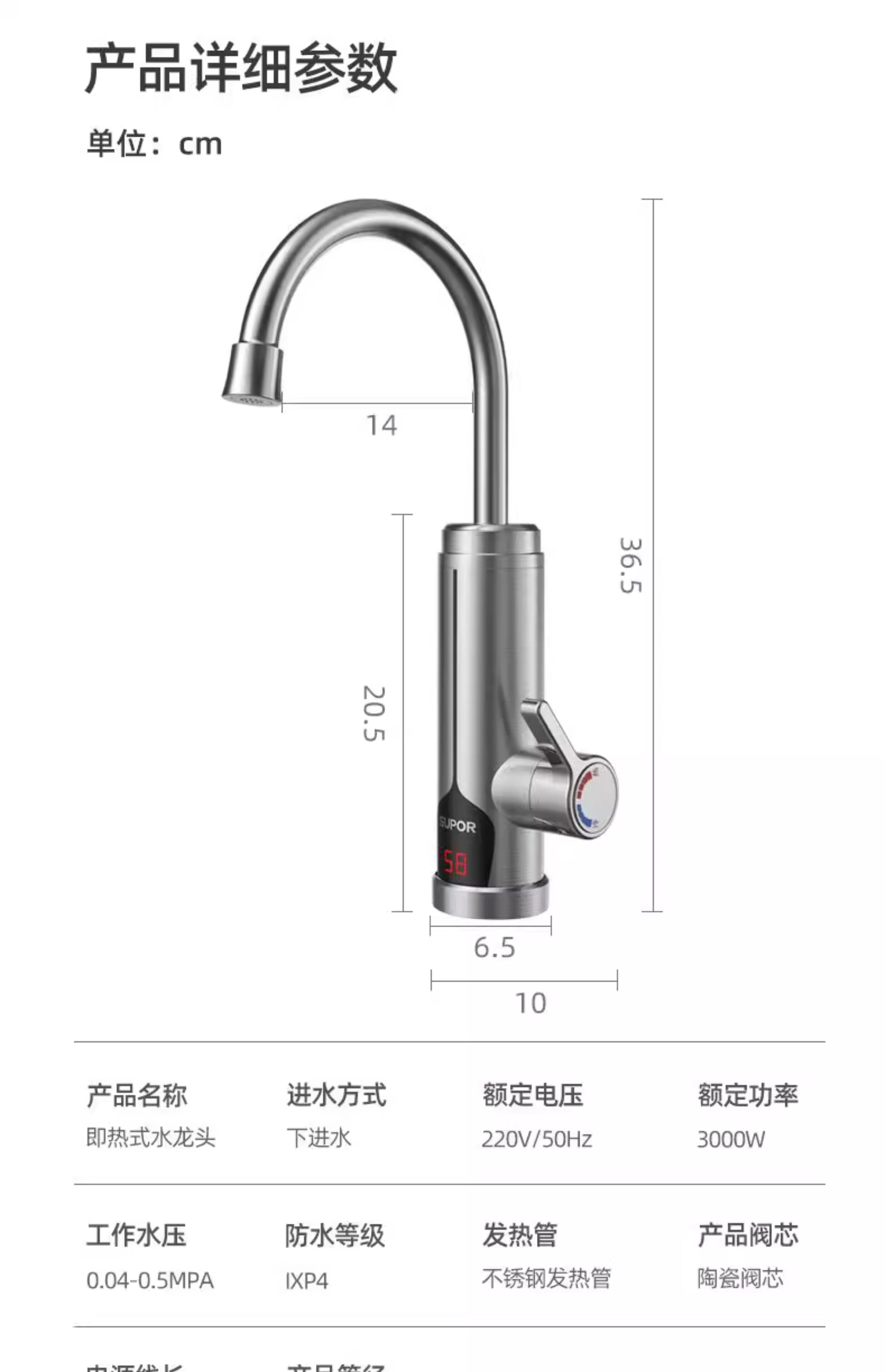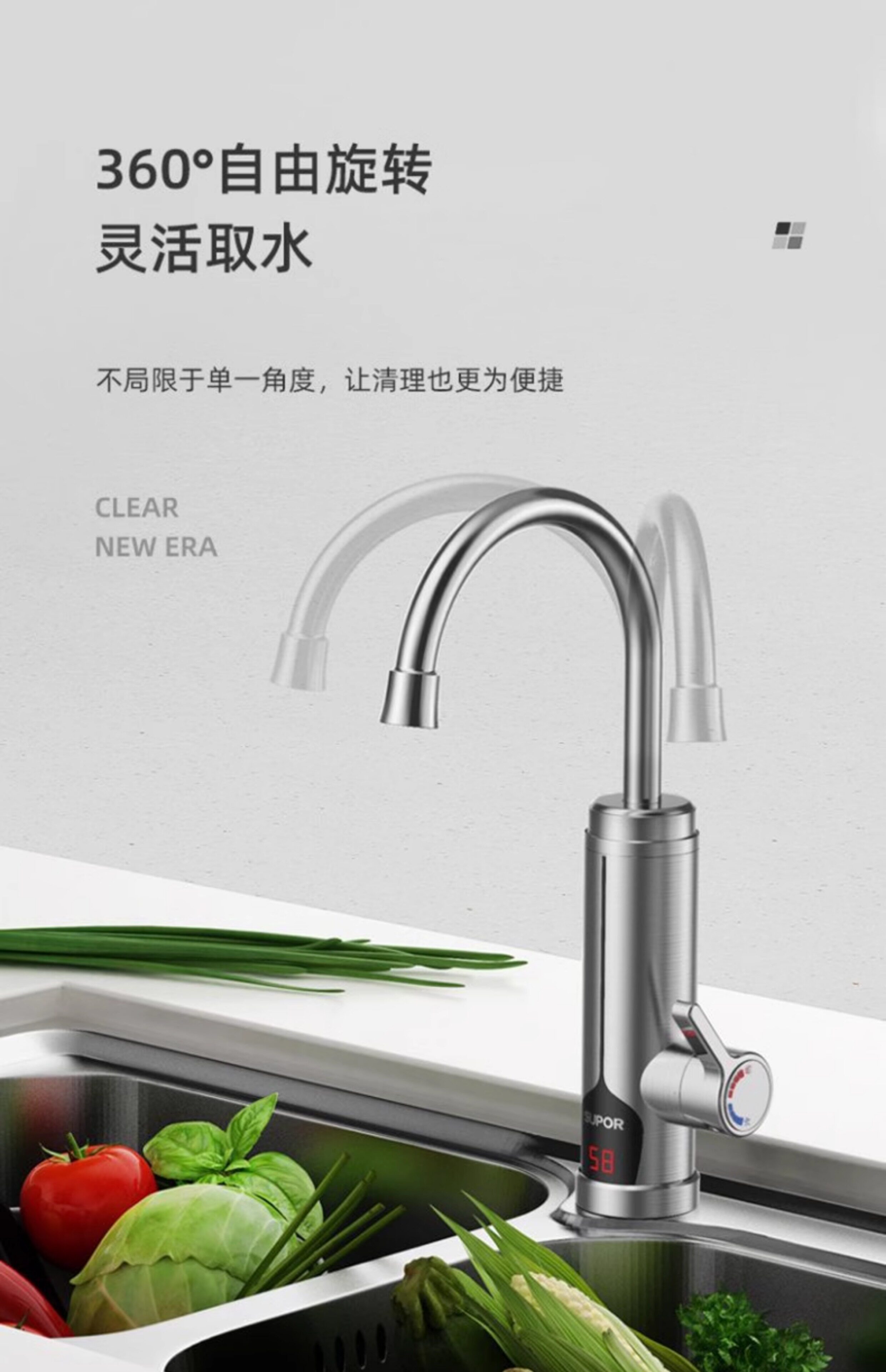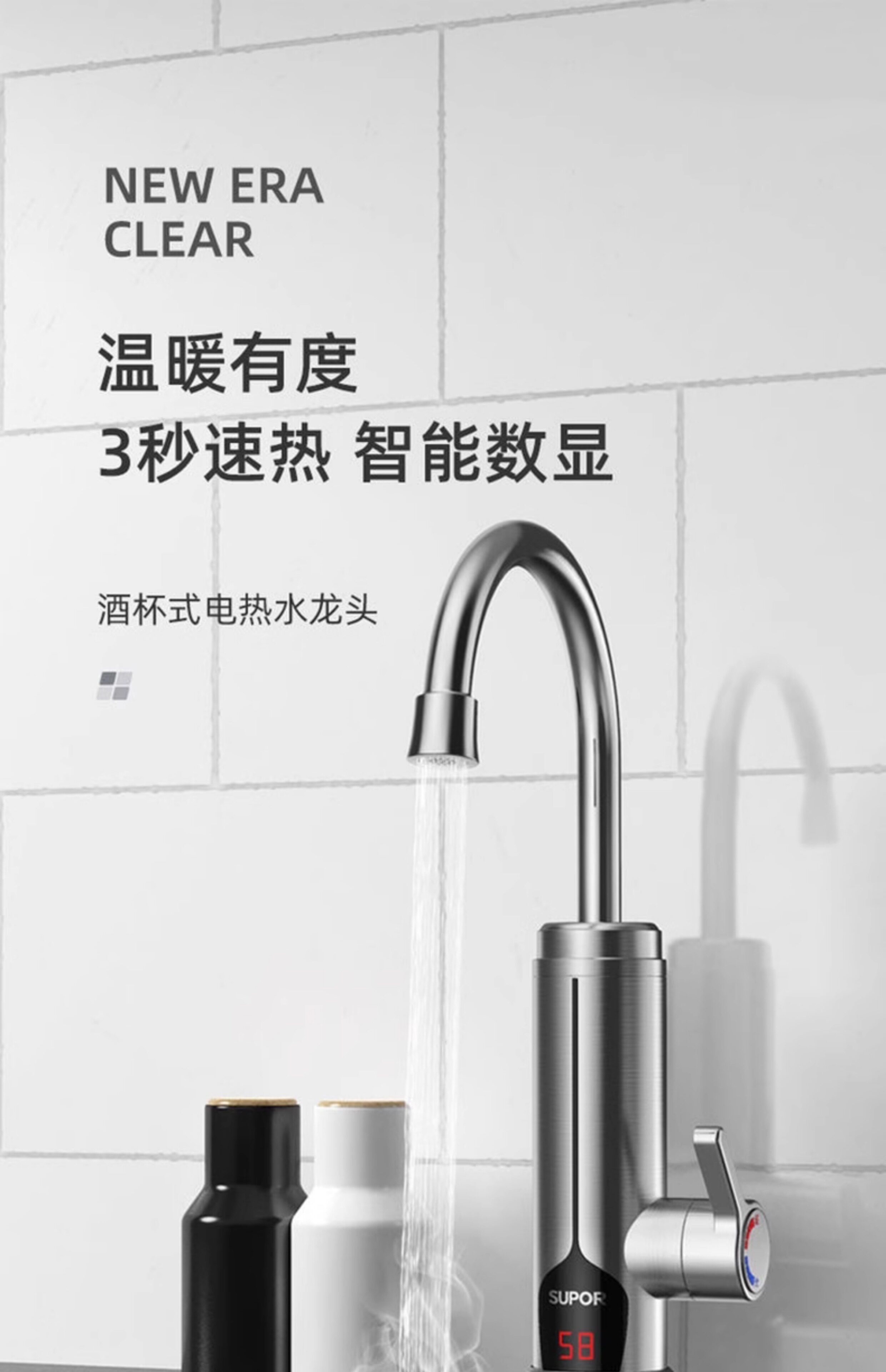 Supor Electric Hot Water Faucet Heater, Instant Heating Type, for Kitchen, Bathroom, Balcony, Tap Water Heating